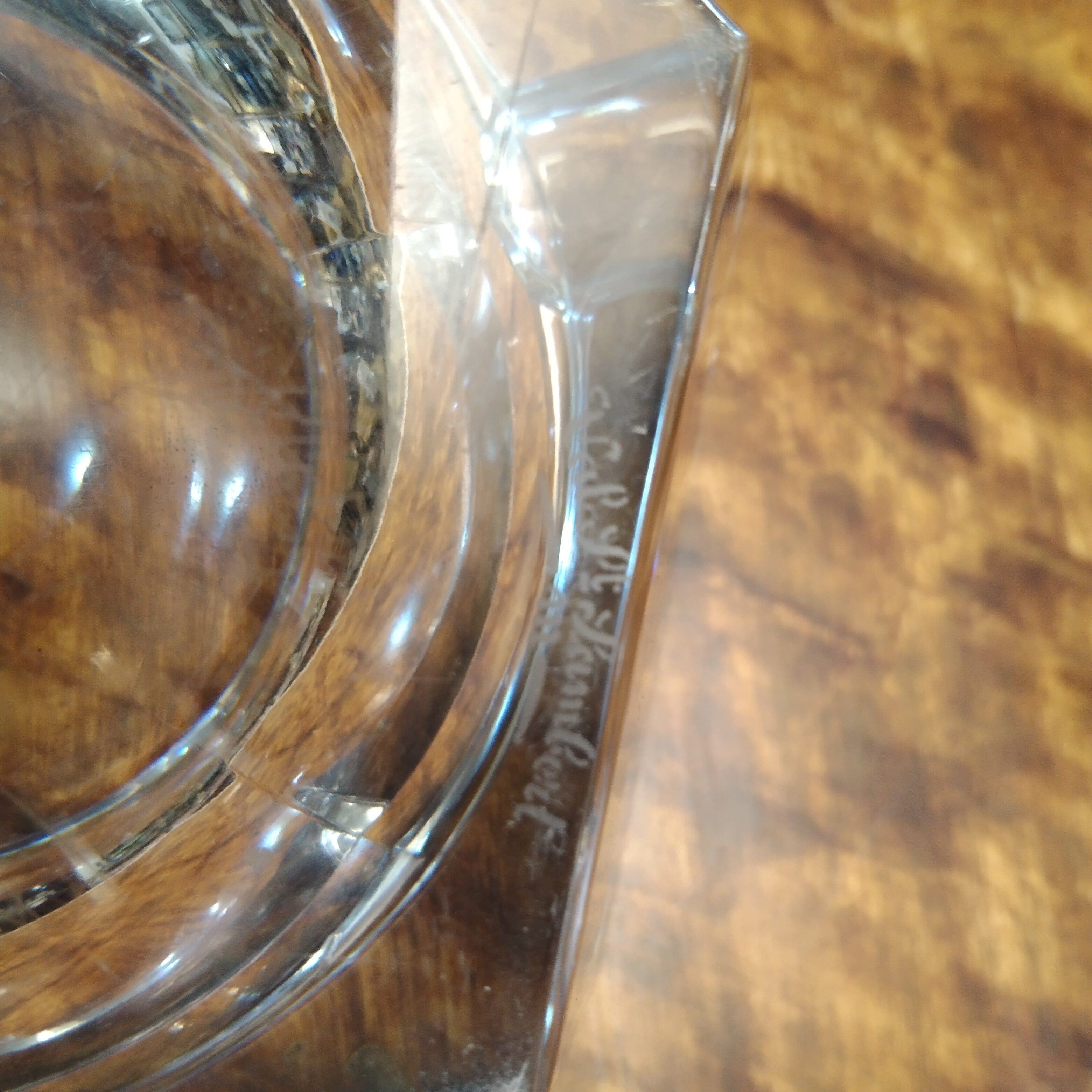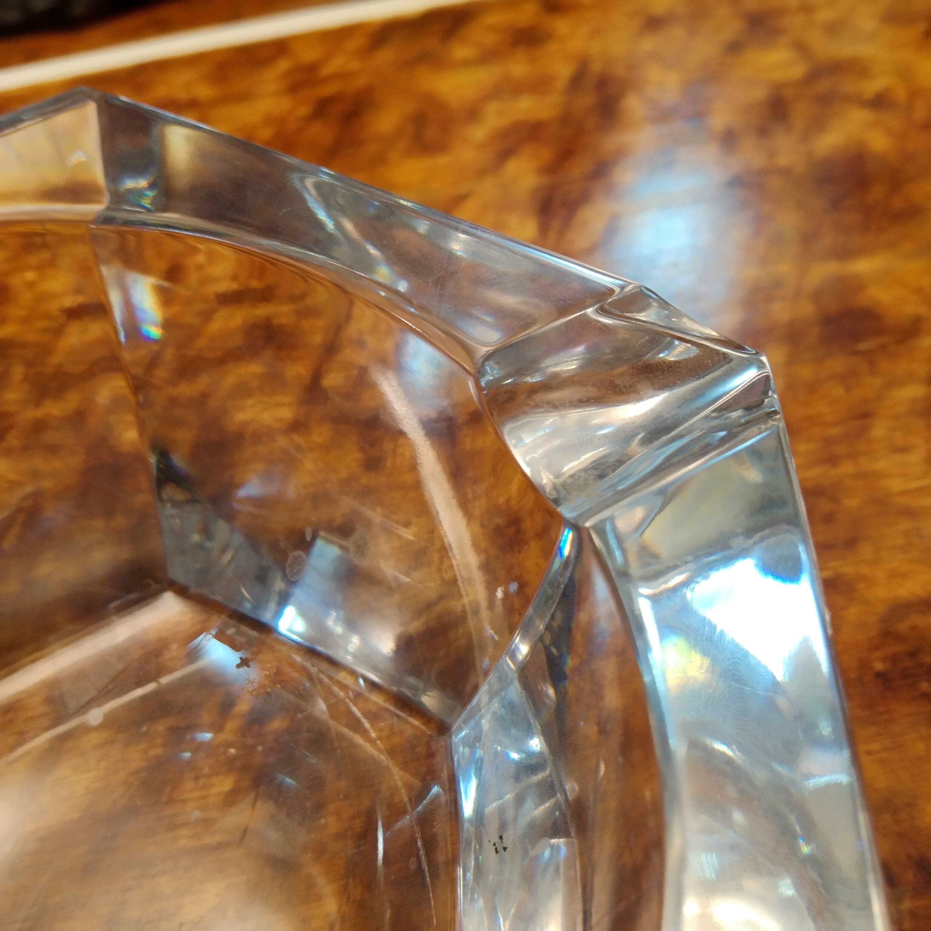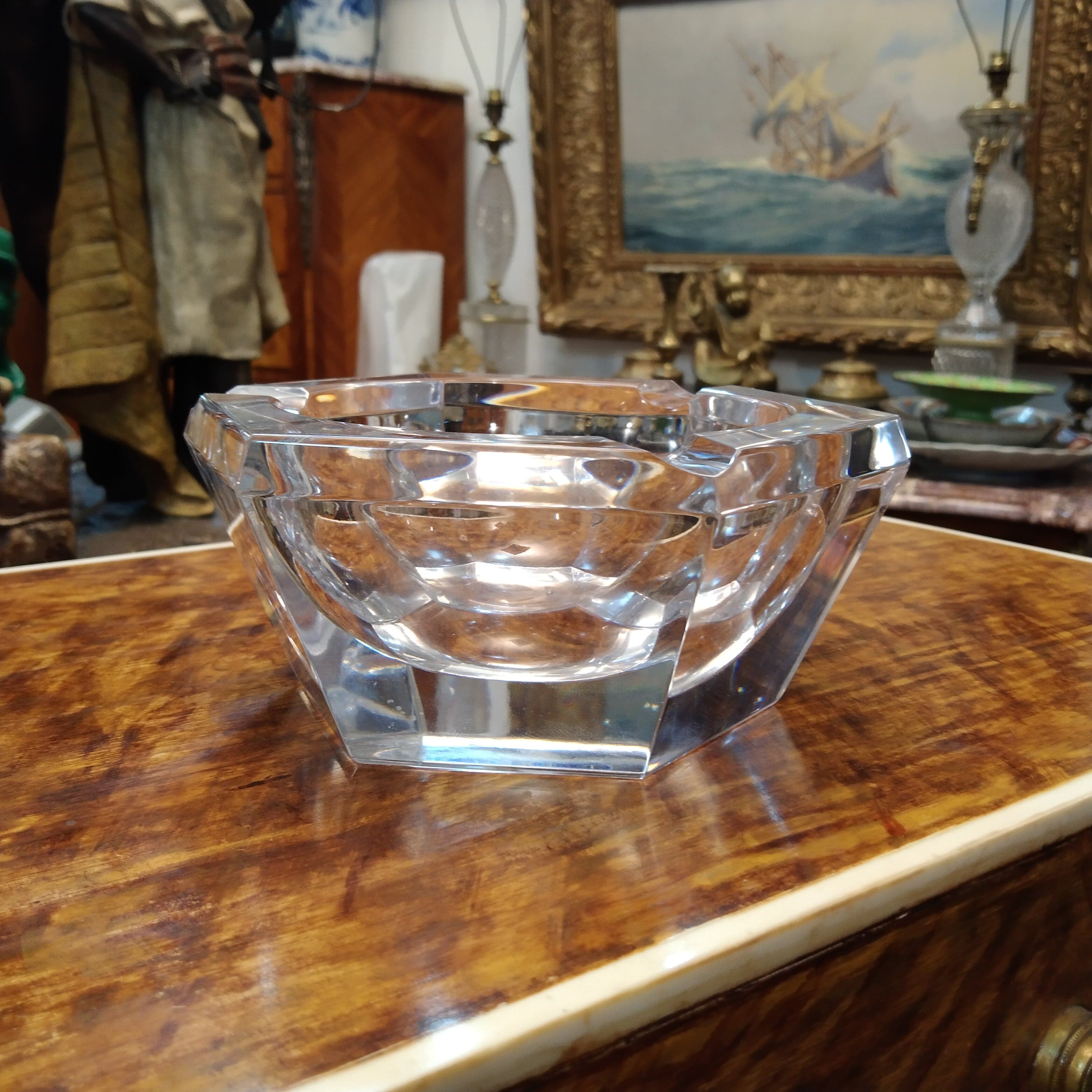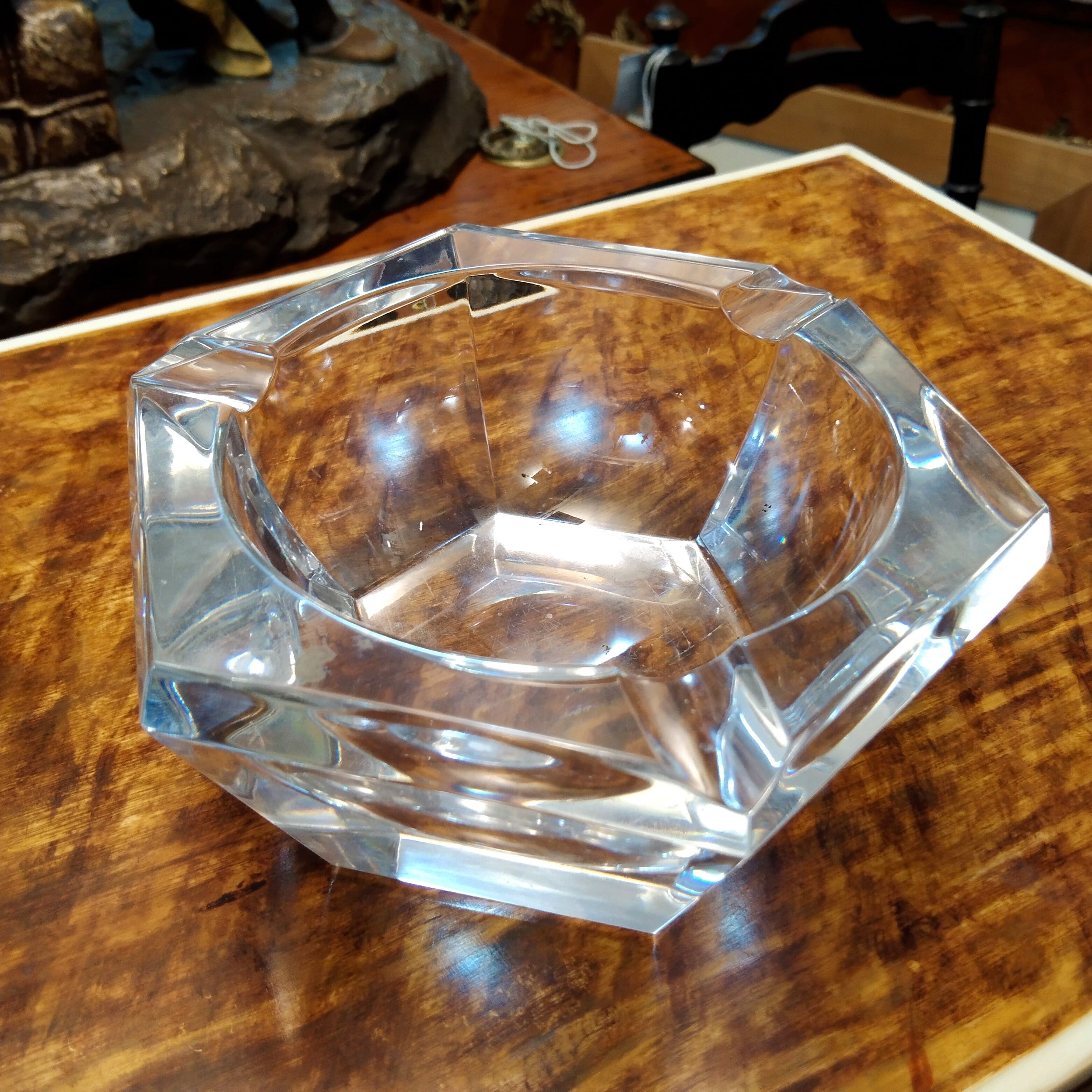 Bello cenicero de cristal de la reconocida marca belga Val Saint Lambert, de diseño hexagonal.