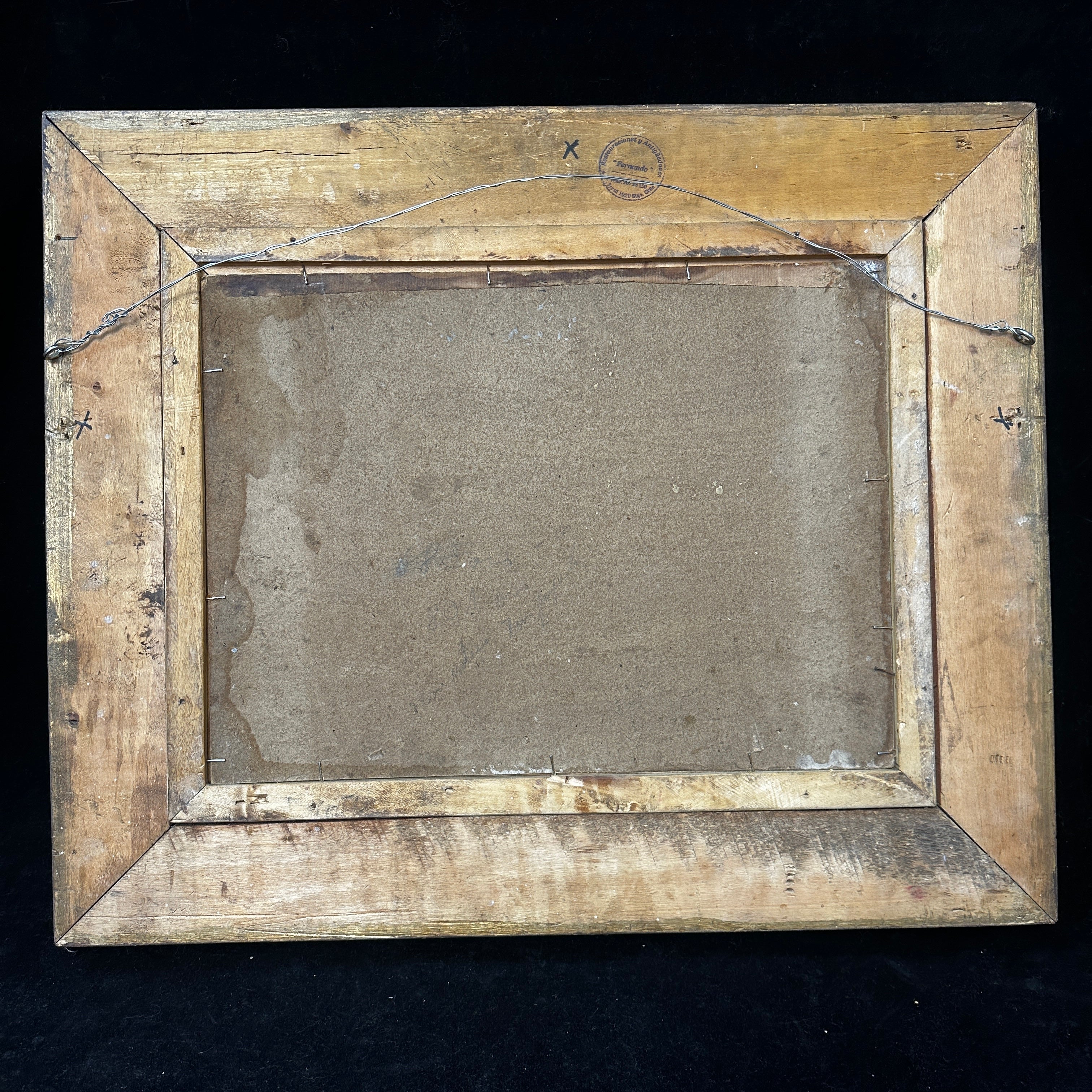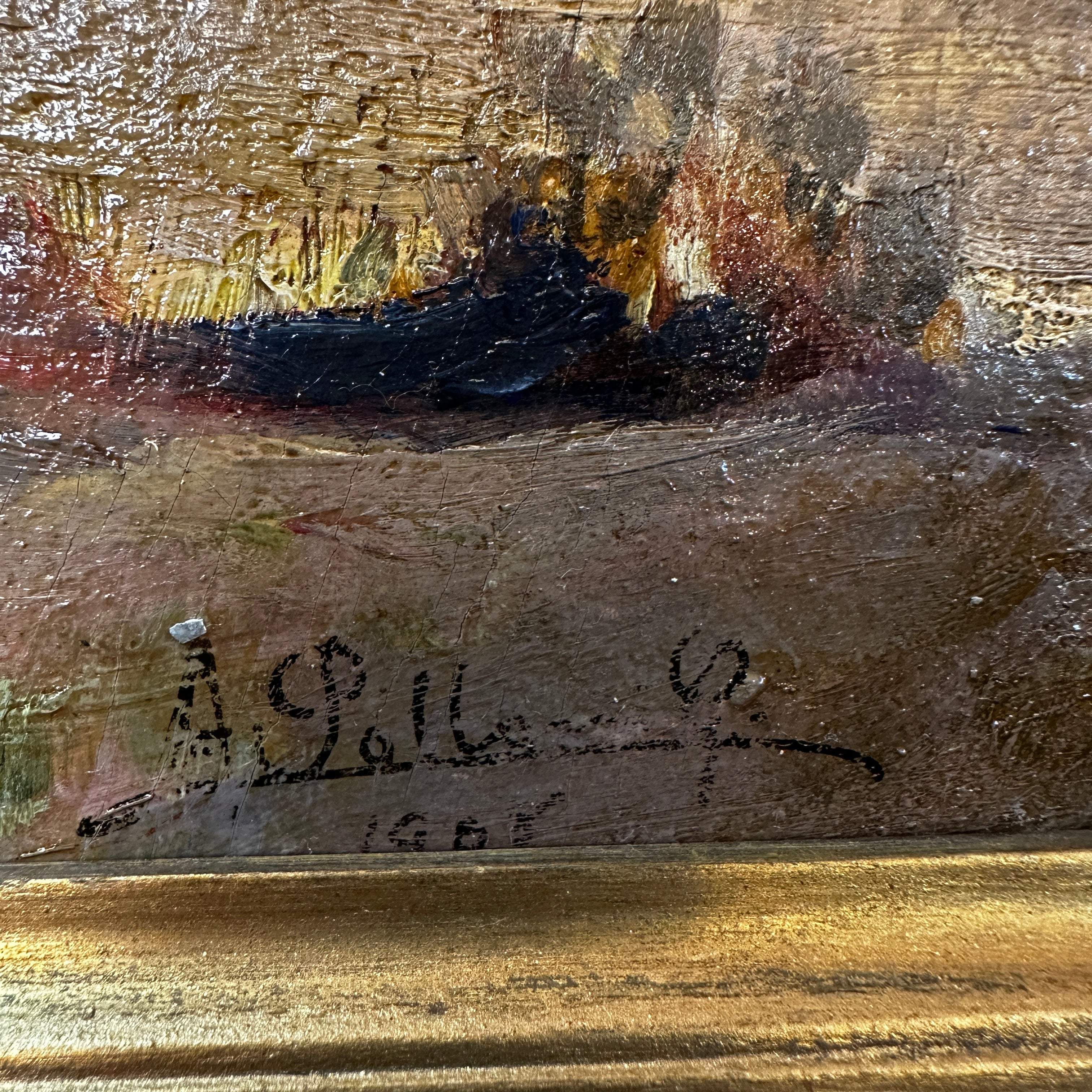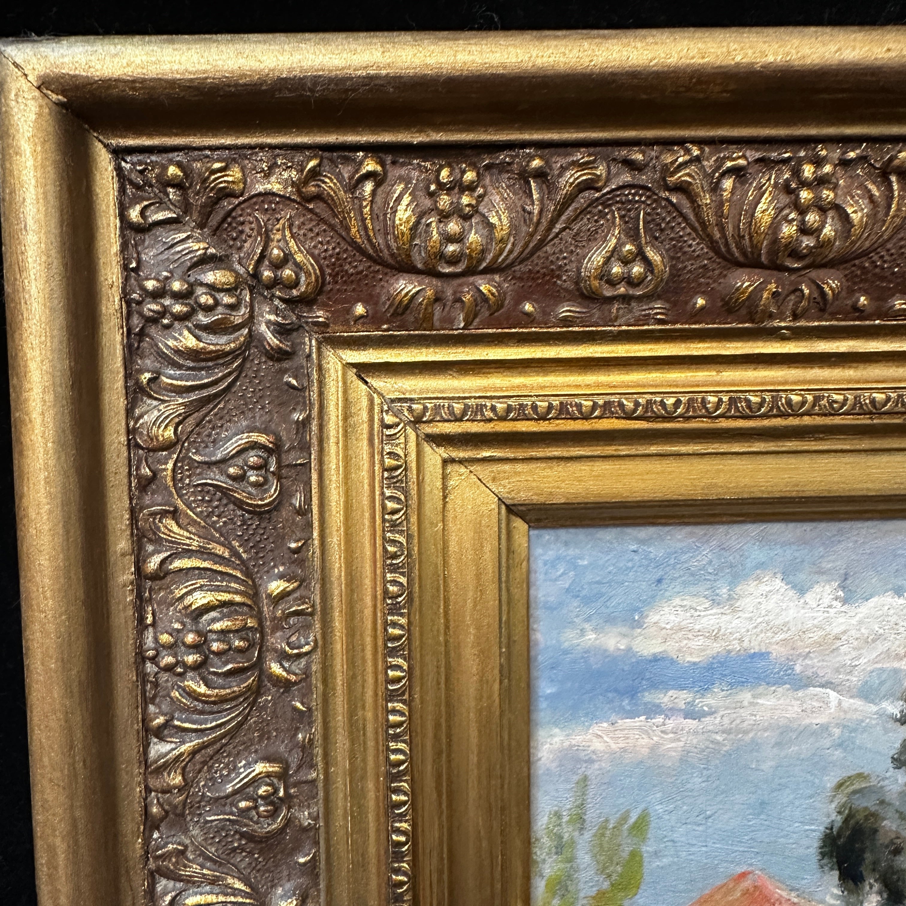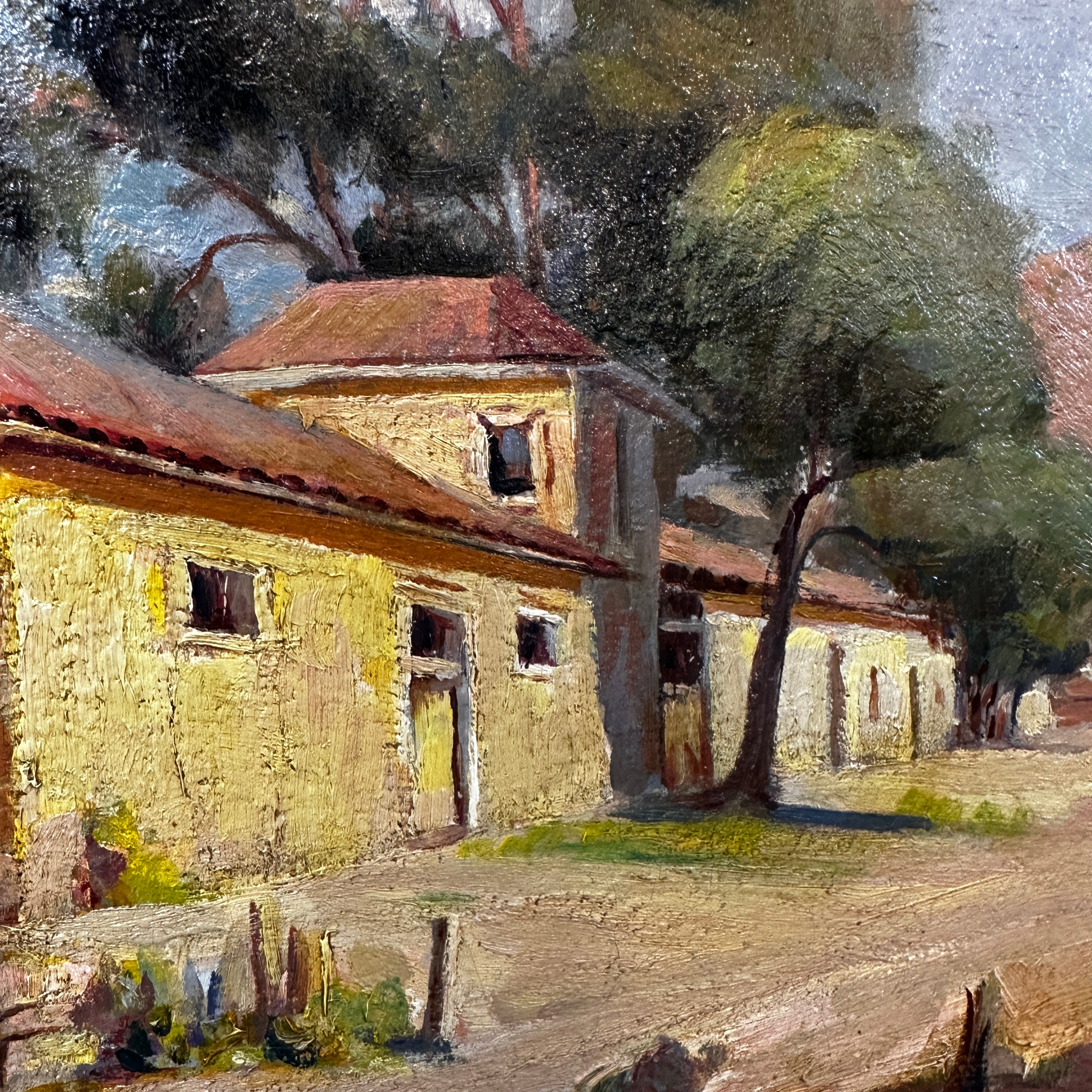 Óleo sobre cartón, representando un paisaje de Limarí, pueblo chileno ubicado en la IV Región de coquimbo. La obra retrata bellamente los colores cálidos de este paisaje desértico, además de unas casitas de adobe y algunos árboles, con cerros de fondo. Presenta un marco de madera tallada en relieves y terminada en pintura dorada.