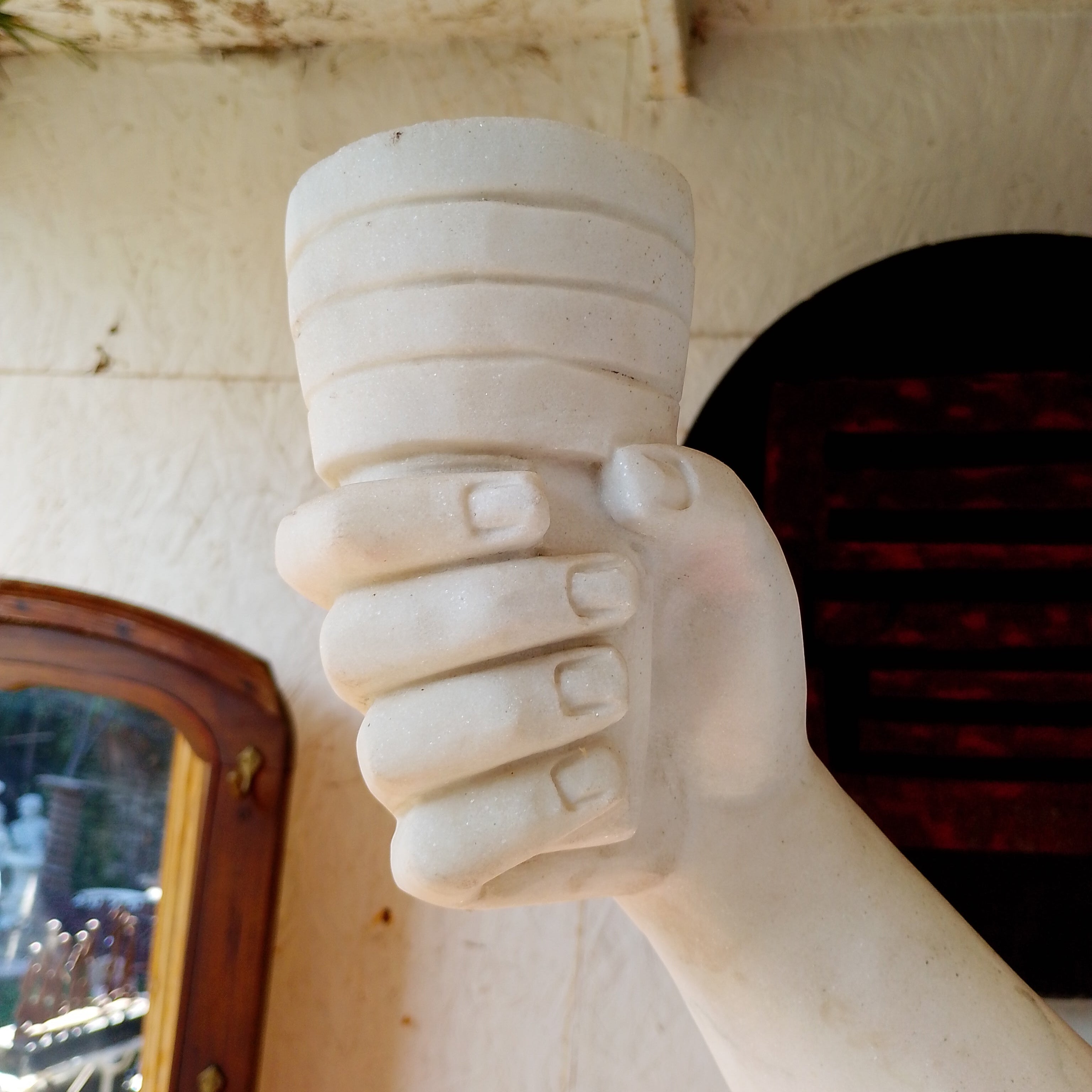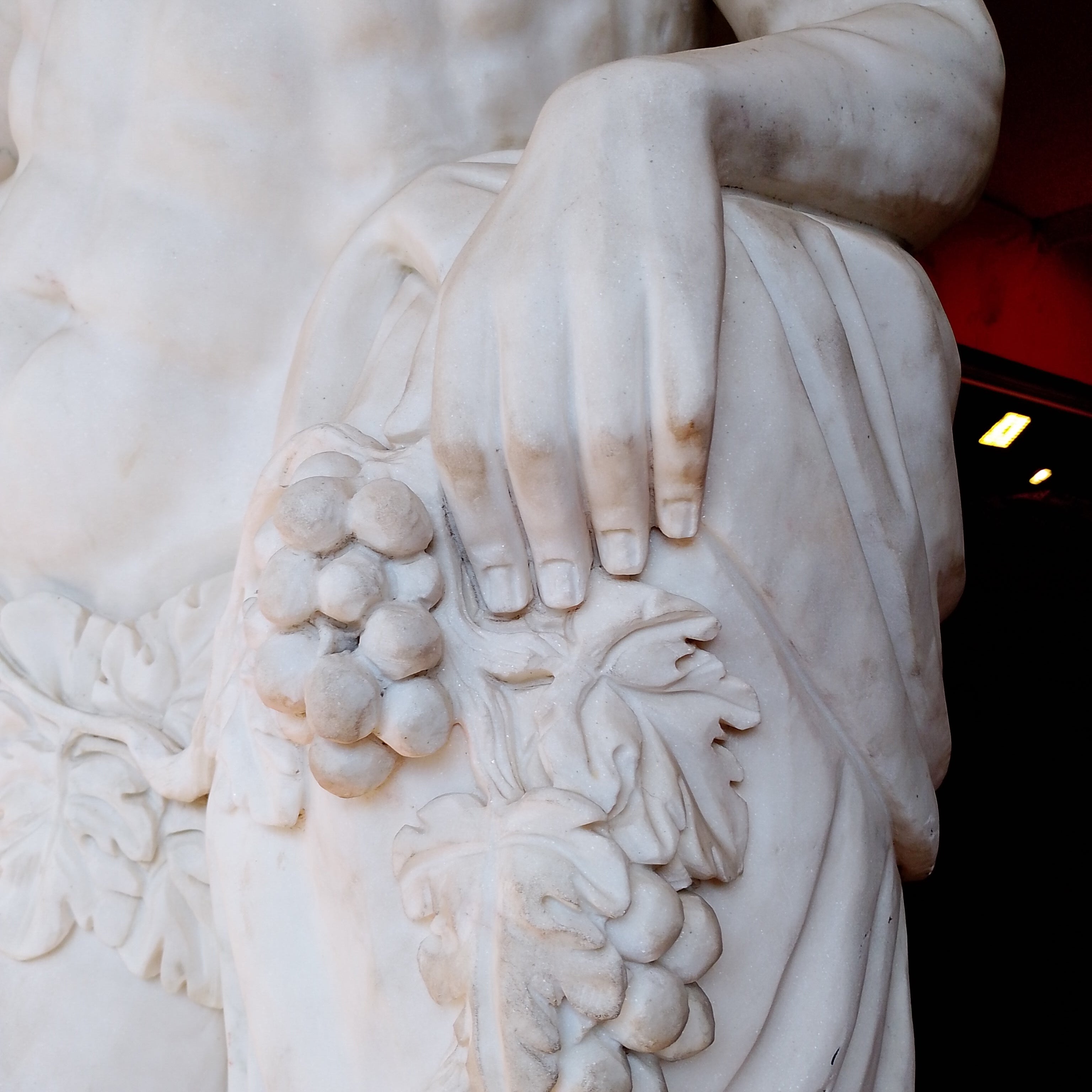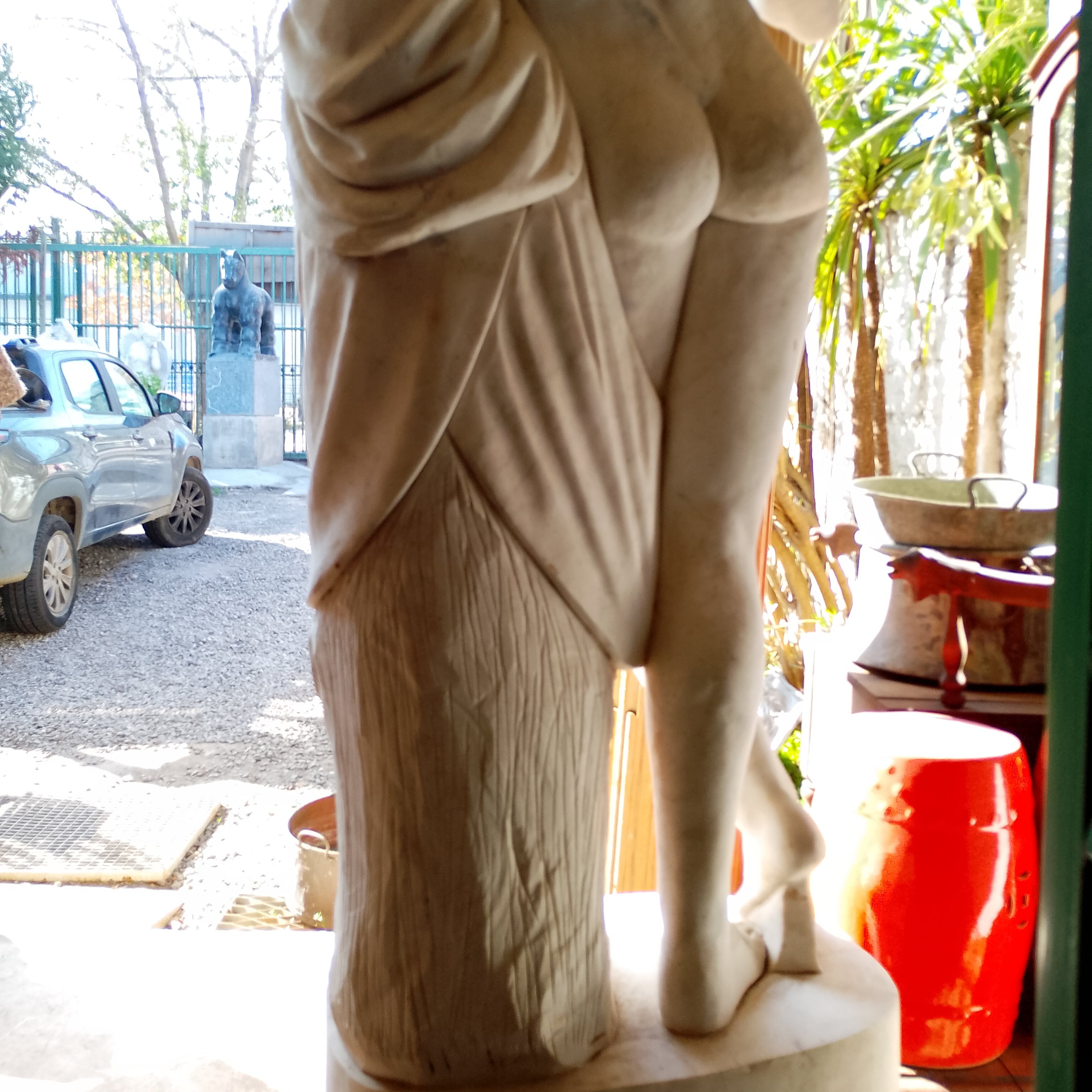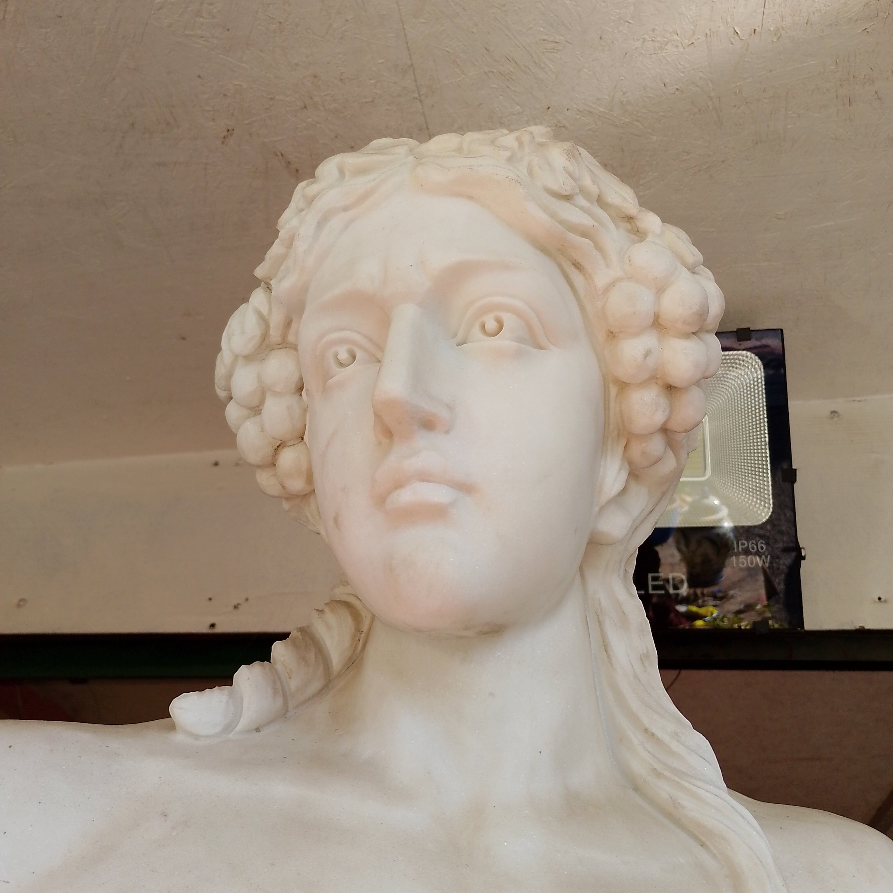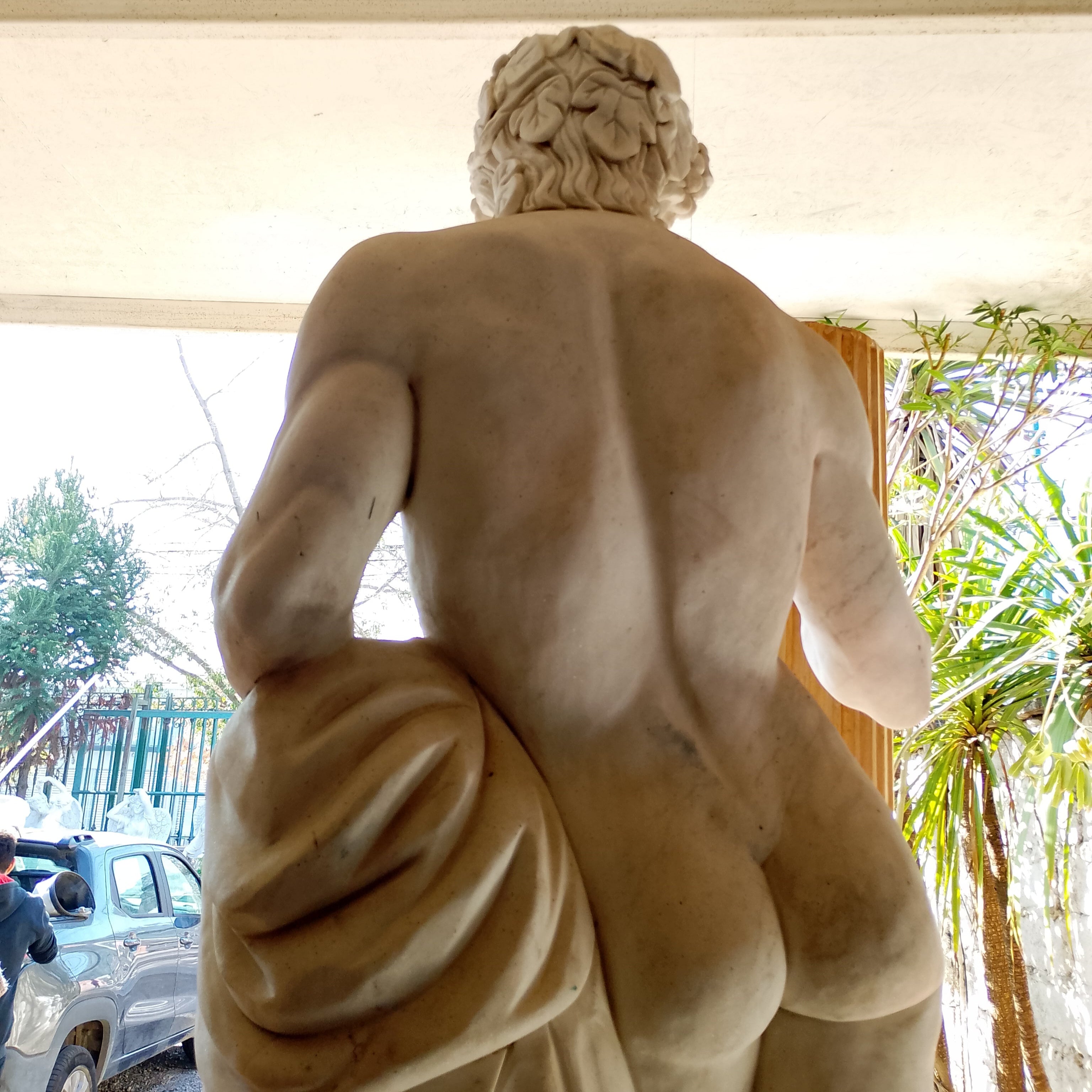 Hermosa y elegante escutura en mármol representando a Dionisio, dios griego de la fiesta y el vino.