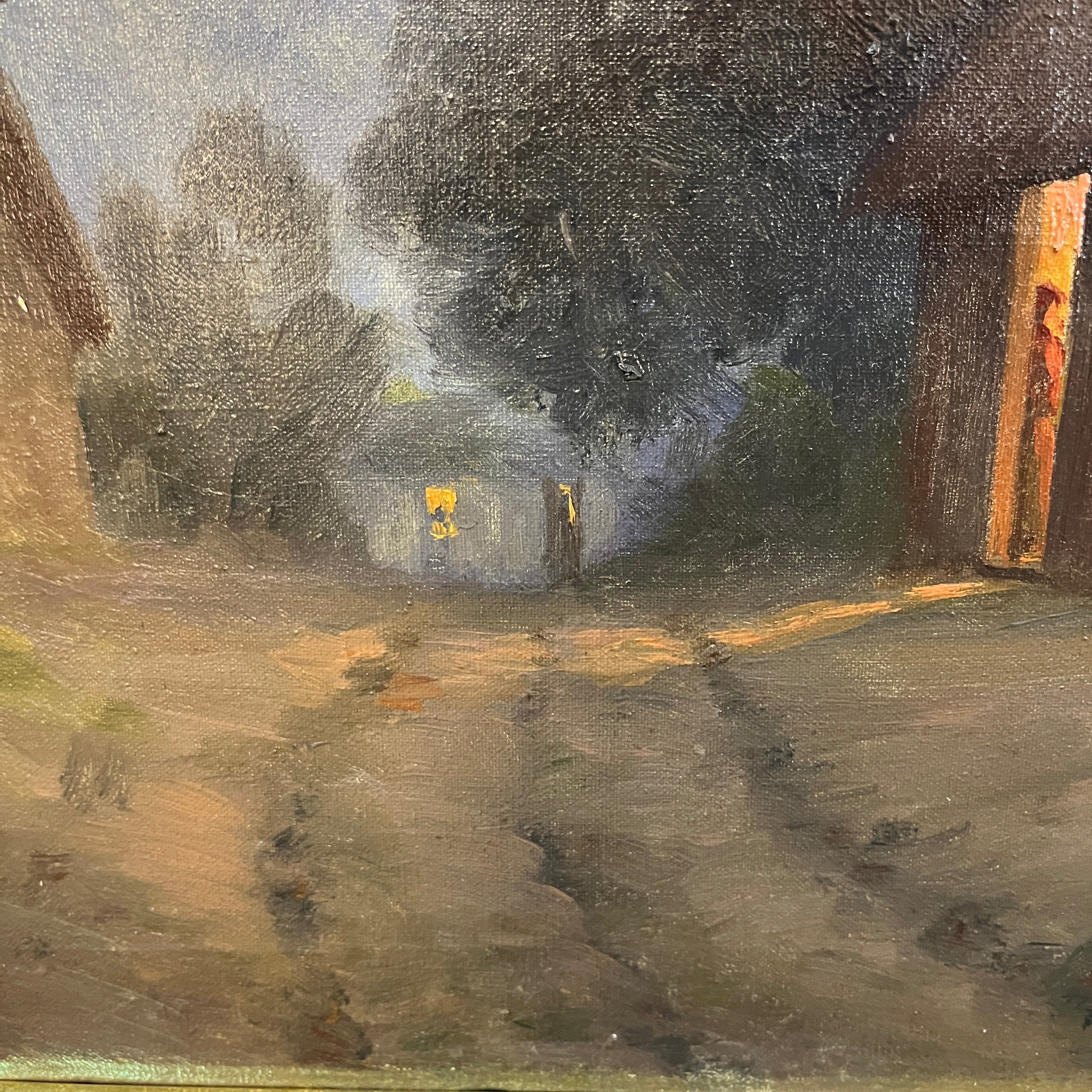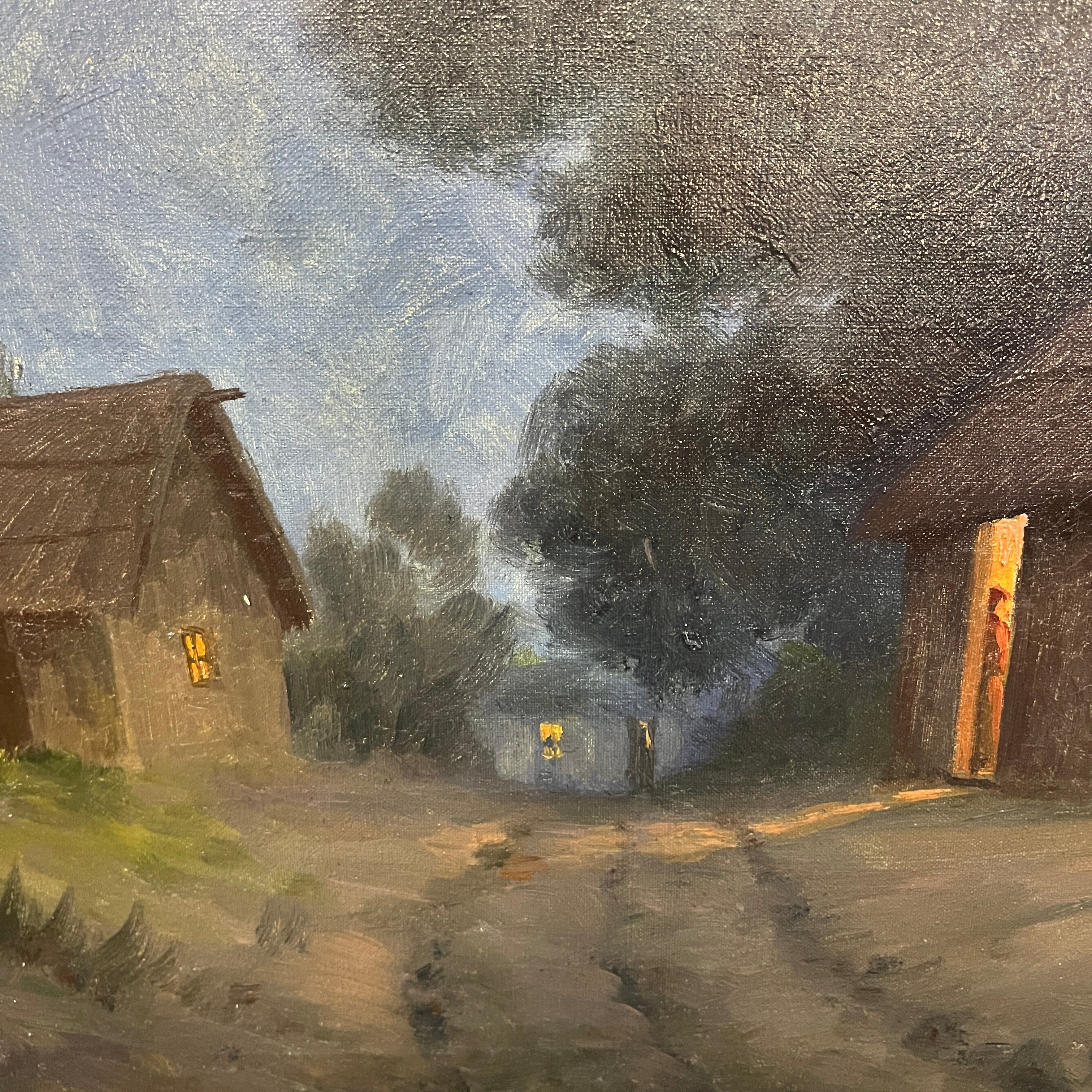 Benito Ramos Catalán - Óleo sobre tela 'Casas al lado del camino'