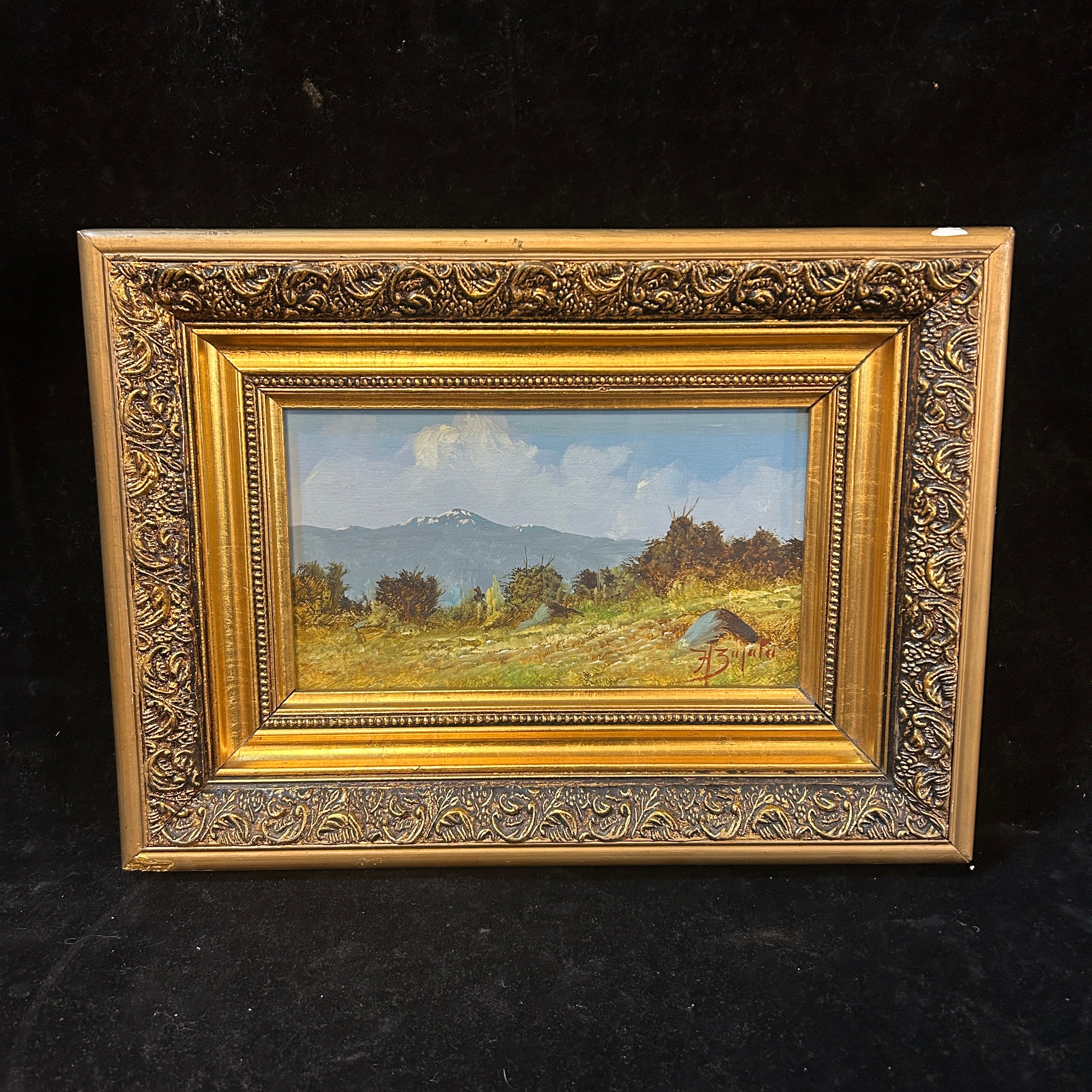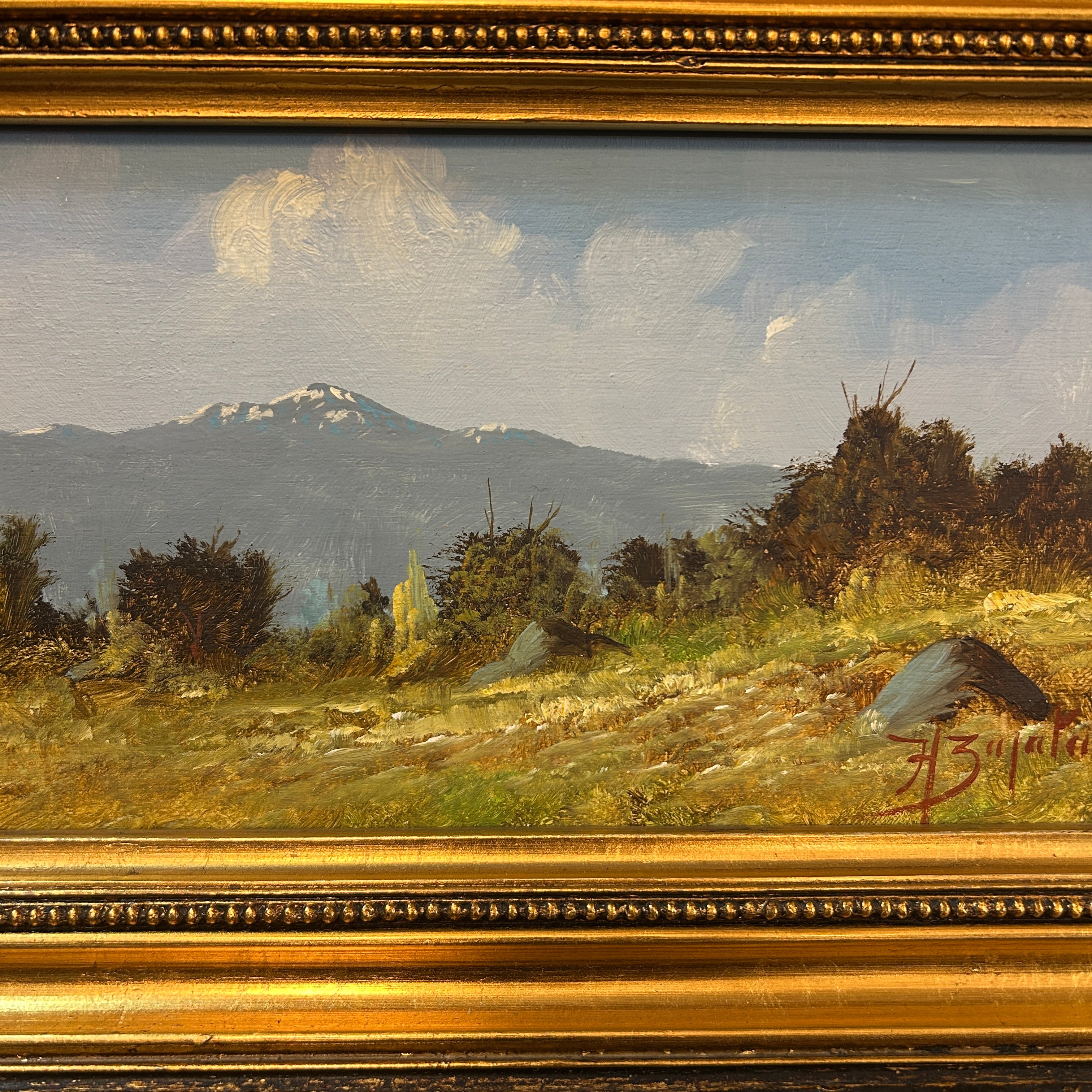 Hugo Zapata - Óleo sobre madera ‘Paisaje de campo y cordillera’ (live)