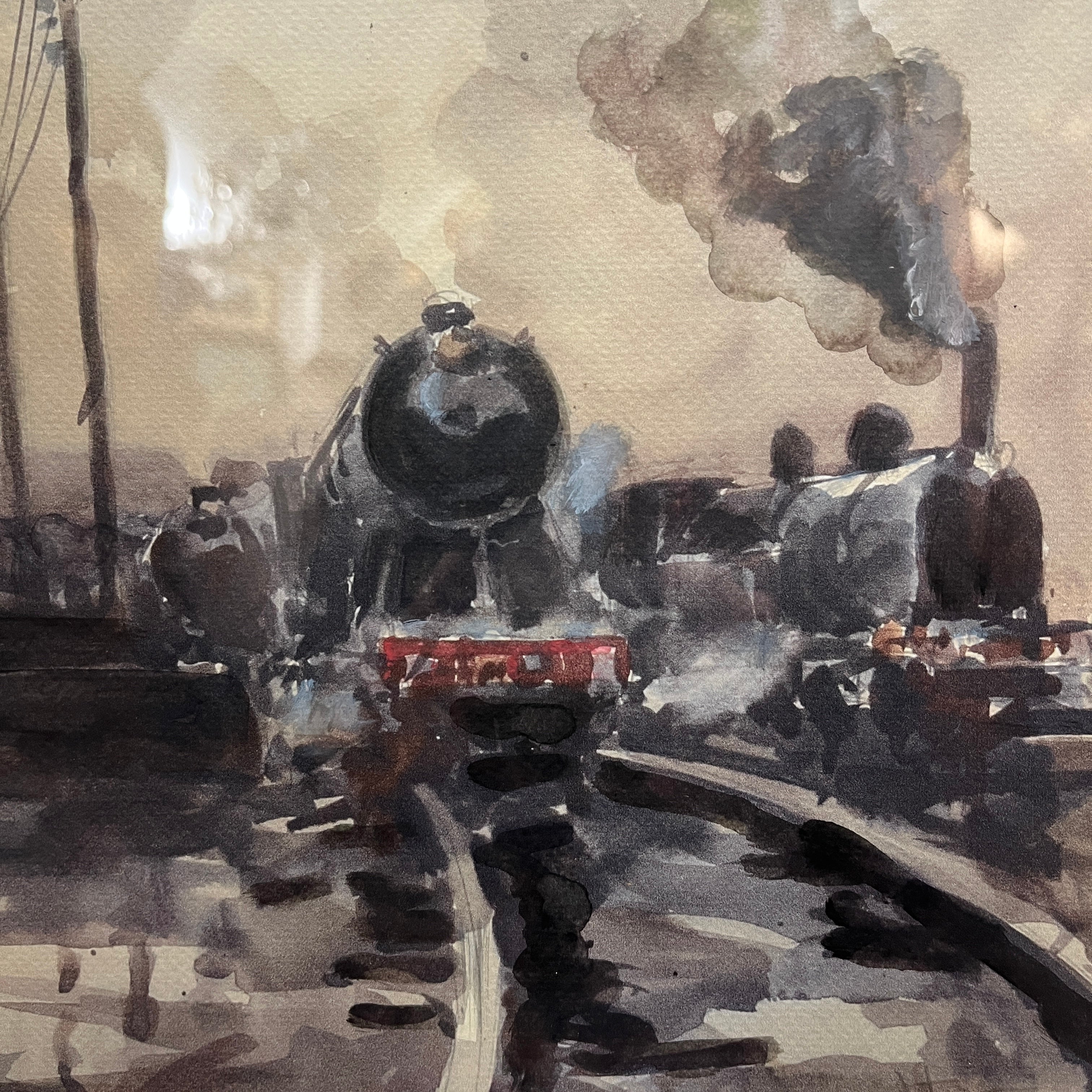 Ricardo Anwandter - Acuarela sobre papel 'Locomotoras'