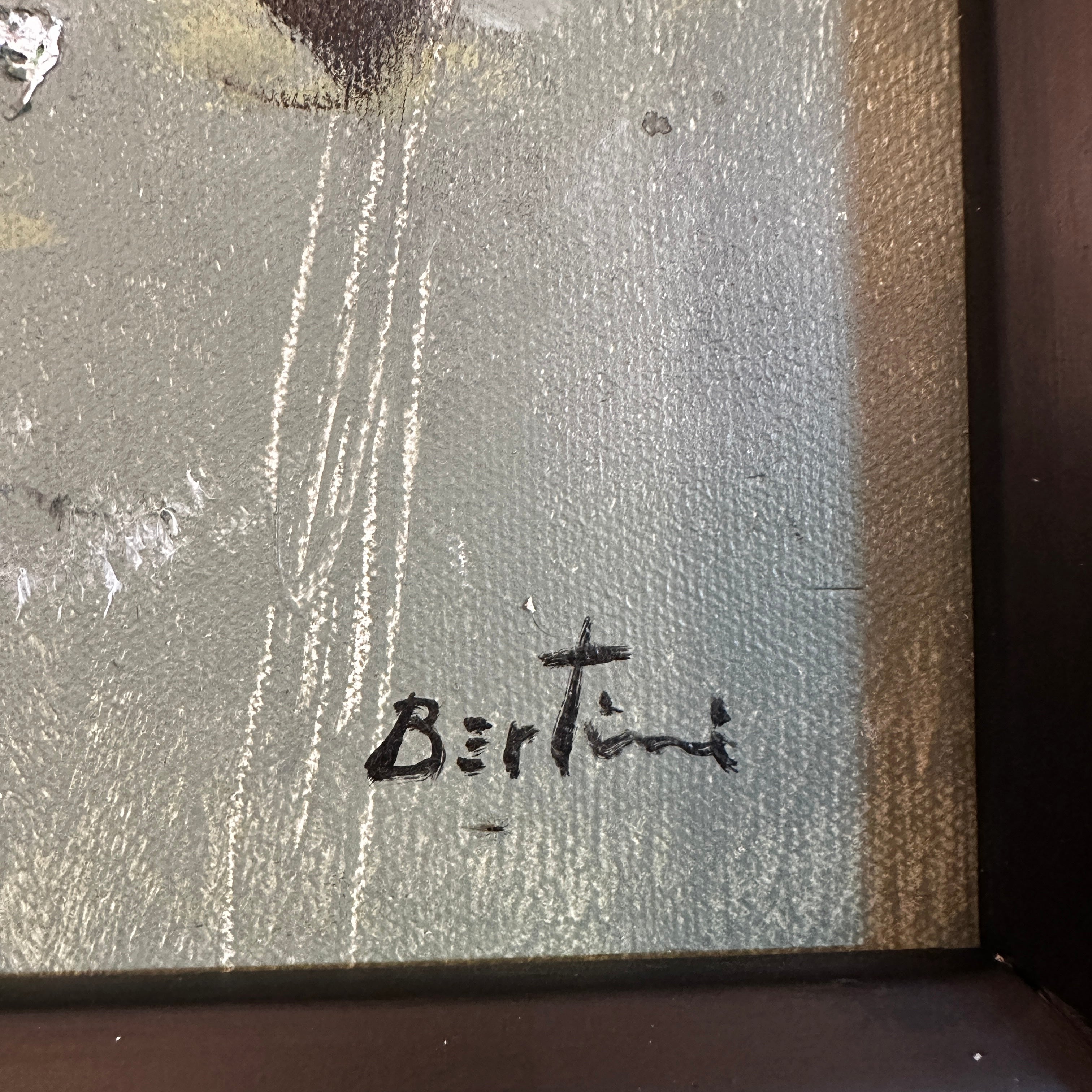 Bertini - Óleo sobre cartón 'Vaca sobre fondo verde grisáceo'