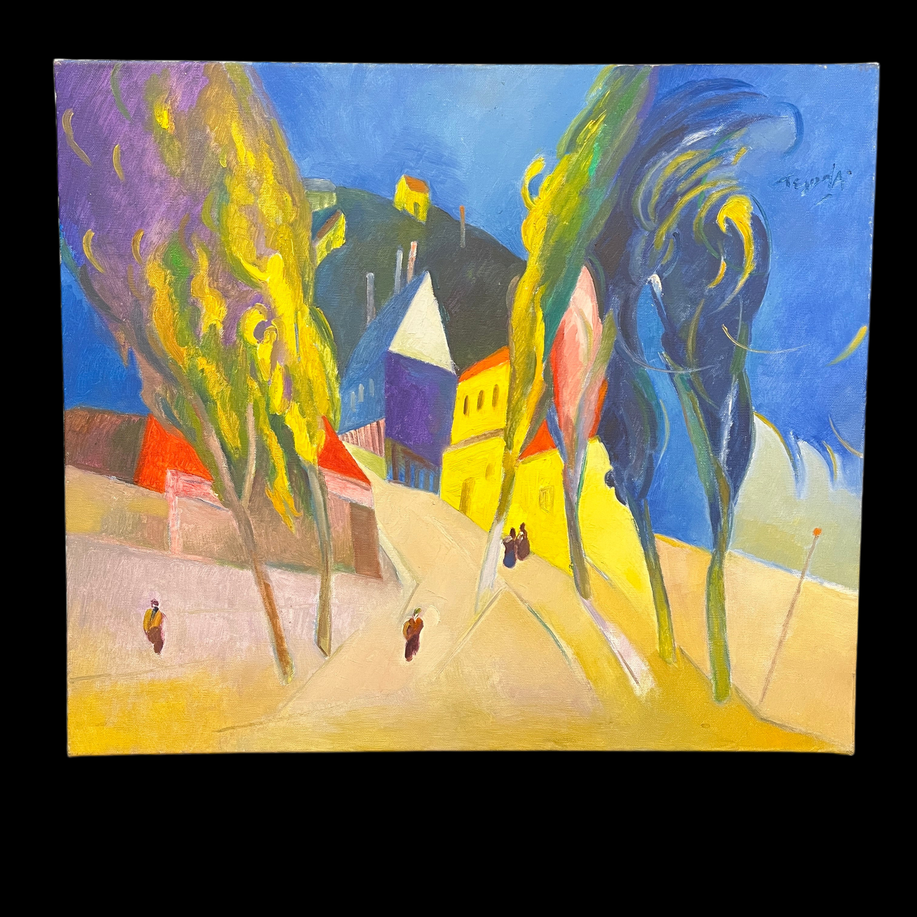Luís Tejada - Óleo sobre tela 'Caminata por el Pueblo'