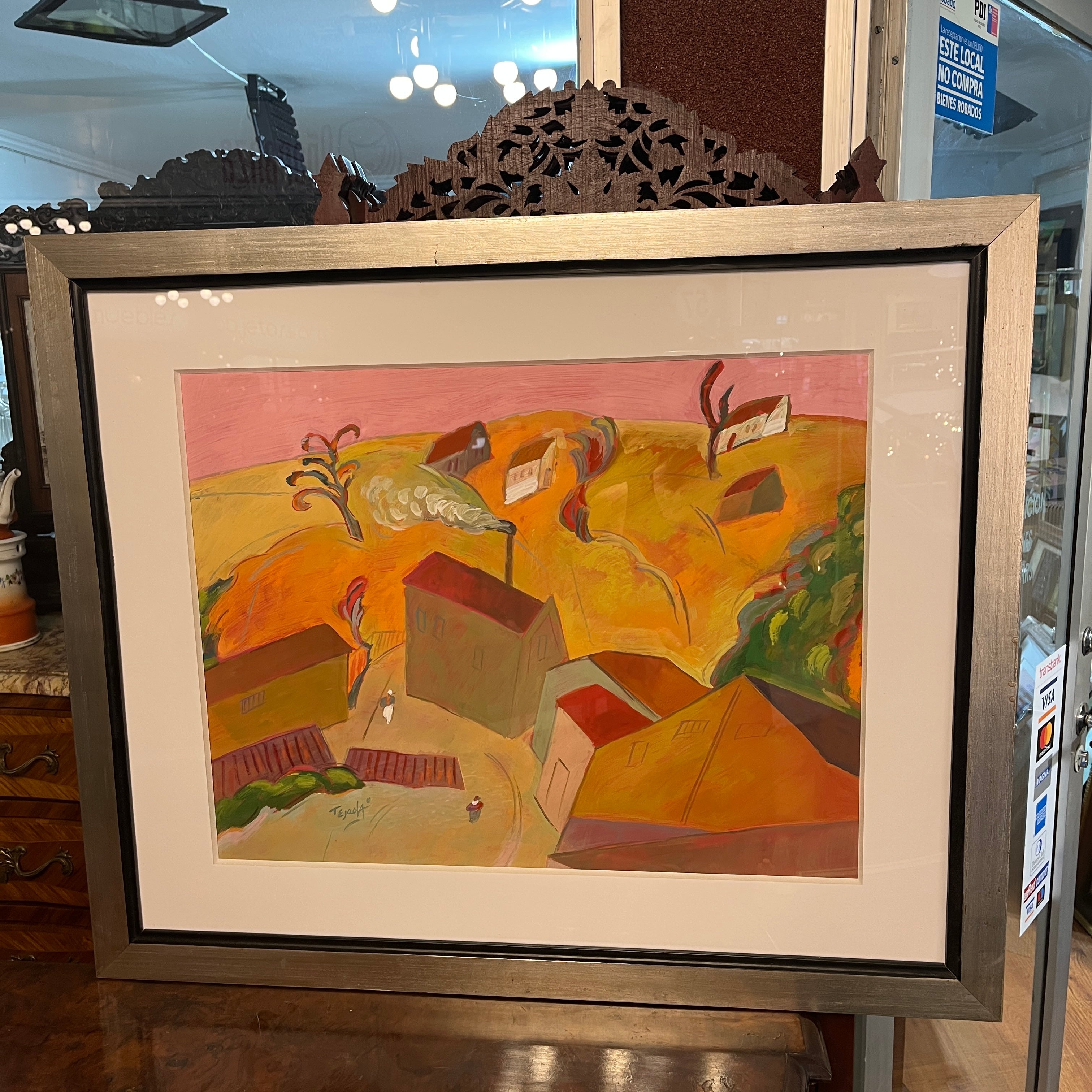 Luis Tejada - Óleo sobre papel ‘Pueblo naranja’