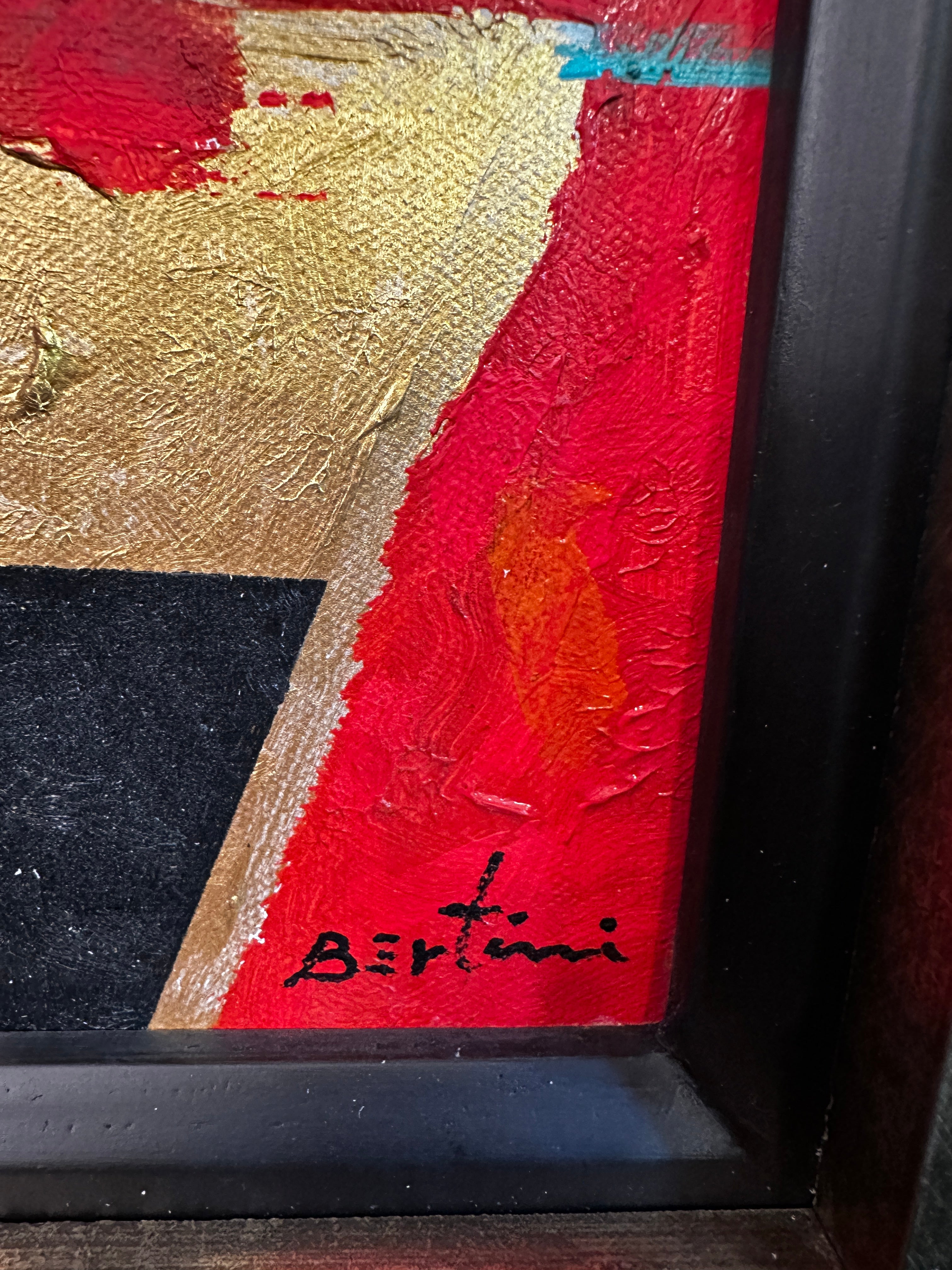 Bertini - Óleo sobre cartón 'Vaca sobre fondo rojo'