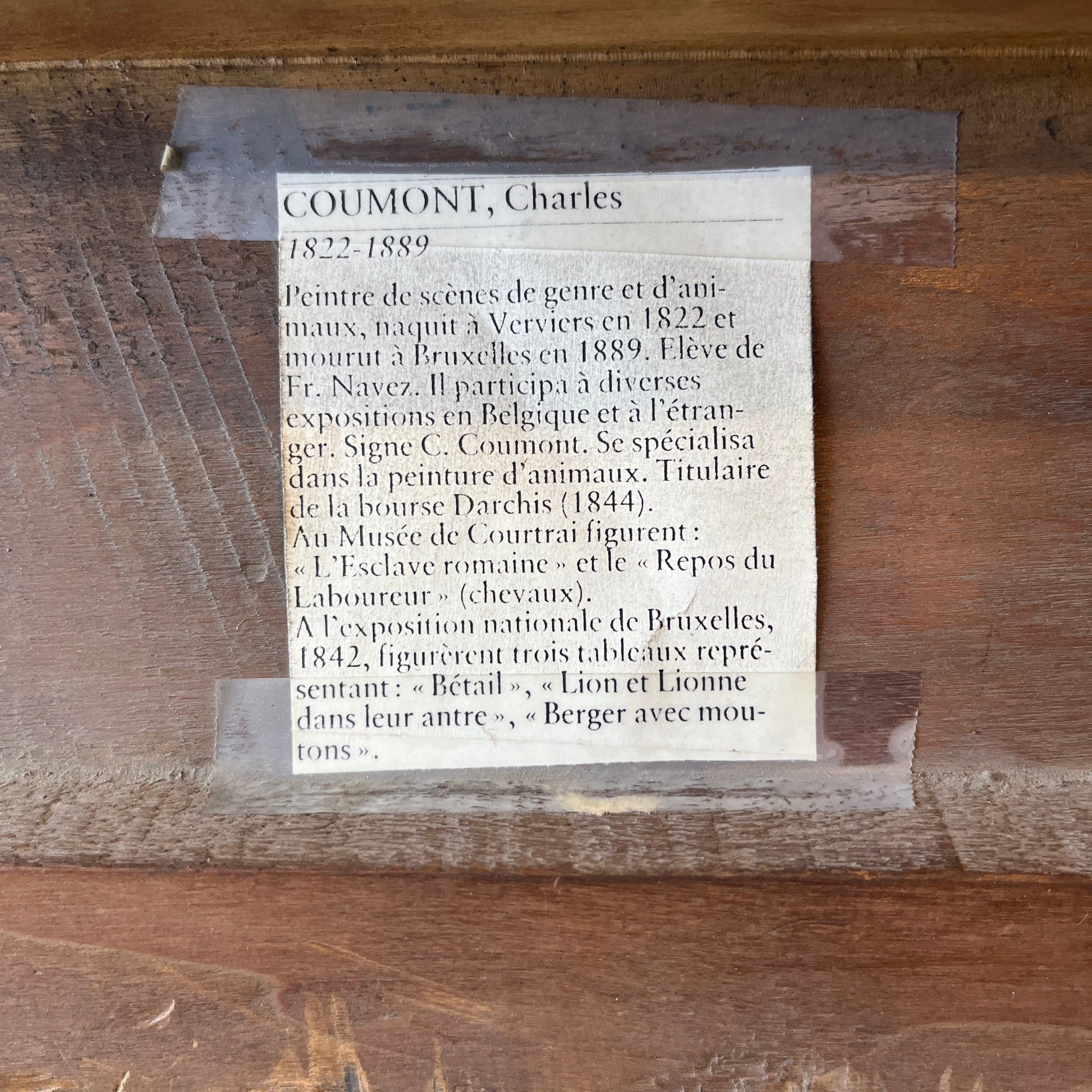 Charles Coumont - Óleo sobre tela 'Paisaje de campo con caballos'