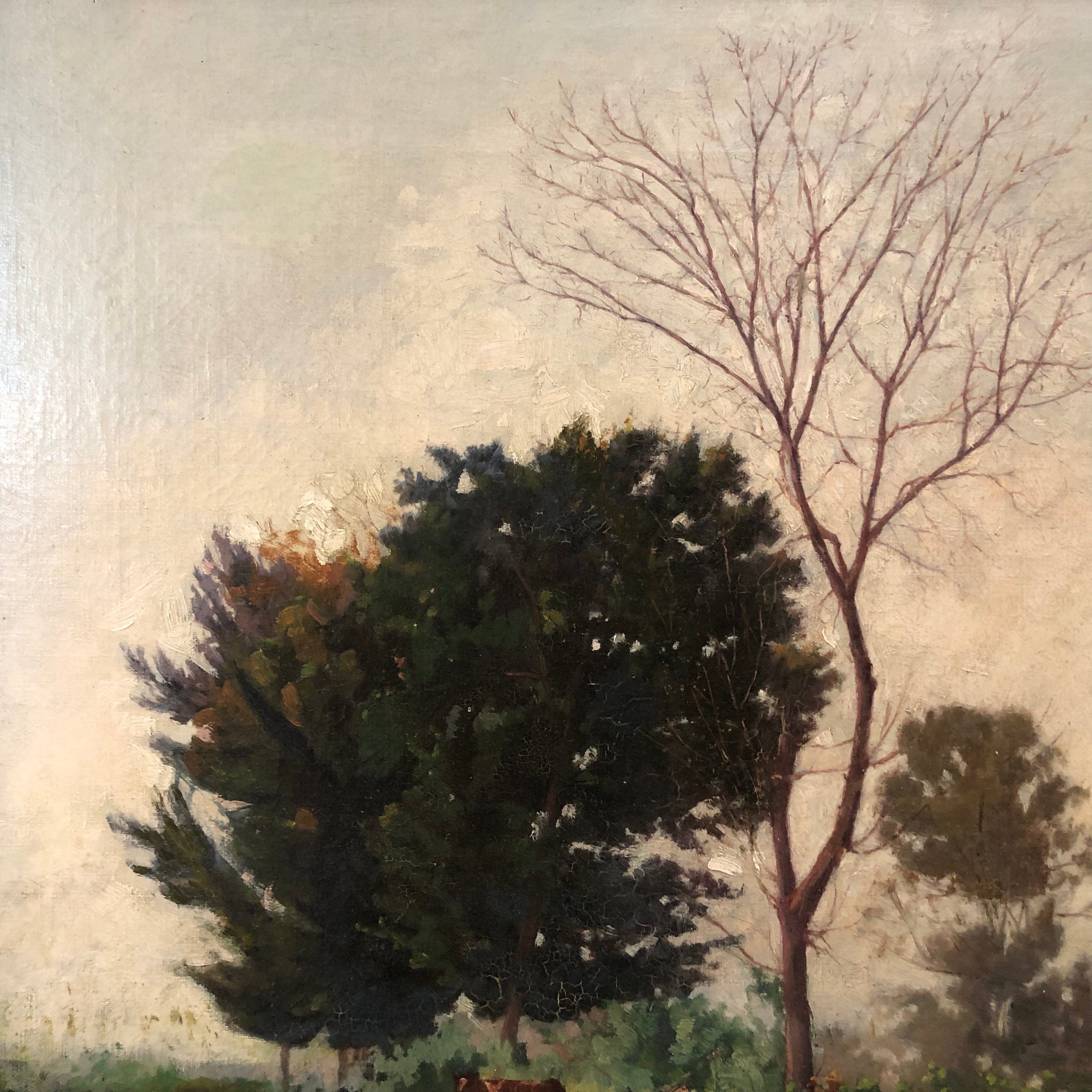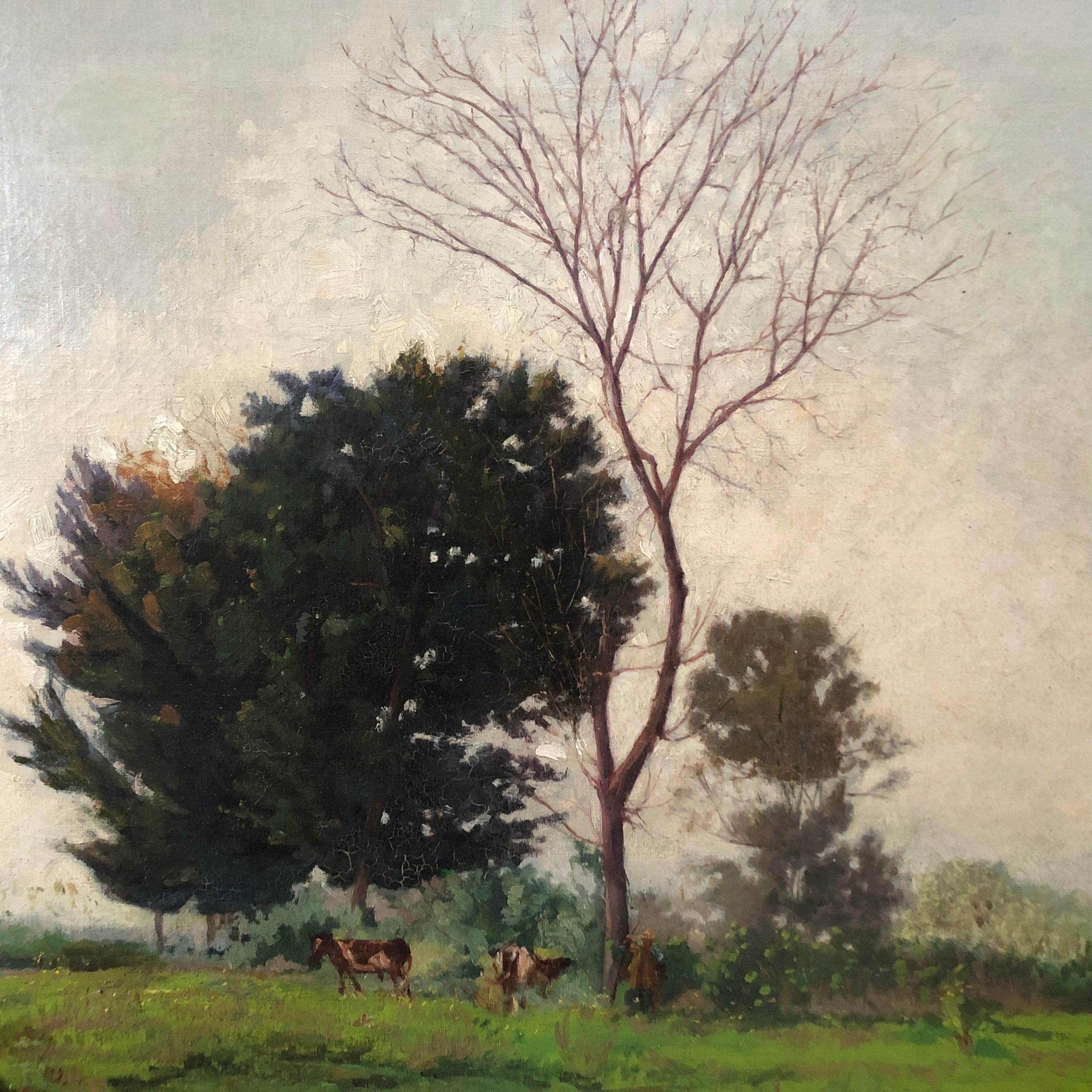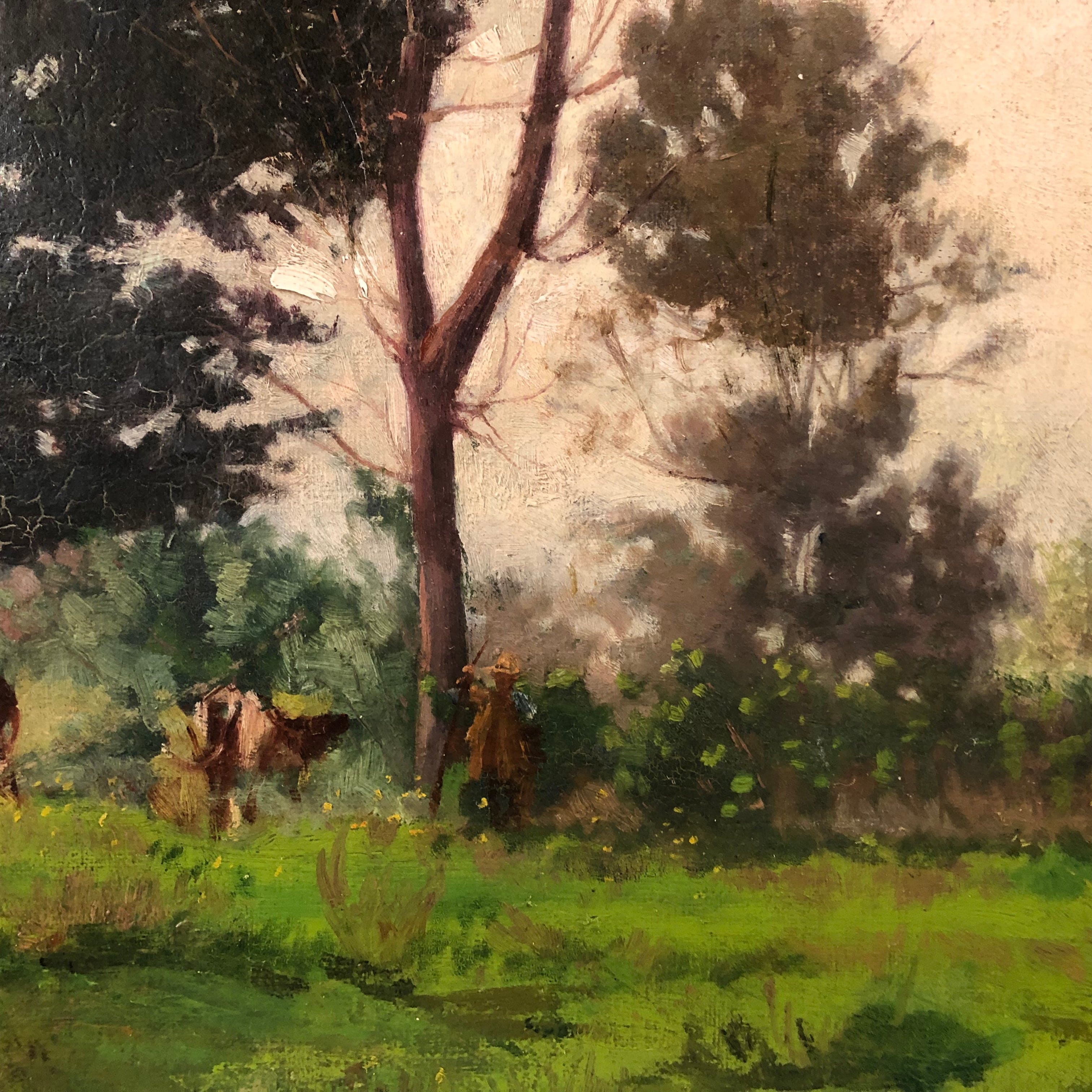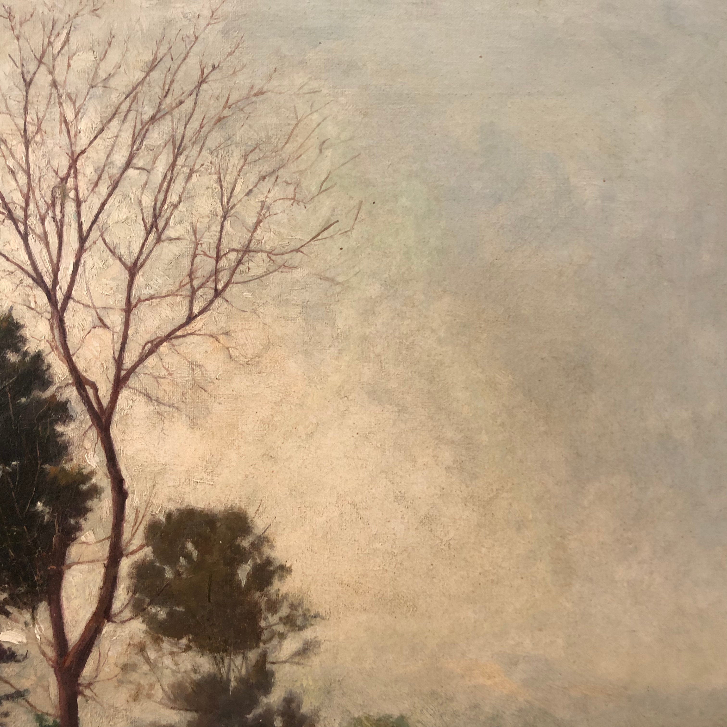Óleo sobre tela, clásico paisaje sureño. Autor anónimo o firma borrada, posiblemente tras las restauraciones realizadas.