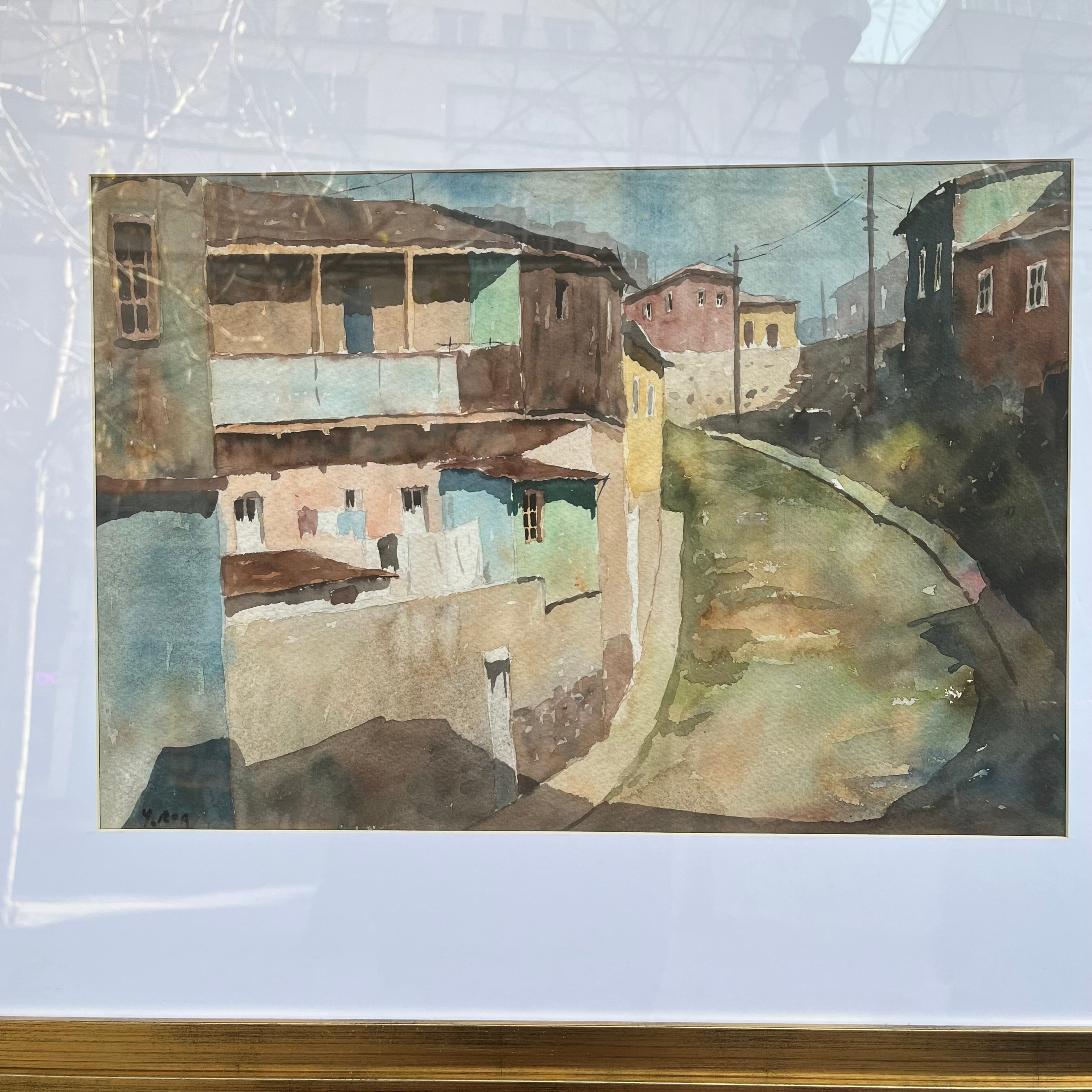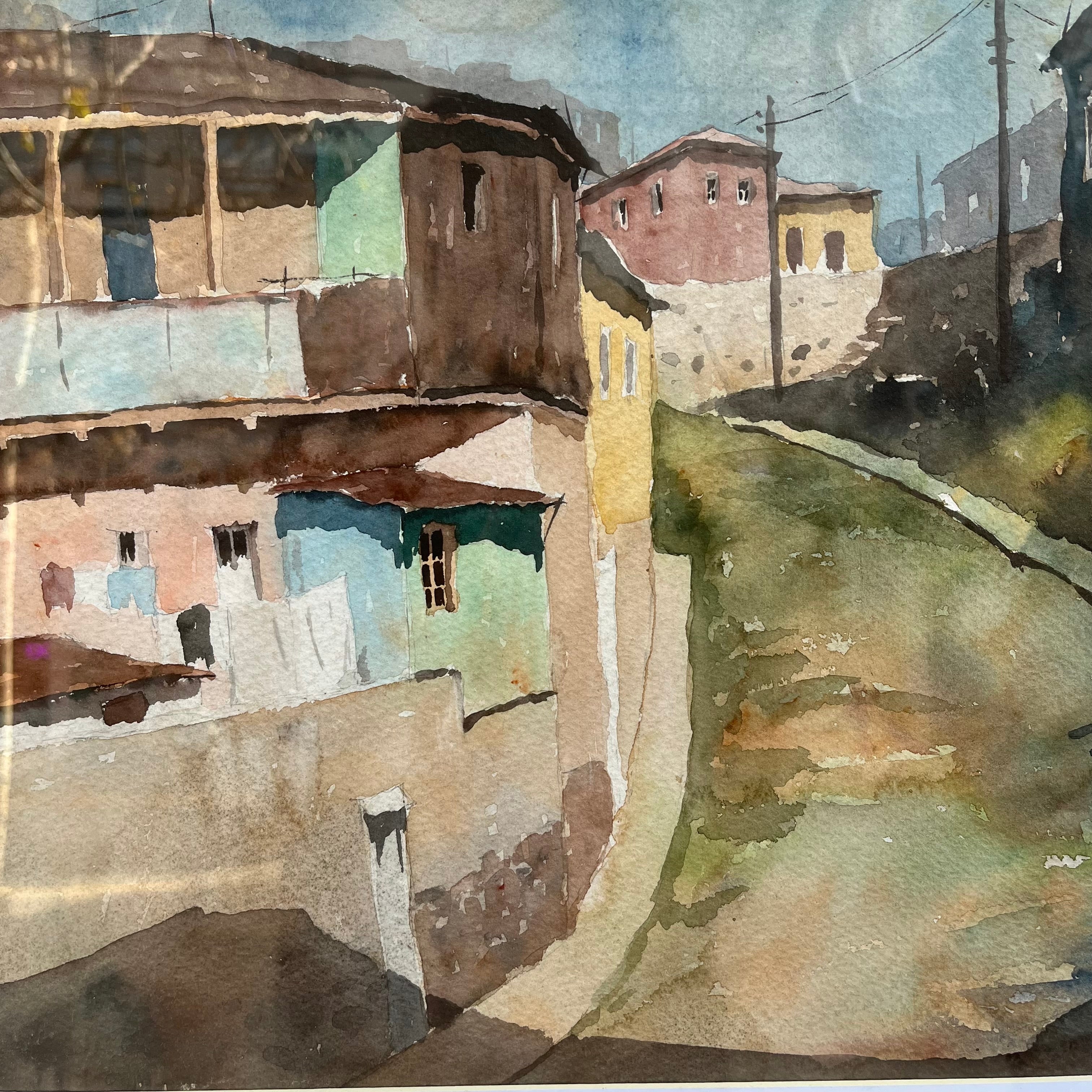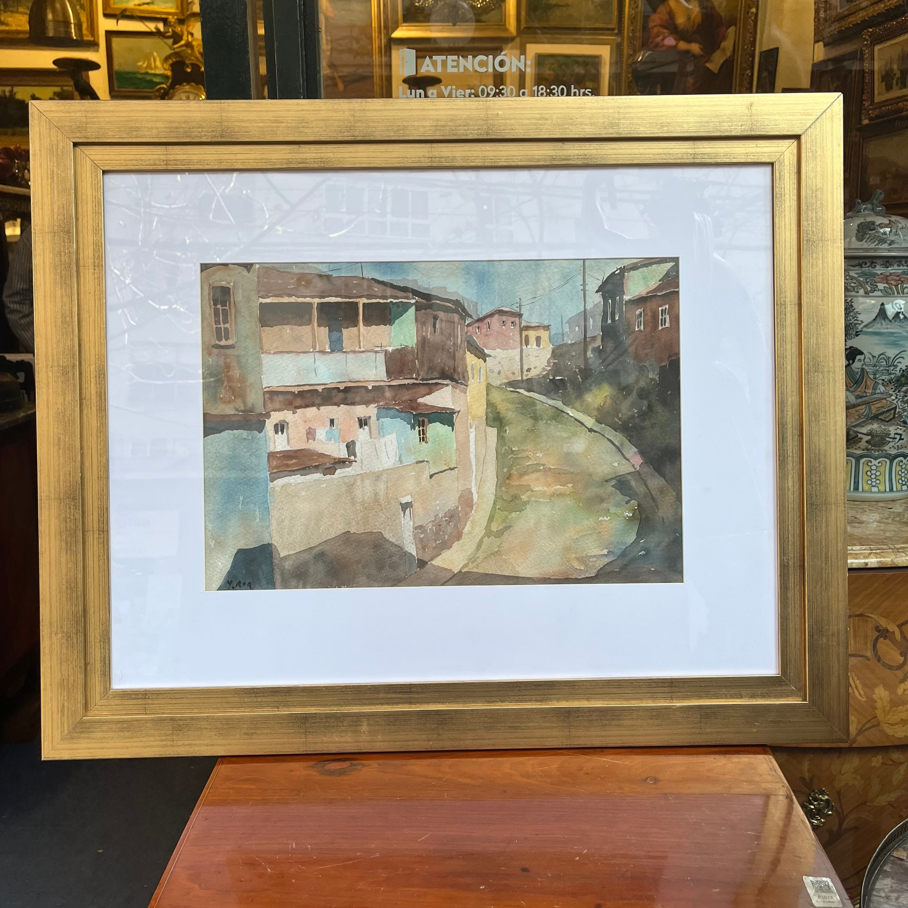 Hermosa acuarela que evoca las clásicas subidas a los cerros porteños.