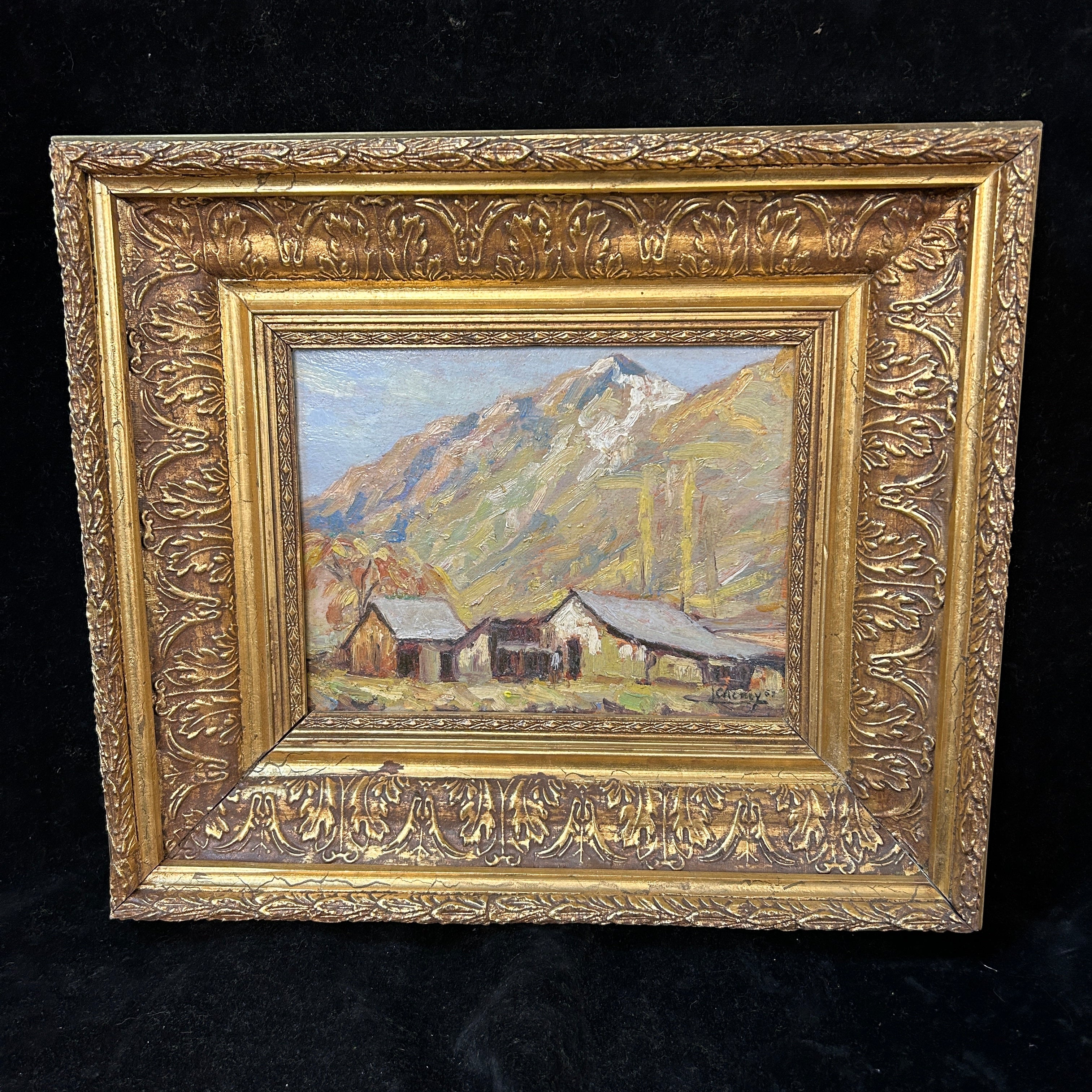 Ladislao Cheney - Óleo sobre cartón ‘Casa y cordillera’