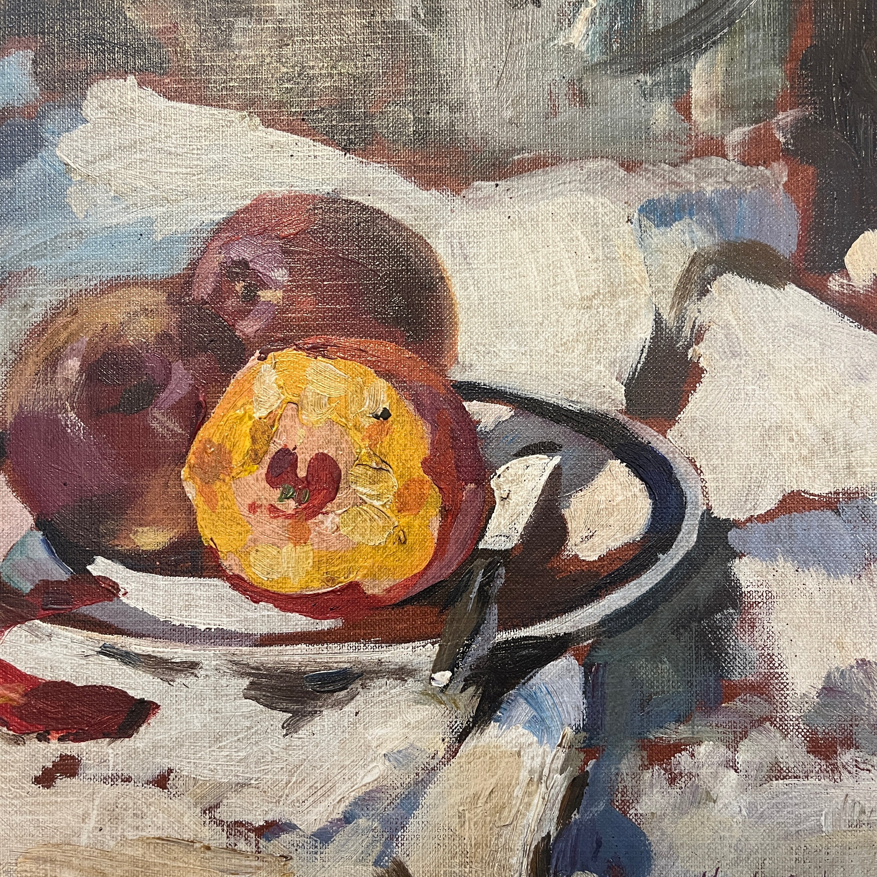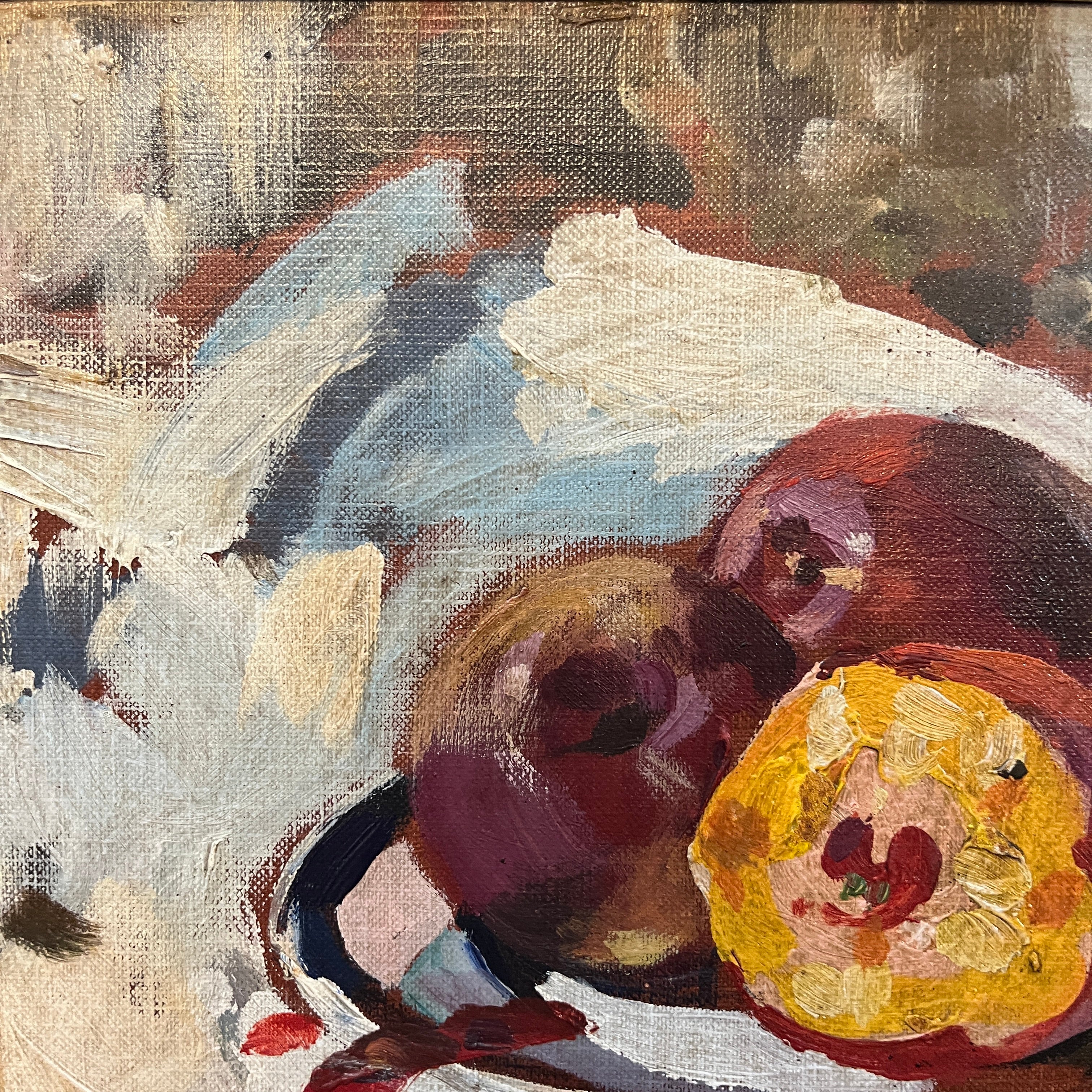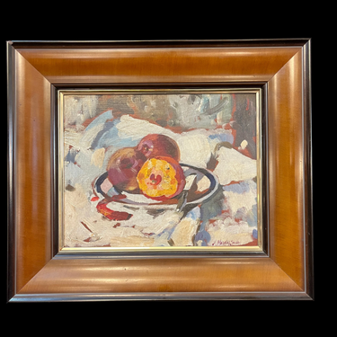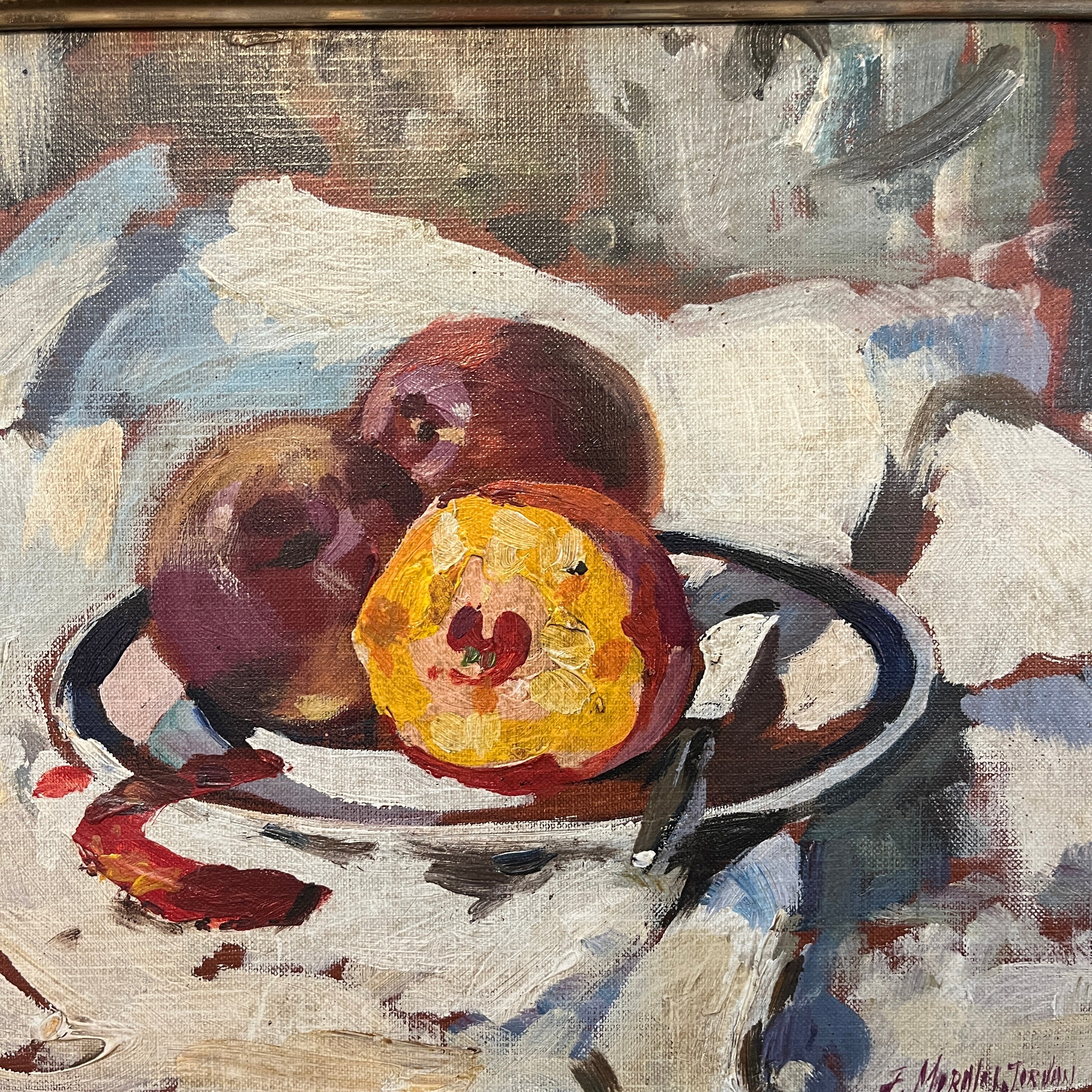 Fernando Morales Jordán -Óleo sobre madera bodegón 'Duraznos'