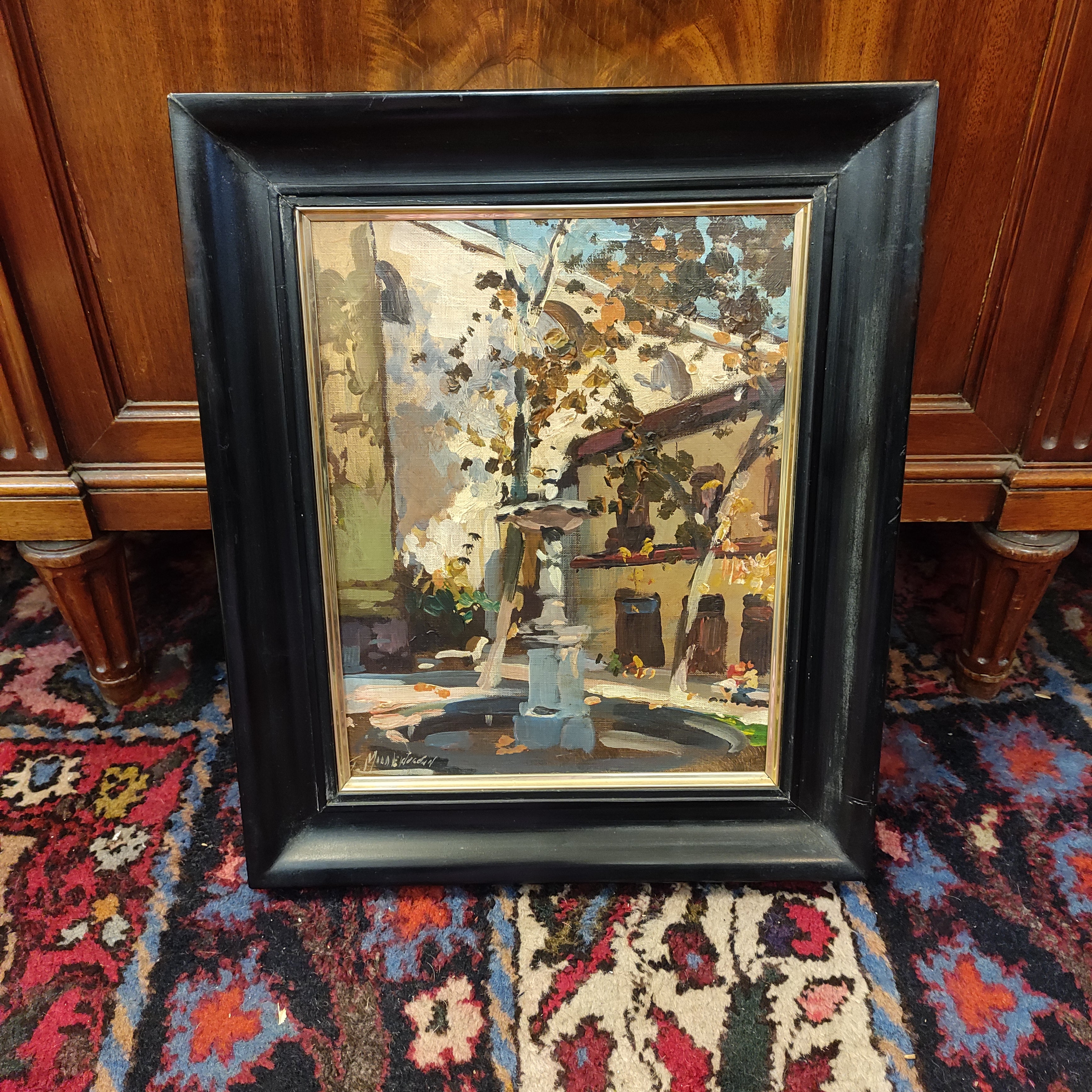 Morales Jordán - Óleo sobre cartón entelado 'Plazuela Santa Ana'