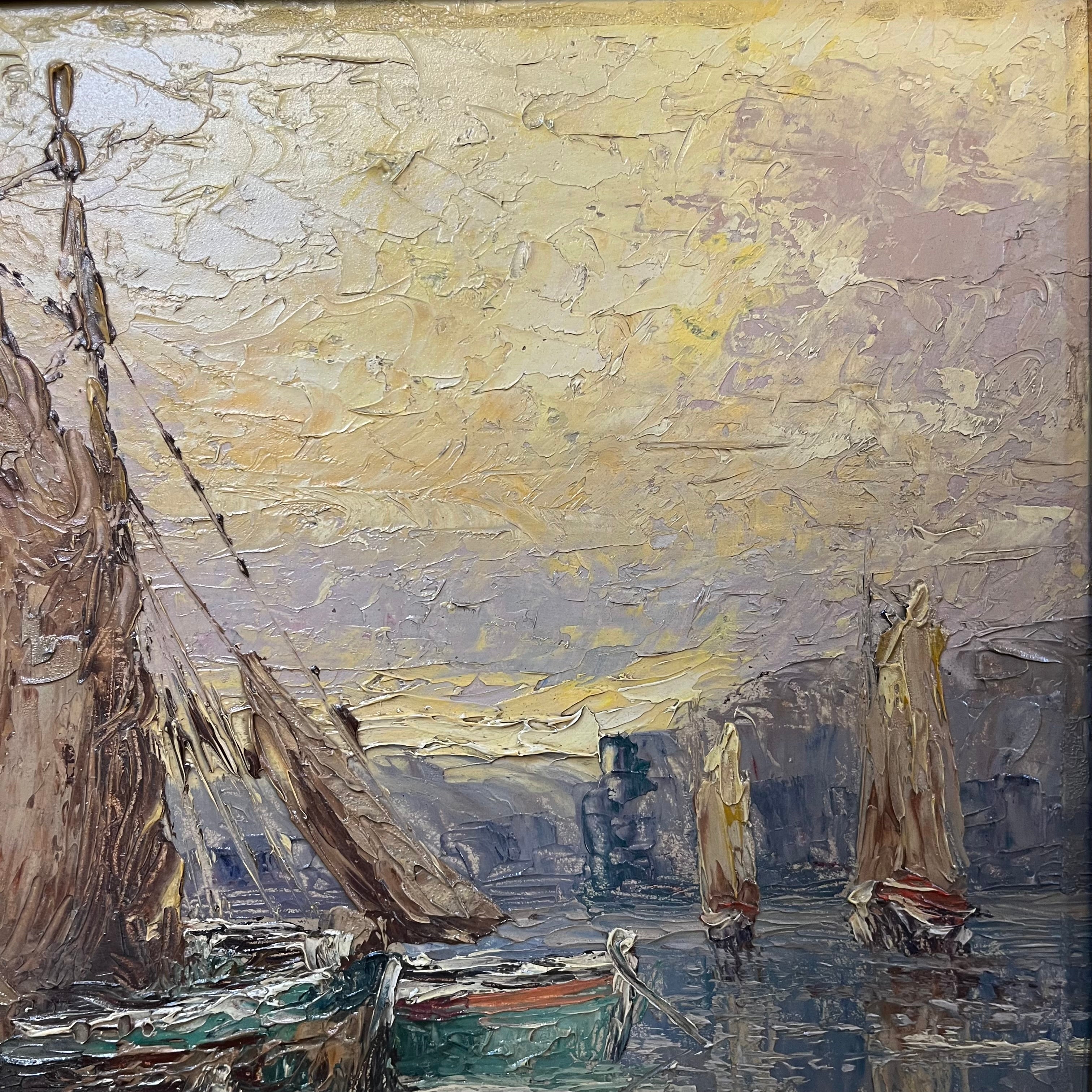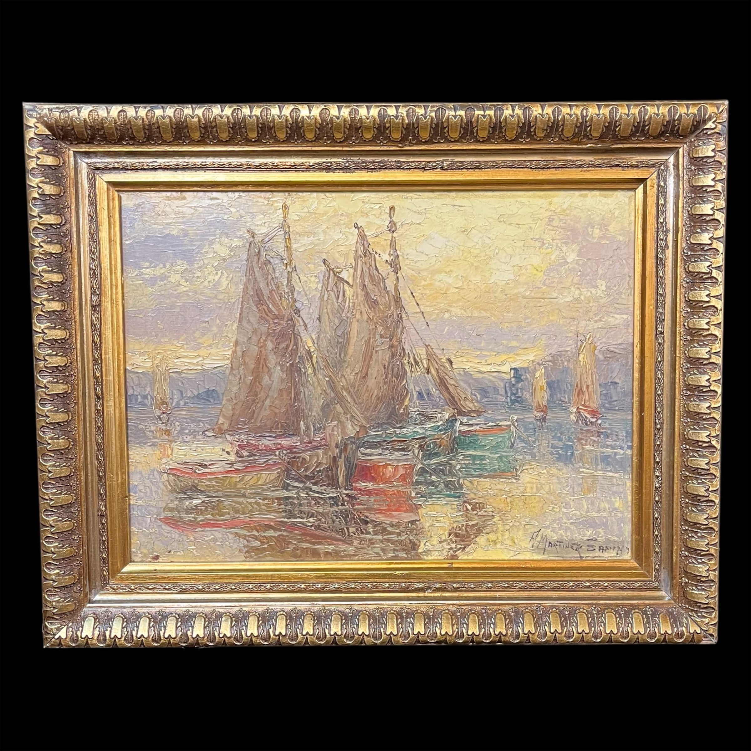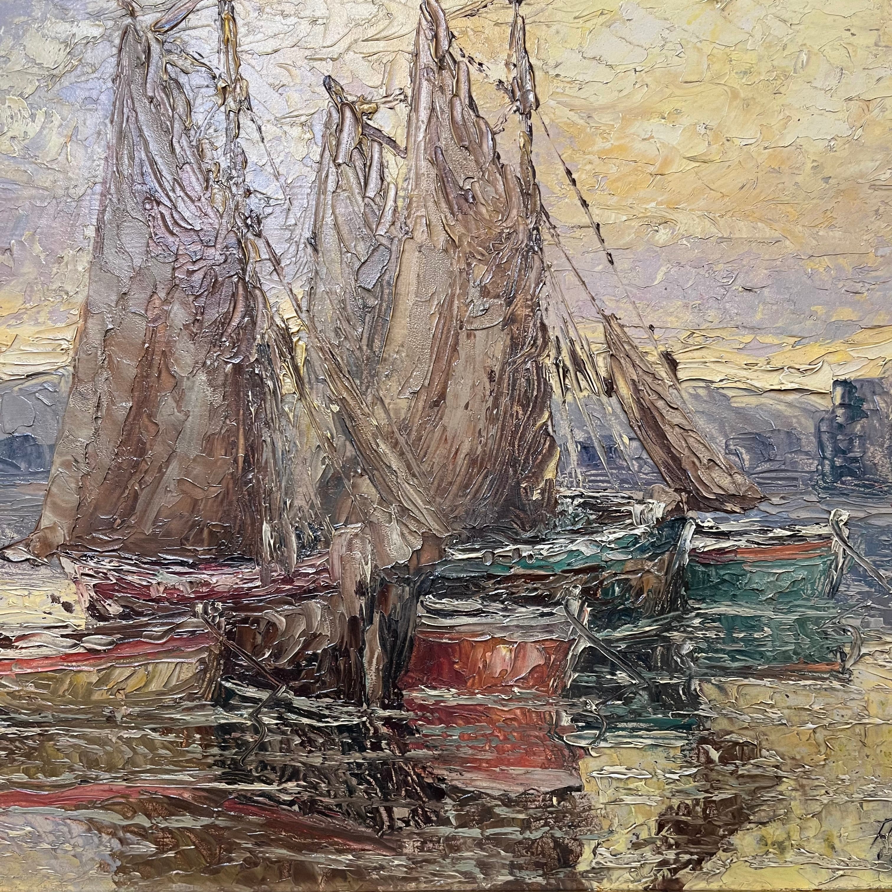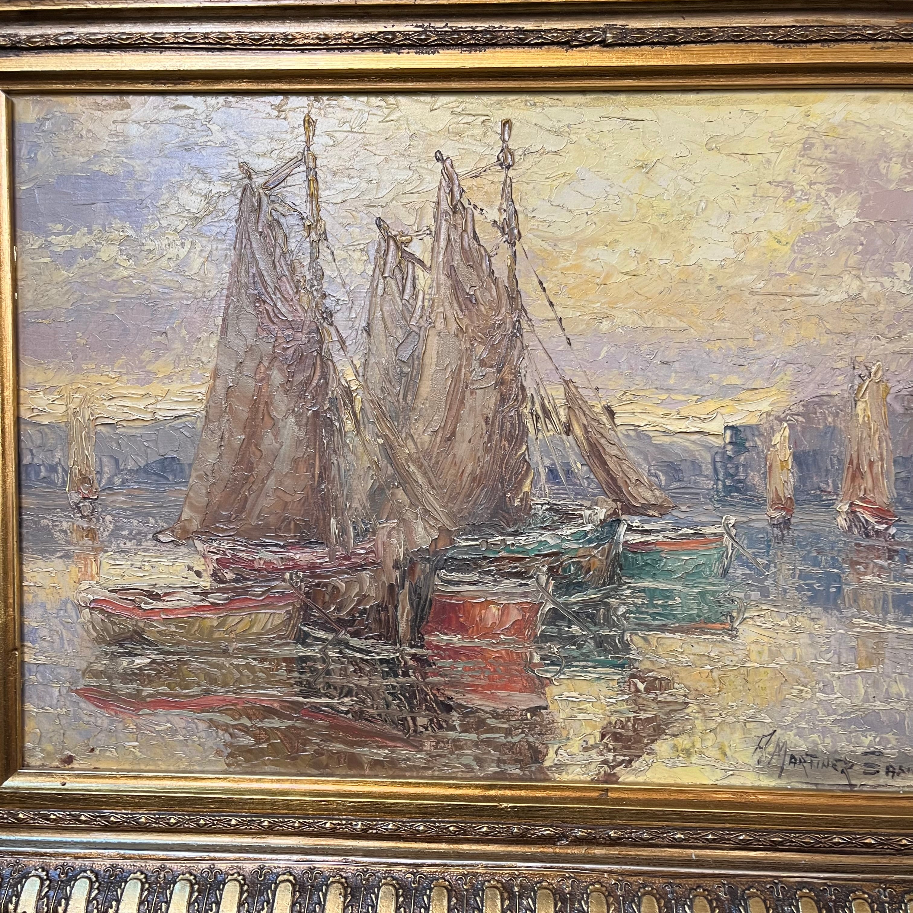 Pedro Martinez Sancho - Óleo sobre madera 'Veleros reposando'