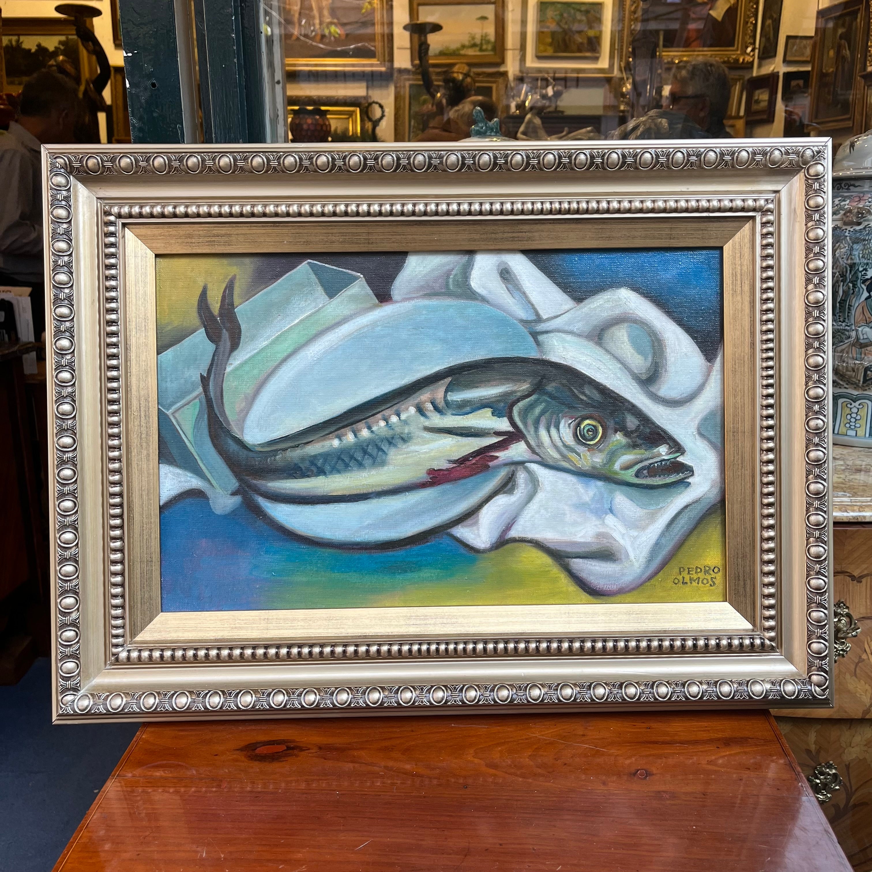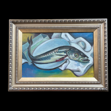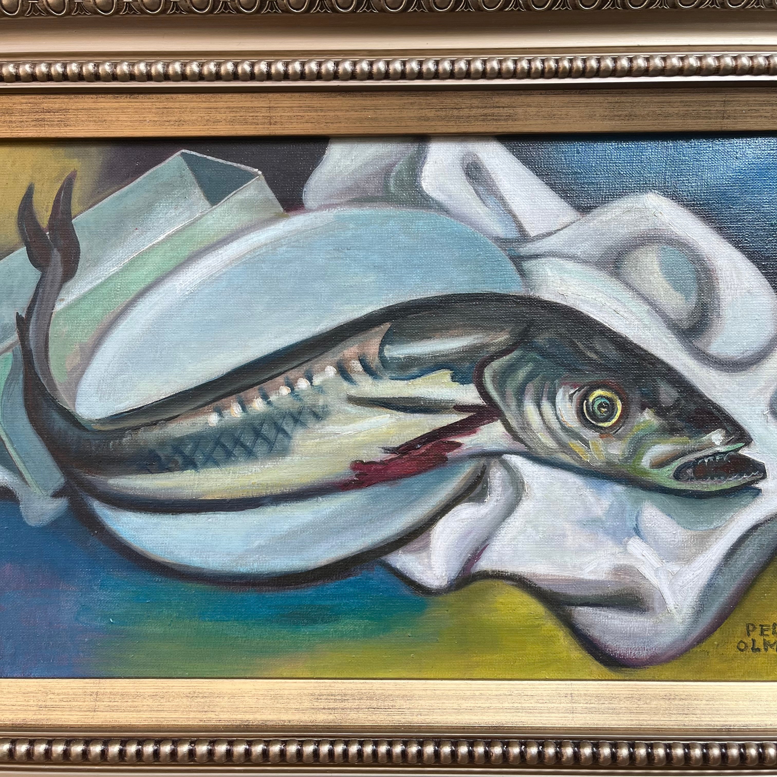 Pedro Olmos - Óleo sobre tela ‘Composición Pez en el Plato’