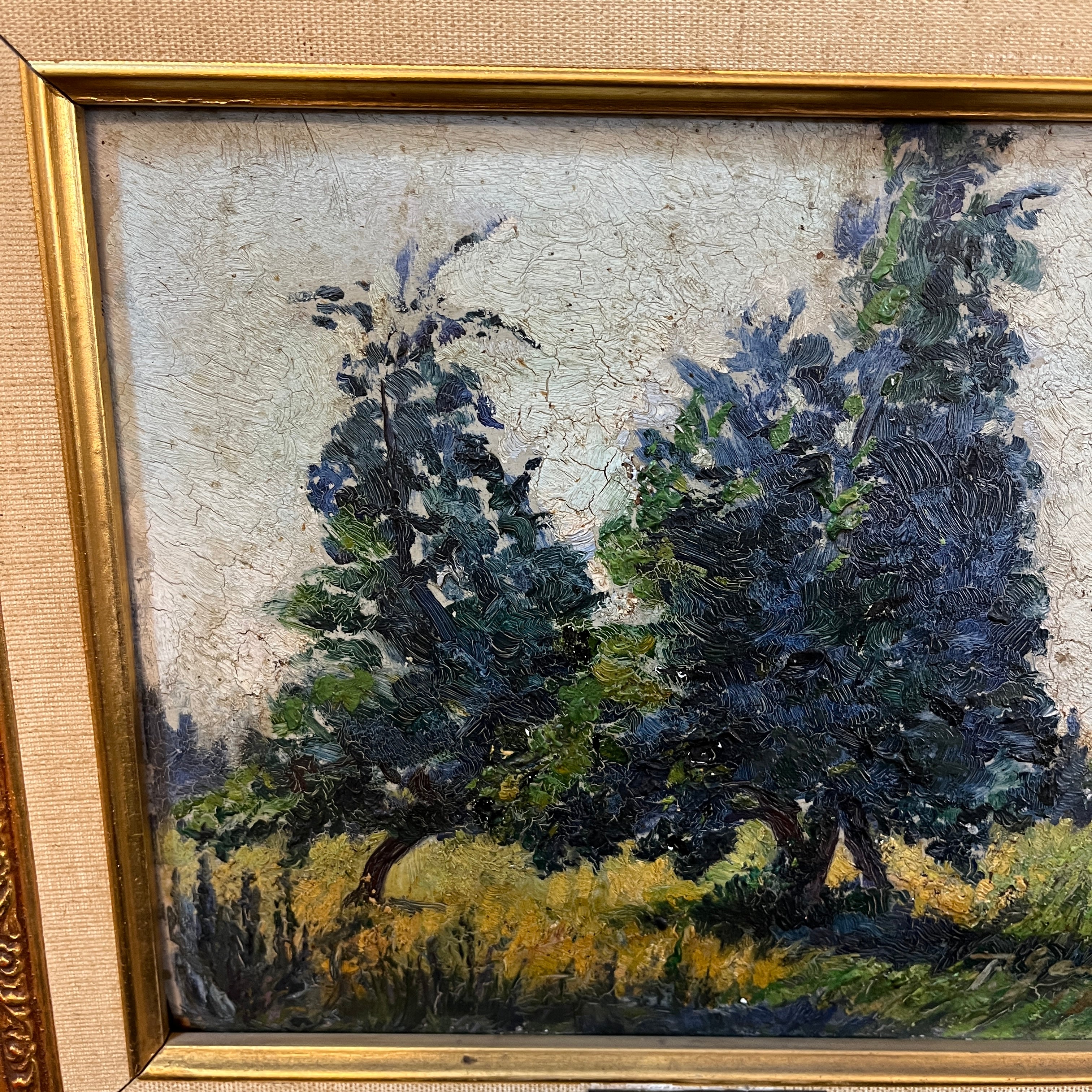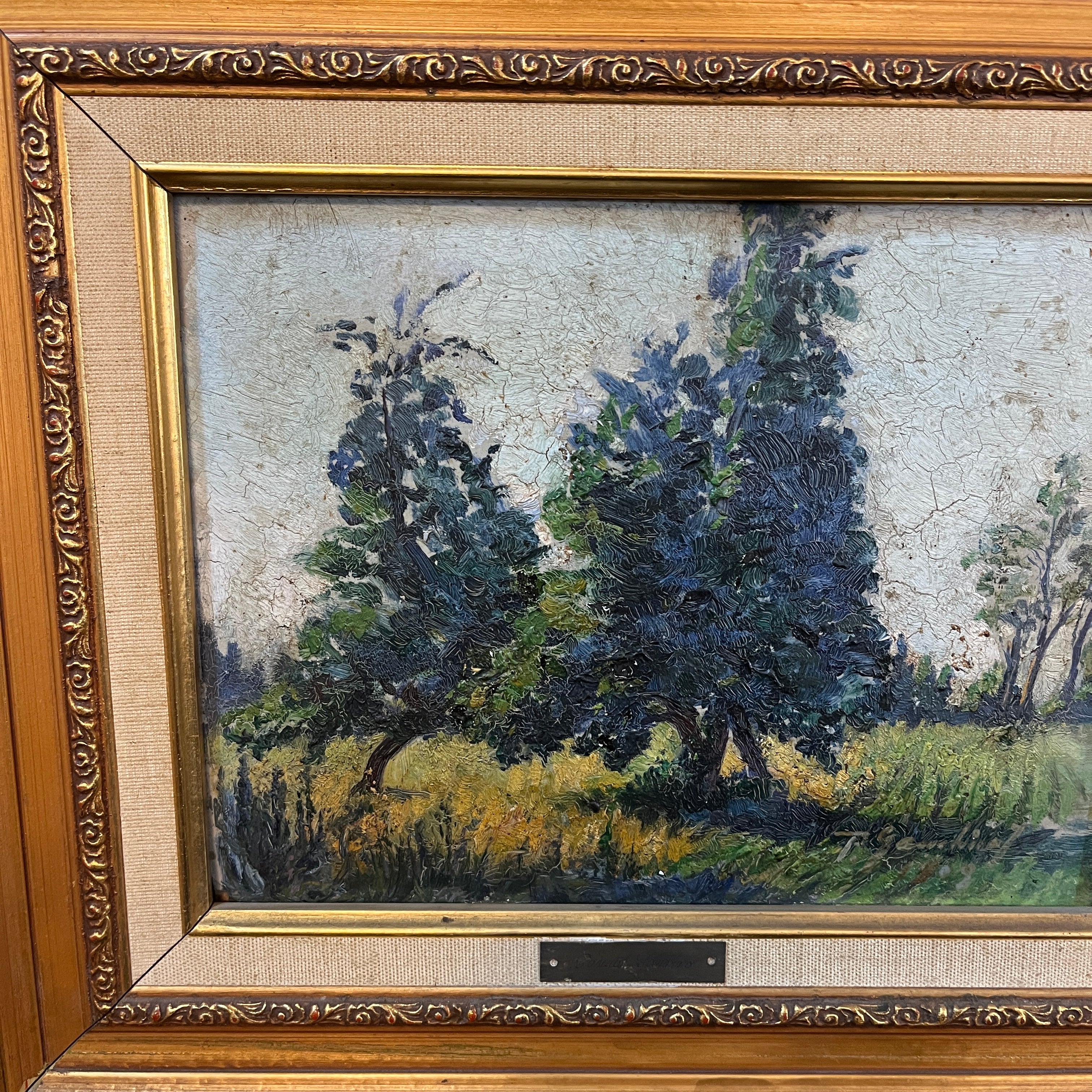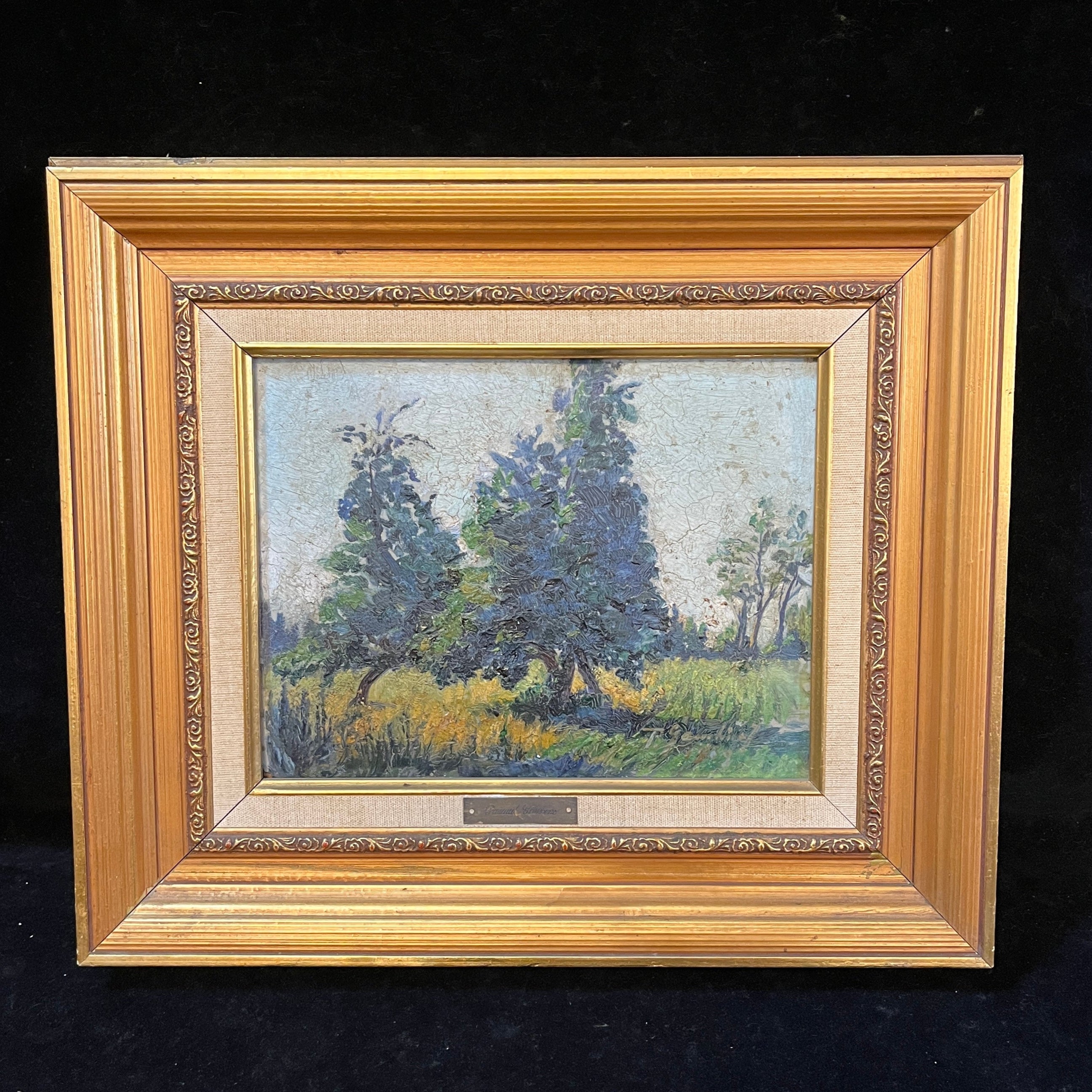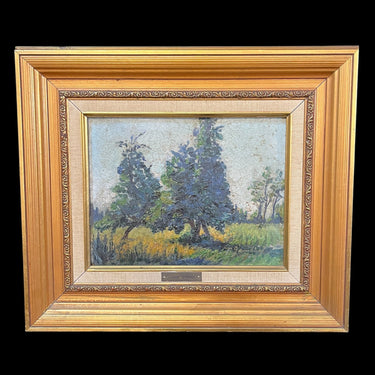 Pascual Gambino - Óleo sobre madera ´Paisaje de dos arboles`