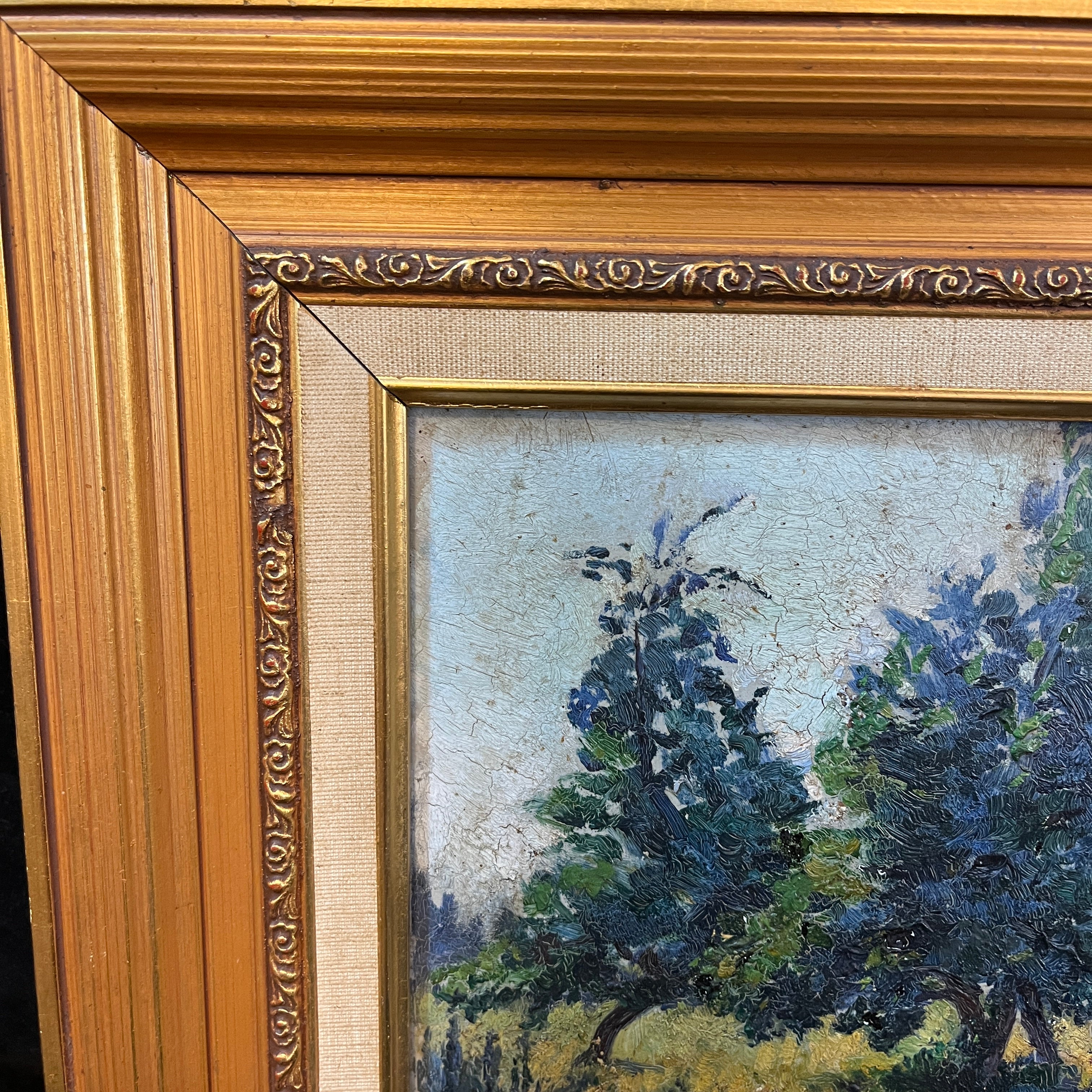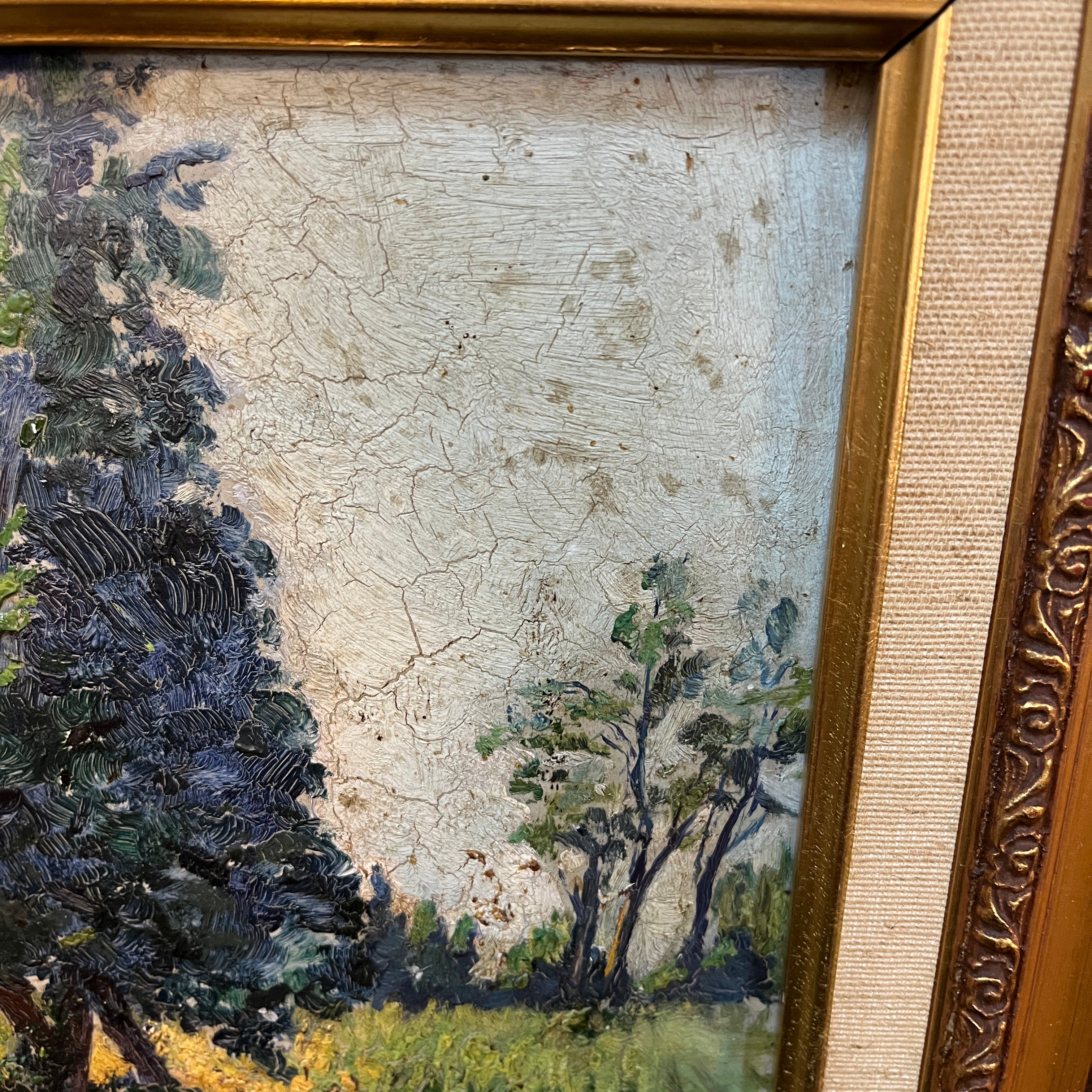 Estado: En buen estado. La zona del cielo se encuentra craquelada. El marco tiene pequeños detalles en una de sus esquinas.