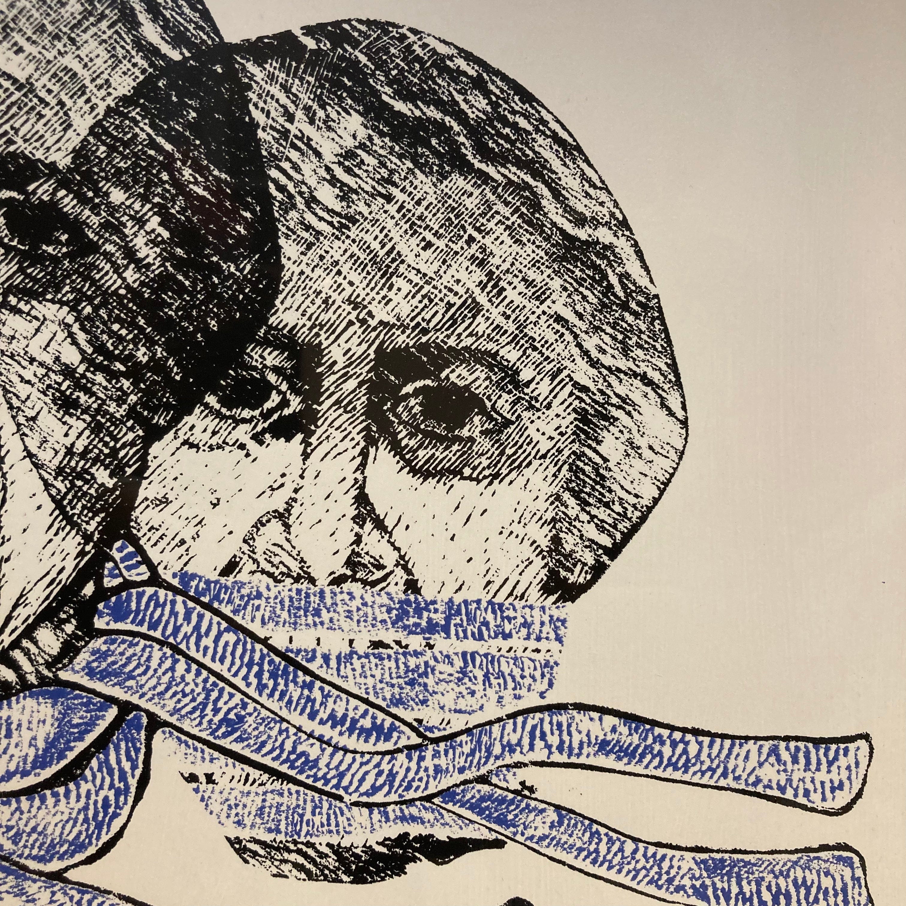 De la premiada artista nacional, Teresa Gazitúa, serigrafía realizada en 1978 en conmemoración de los derechos humanos, el titulo responde al derecho número 19. No está numerada. Otro ejemplar de eso obra figura en el Museo de la Memoria.