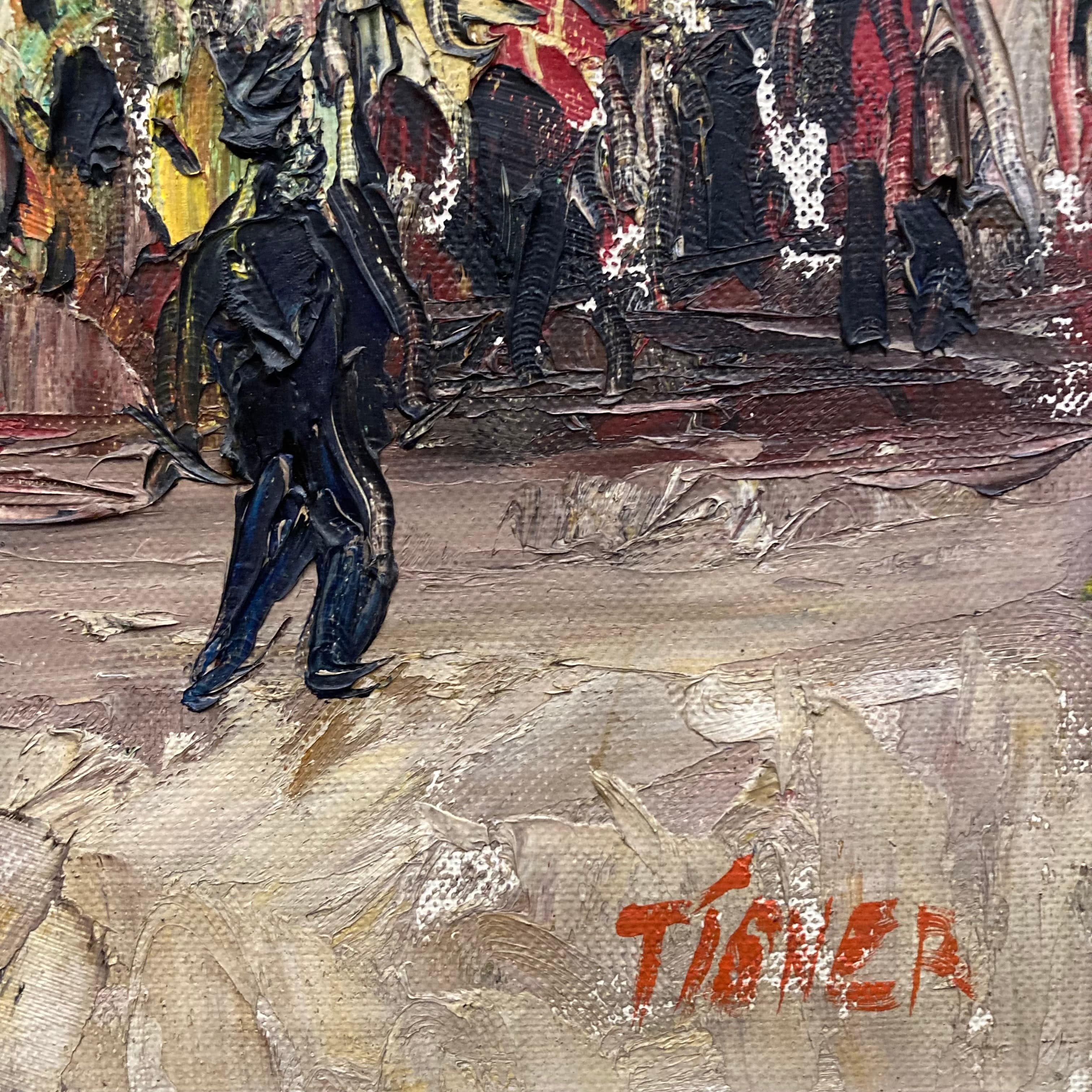 Óleo sobre tela del pintor Tígner. La pintura retrata un paisaje citadino en las calles de Paris.