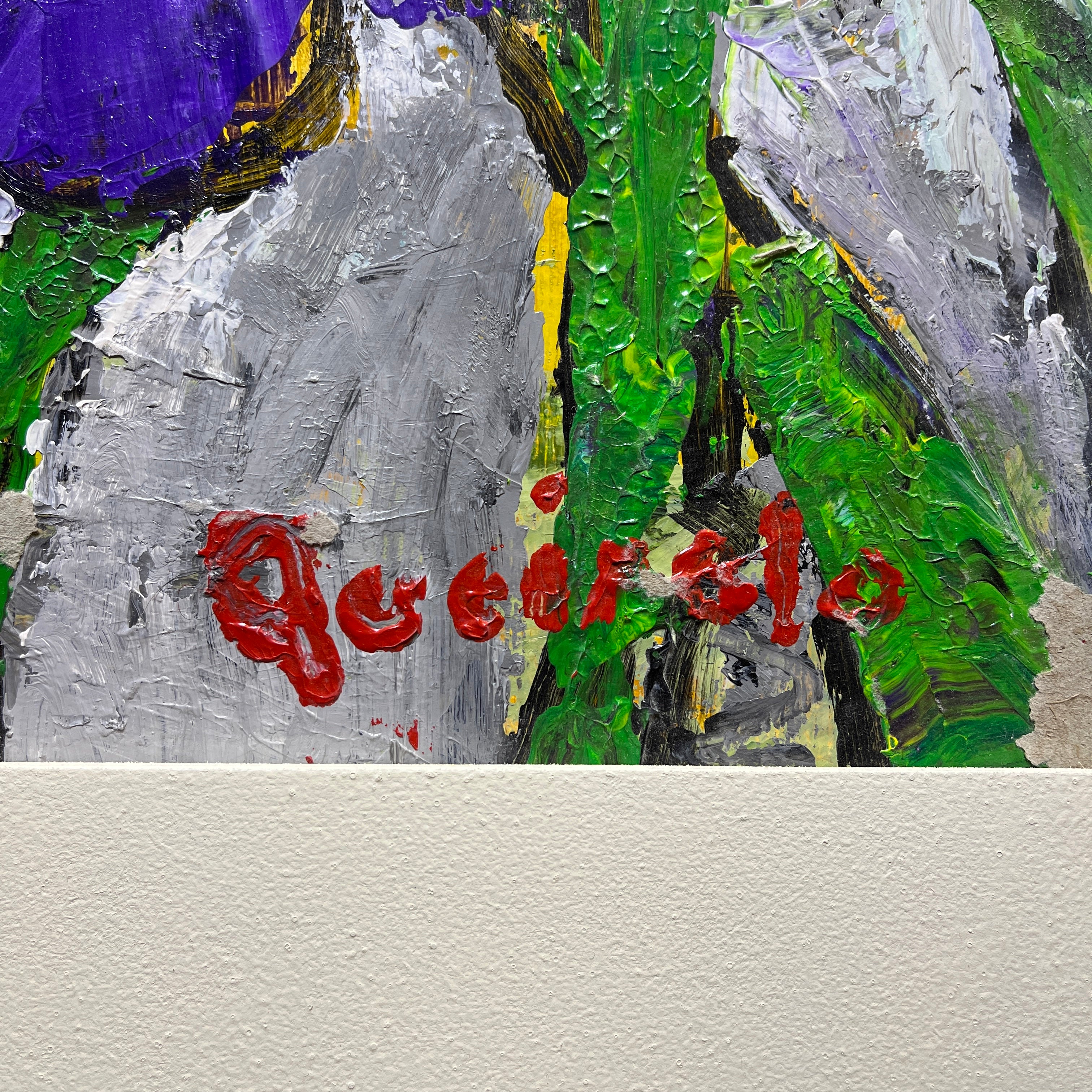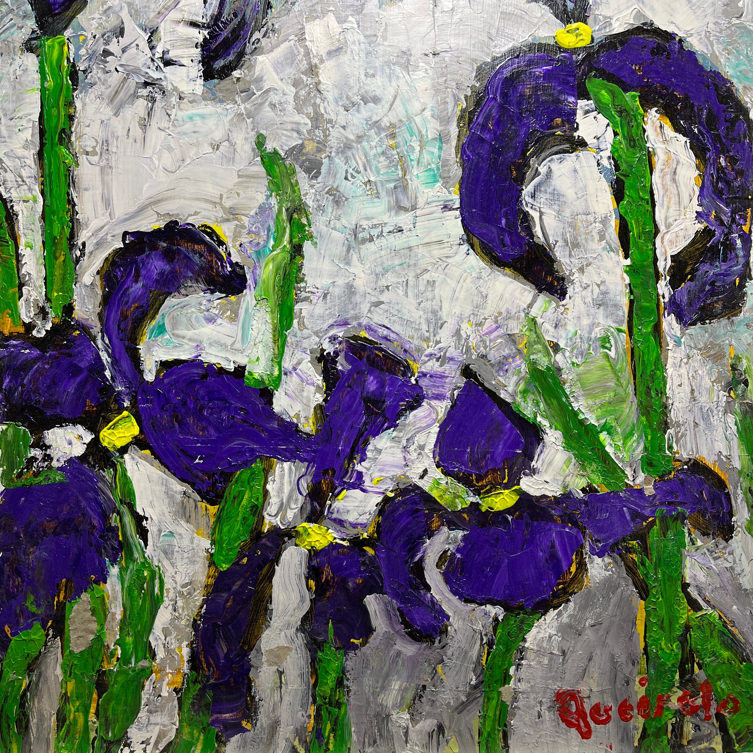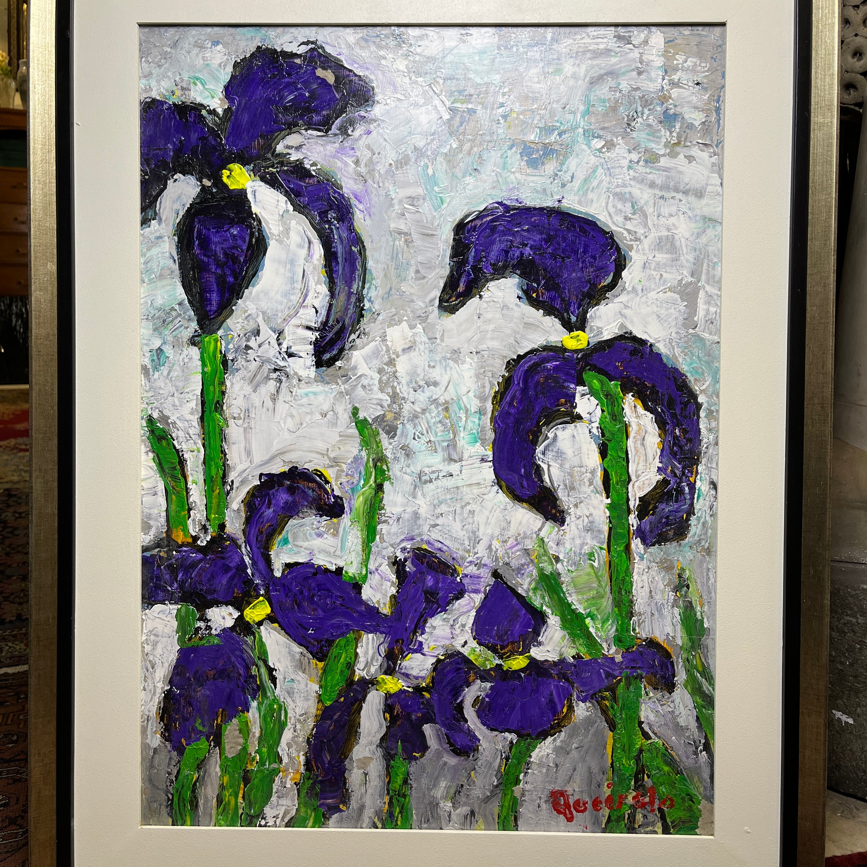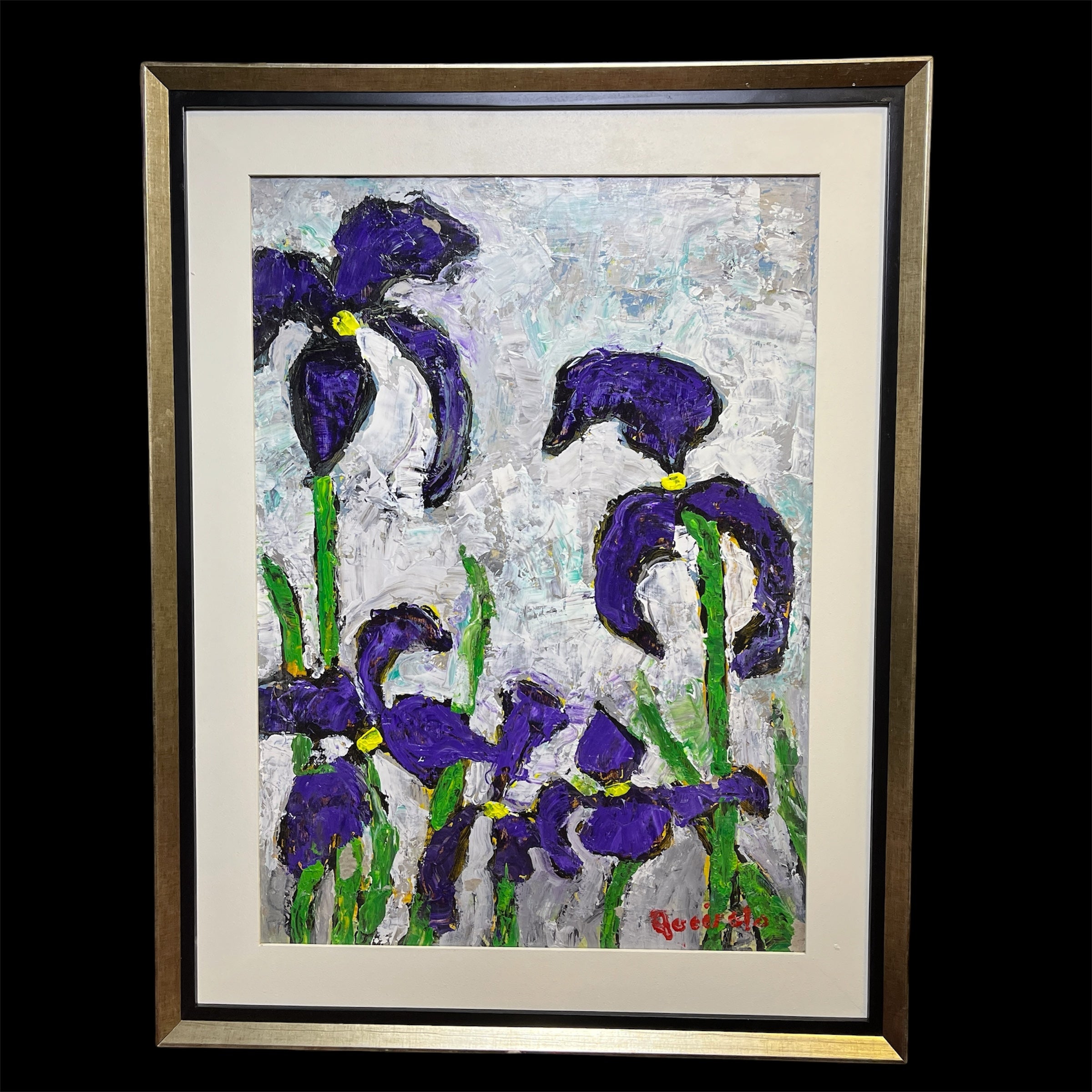 Vittorio Queirolo - Acrílico sobre cartón 'Lirios morados y cielo nublado'