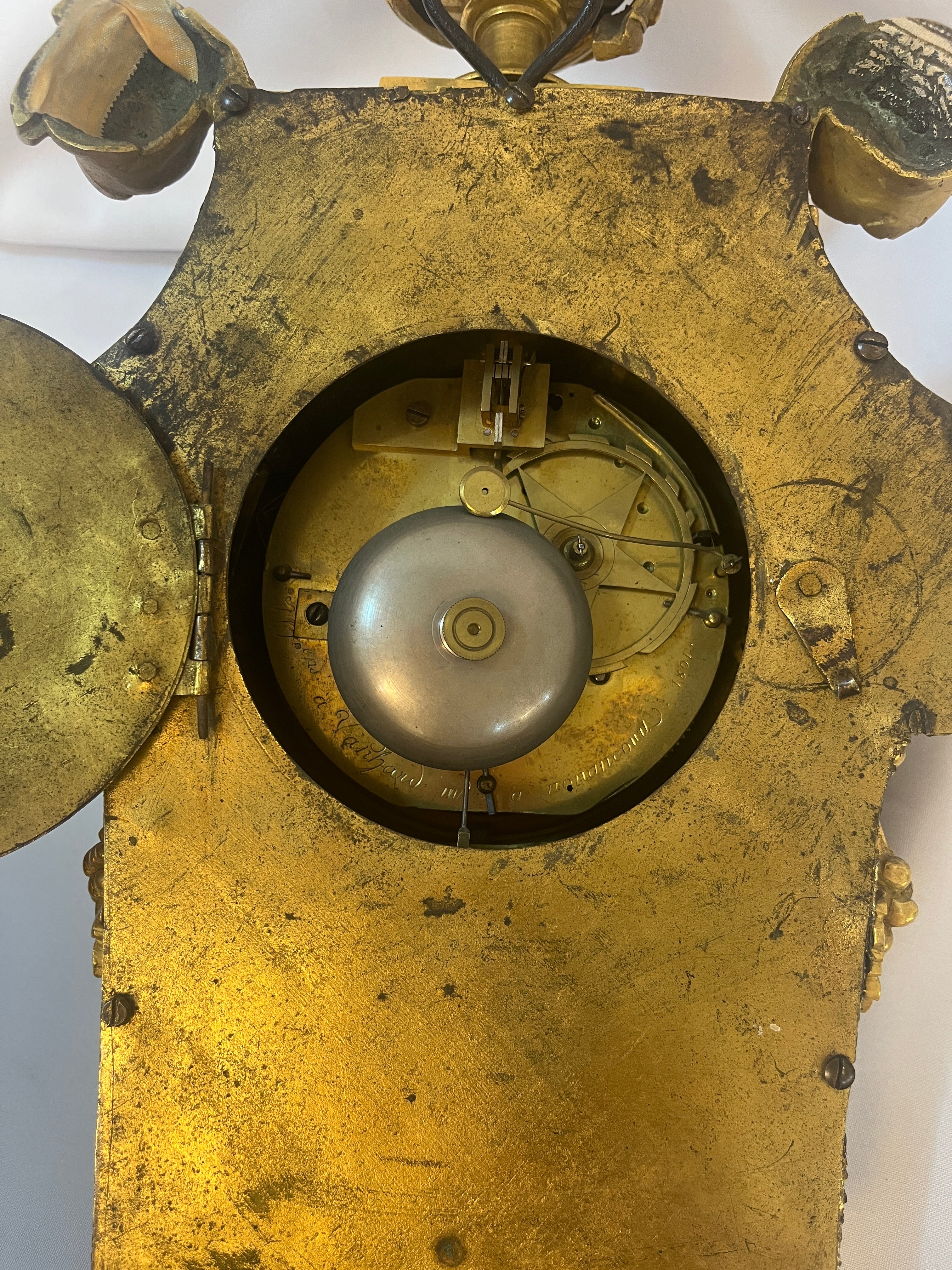 Extraordinario reloj en bronce ormolú cincelado con esfera firmada Causard H. Du Roy y Suin. La Cour. Estilo Luis XVI.