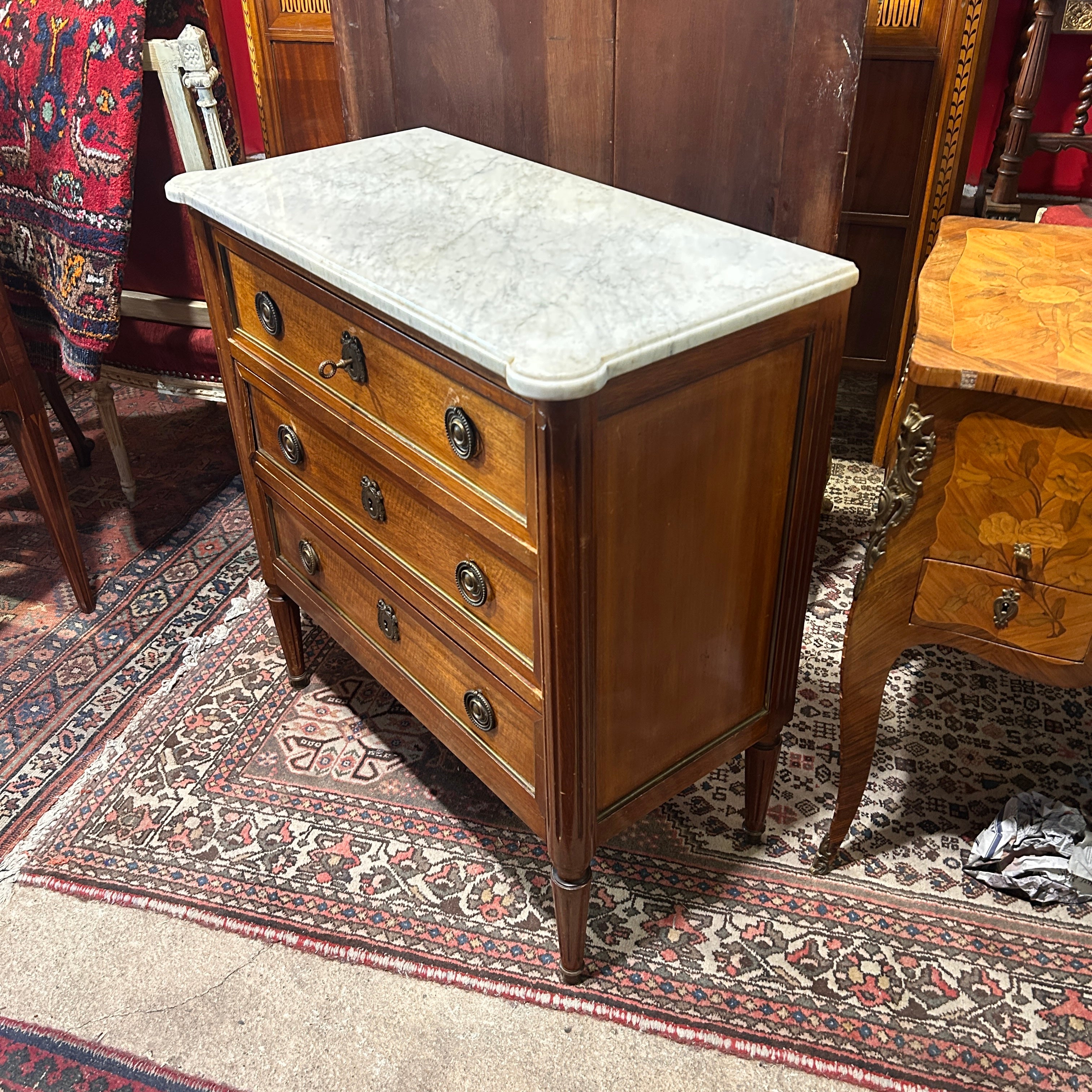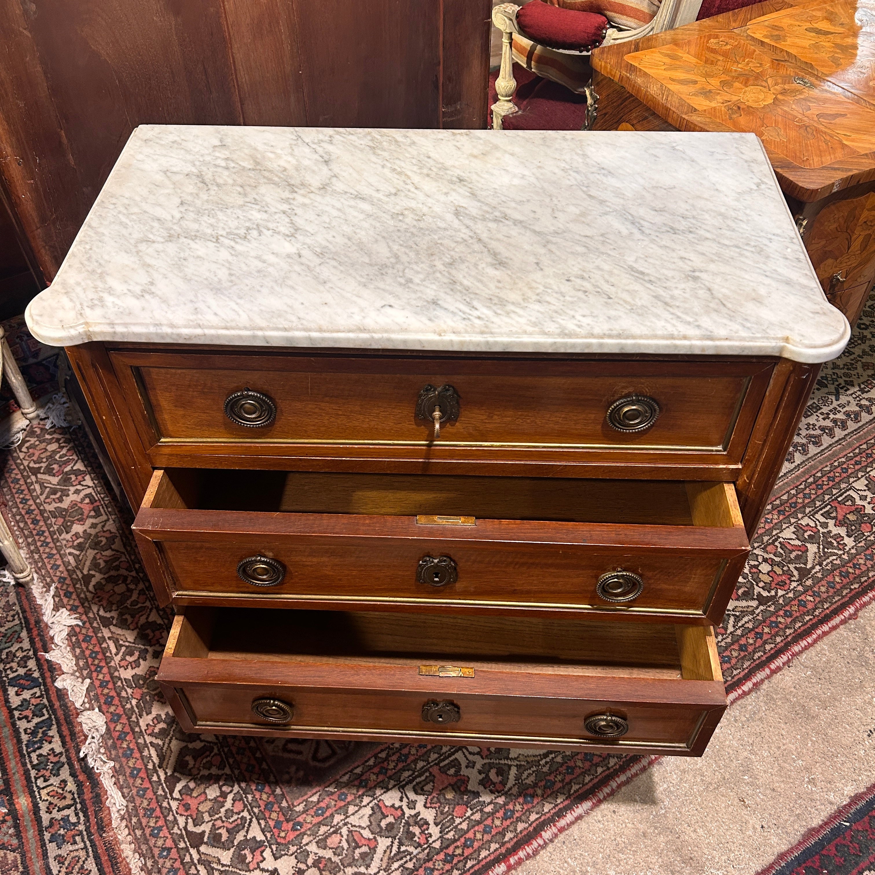 Cómoda francesa normando en caoba mármol blanco veteado