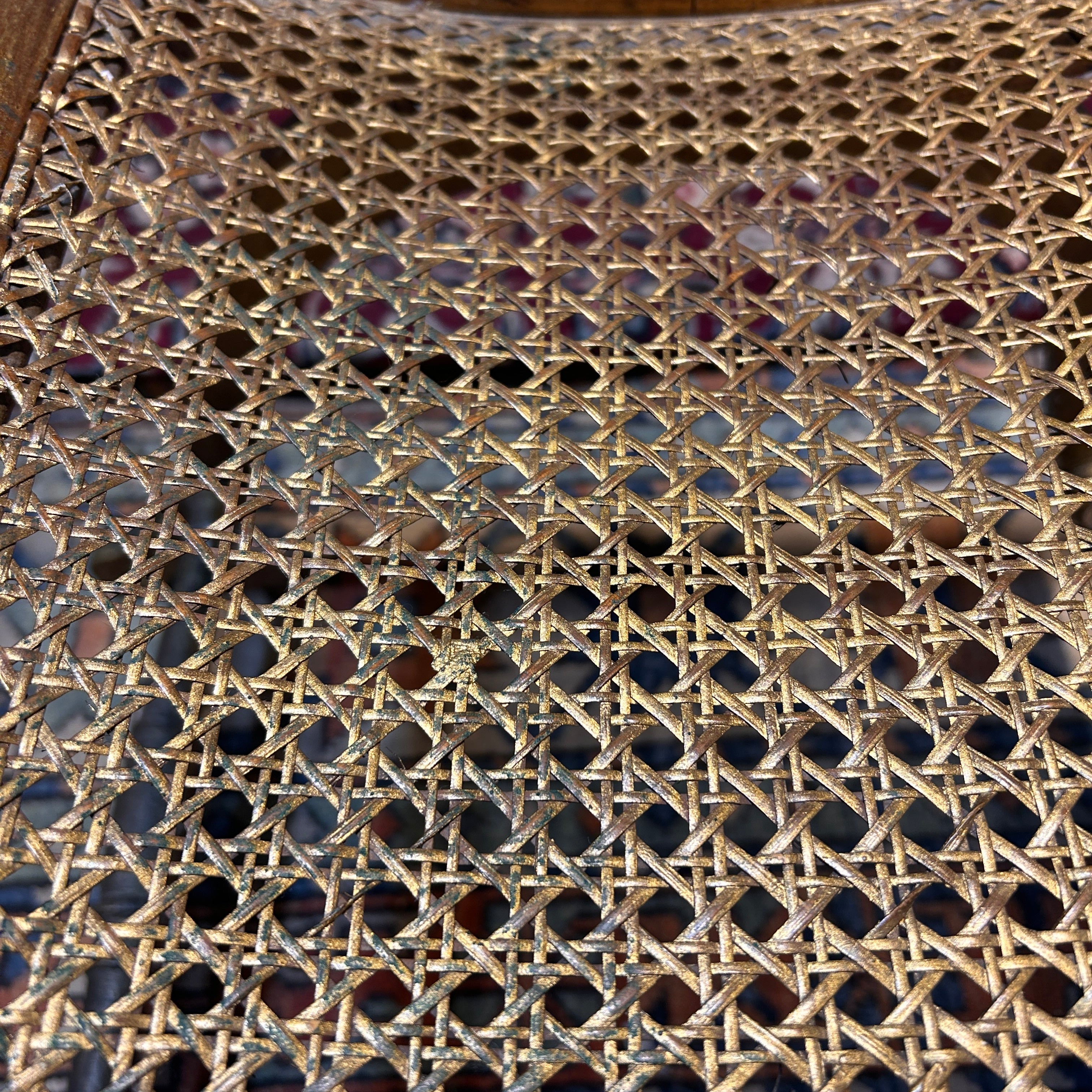 Taburete curul francés Luis XVI madera tallada y canné s.XIX