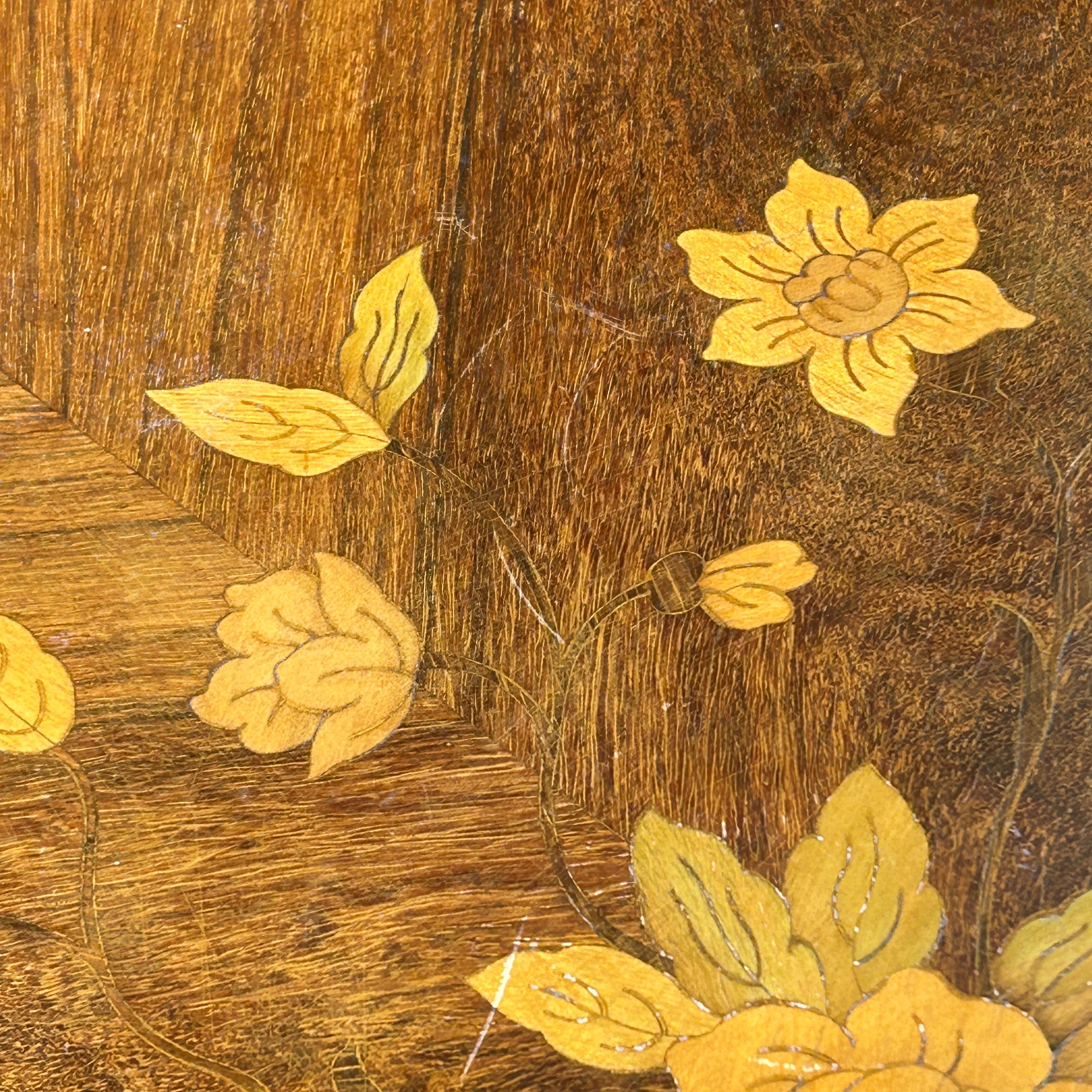 Guéridon Luis XV marquetería floral, bronce y cabriolé