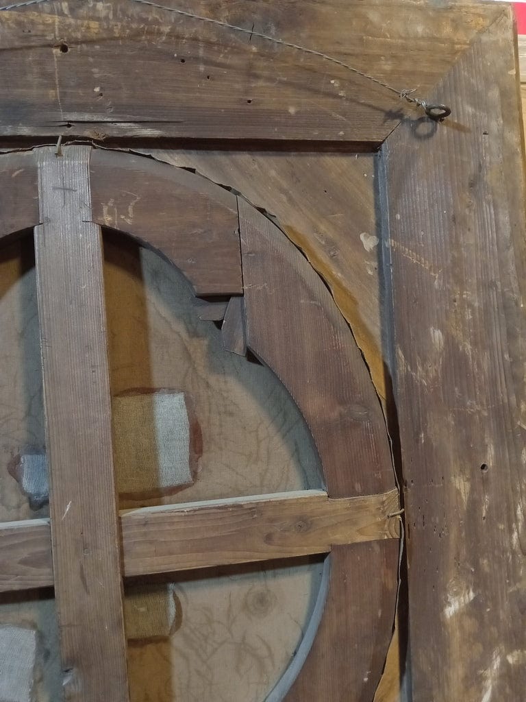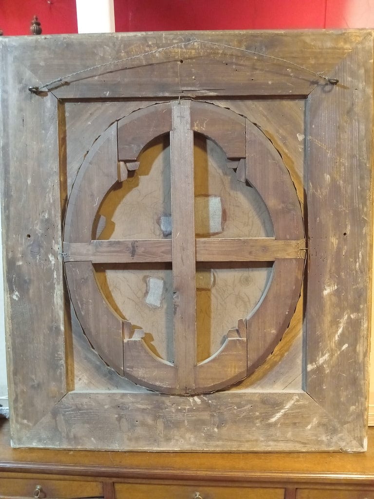 Condición: Muy buen estado, tiene 3 antiguas restauraciones de pequeños piquetes, marco con leves accidentes propios de su antigüedad.
