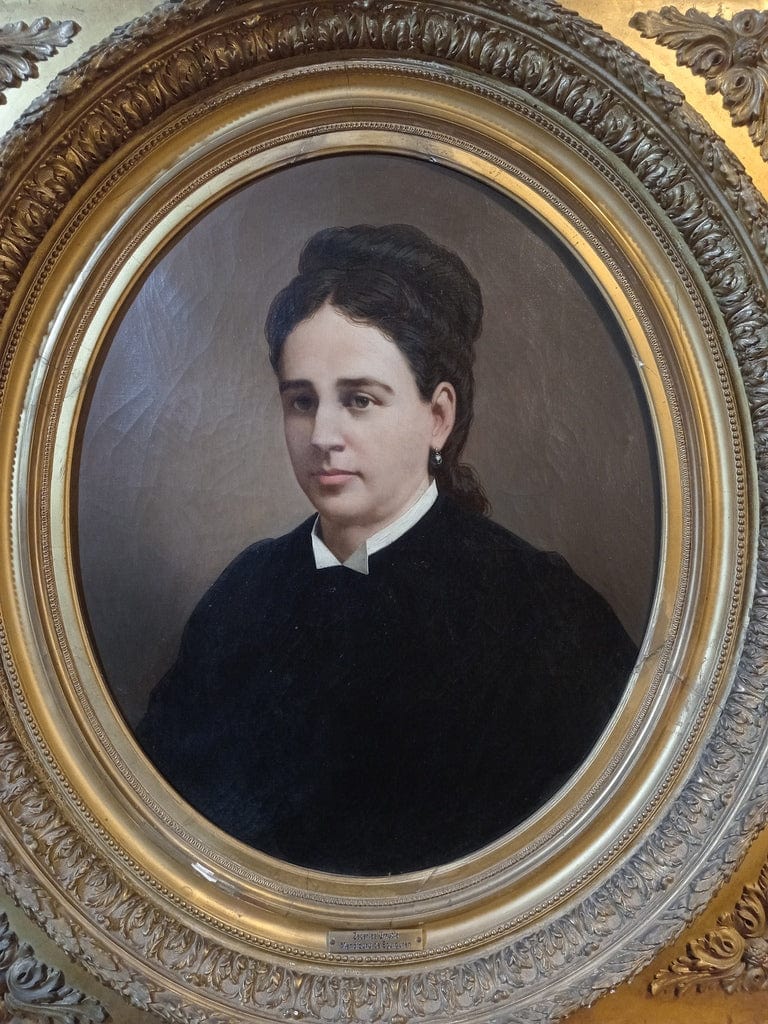 Imponente retrato de doña Zacarias Urrutia Mendiburu de Eguiguren. Escuela francesa circa 1820.