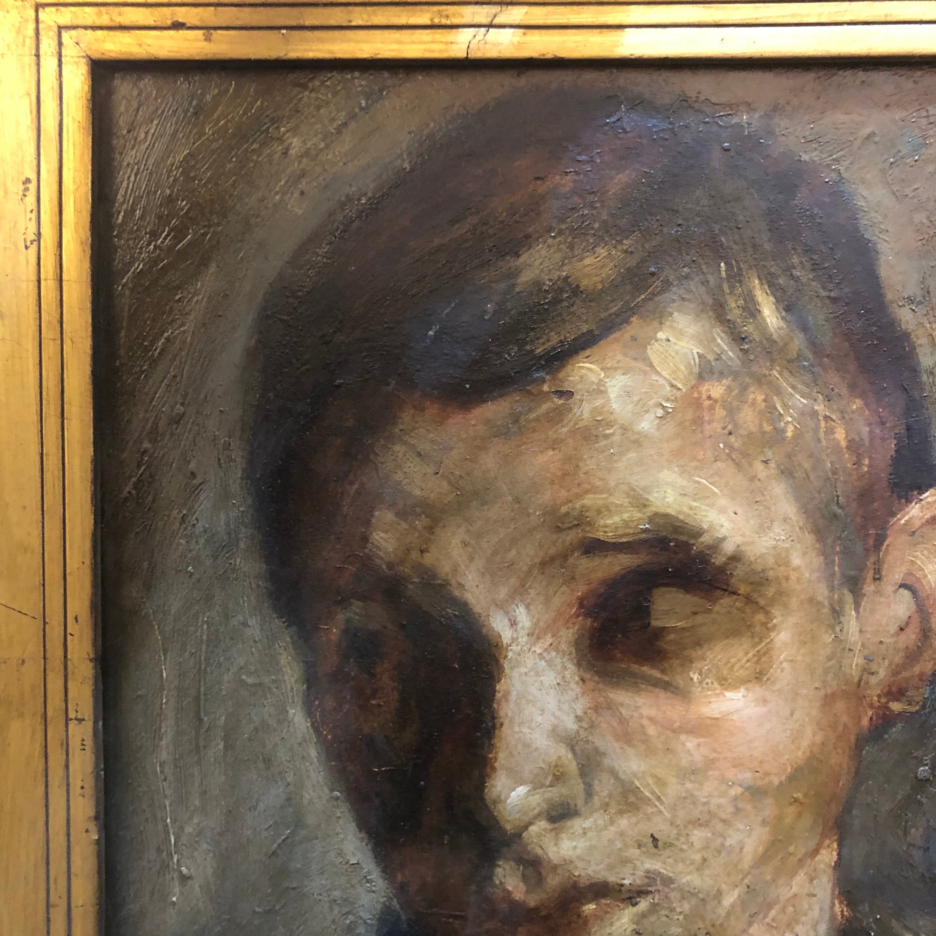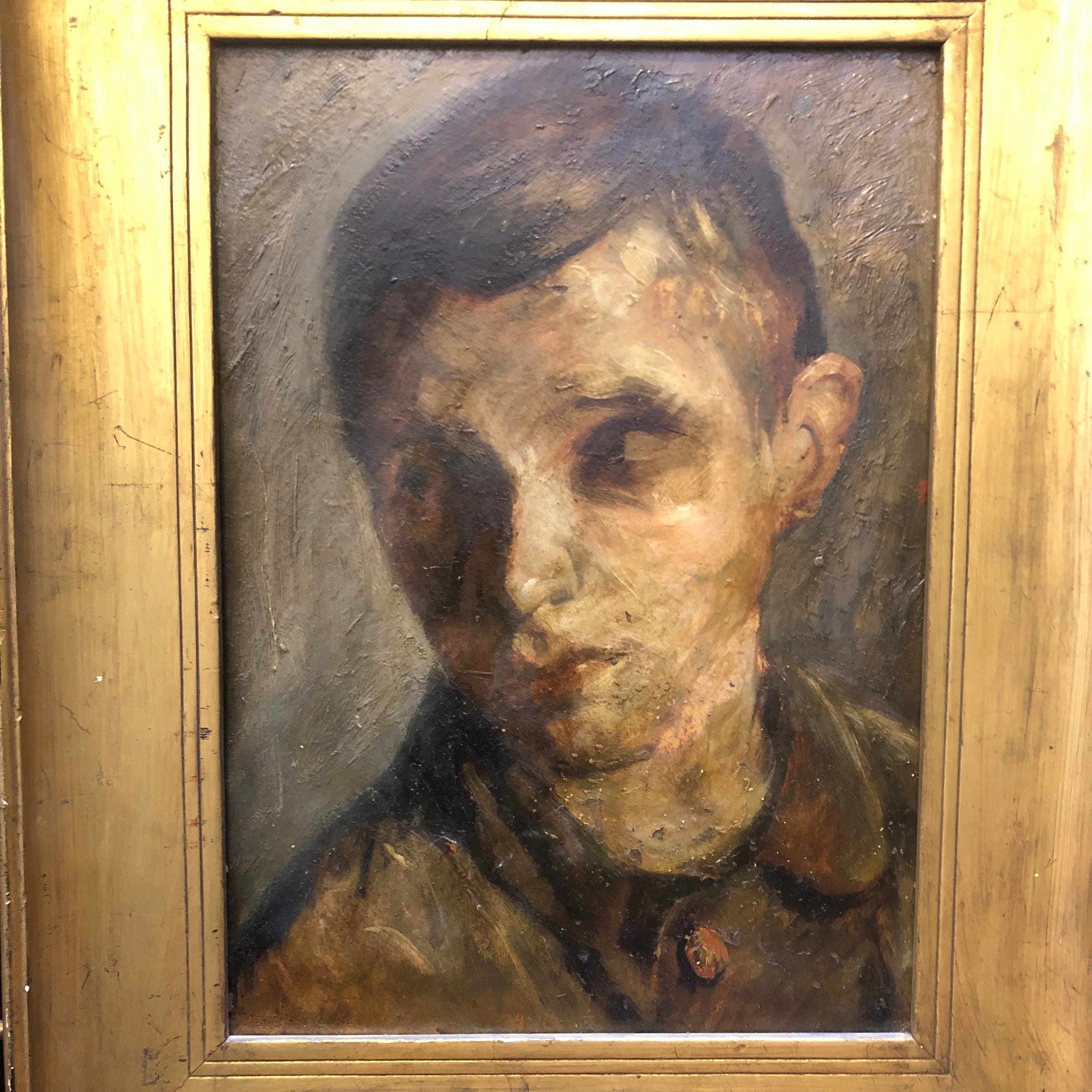 Probable autorretrato del pintor, escultor y gestor chileno Julio Ortiz de Zárate. Perteneciente a las vanguardias de la década de 1930, pintura clásica expresionista.