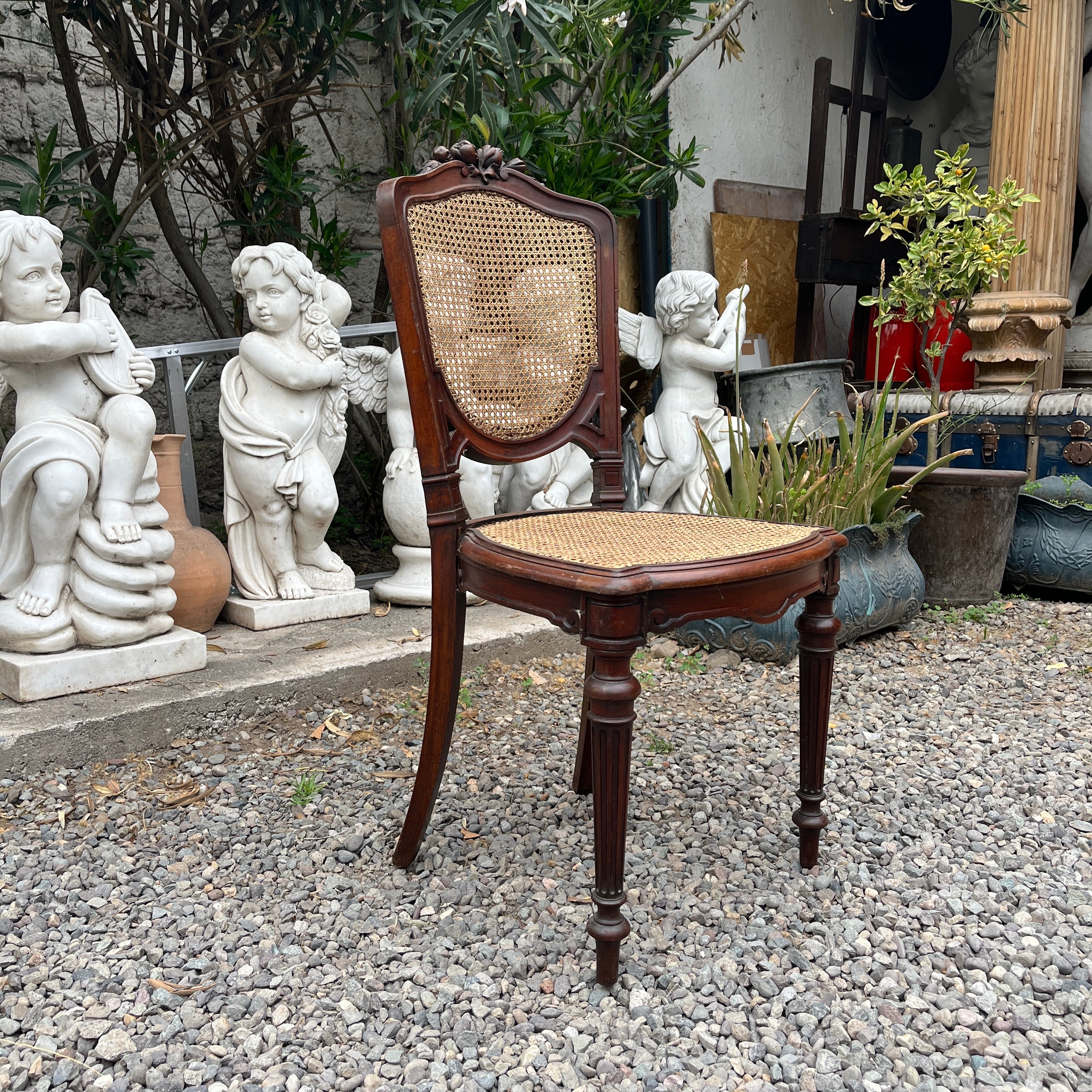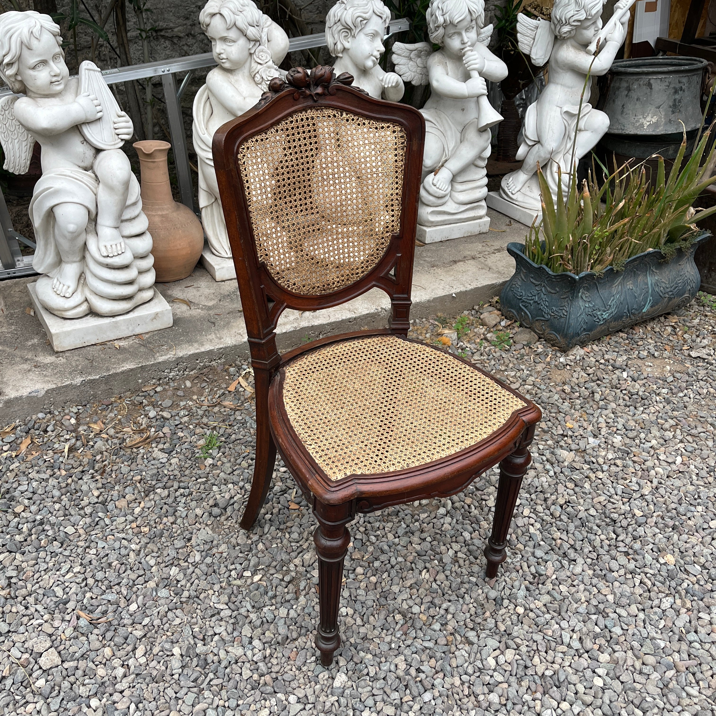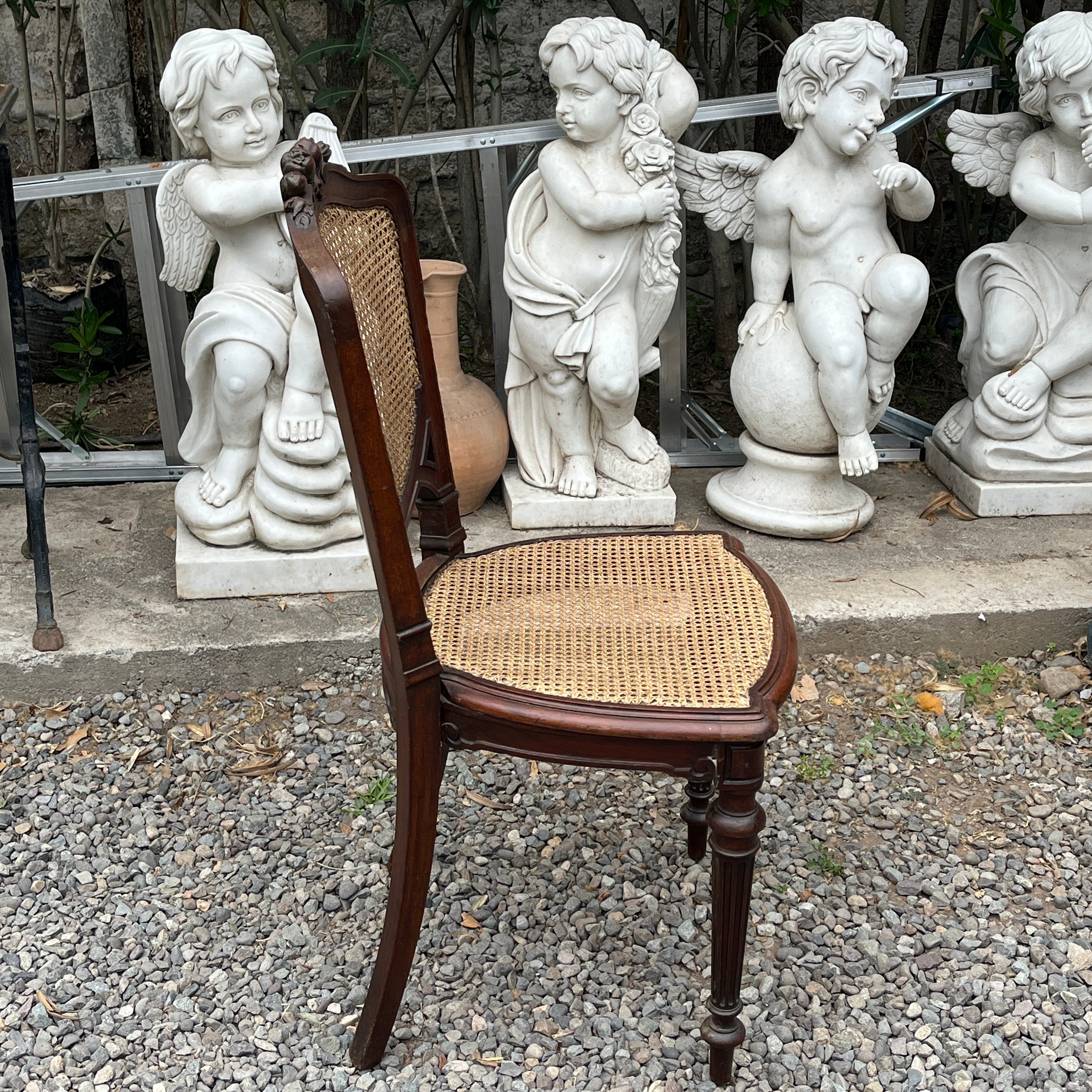 Juego de 10 sillas francesas Louise Philippe caoba tallada y junco