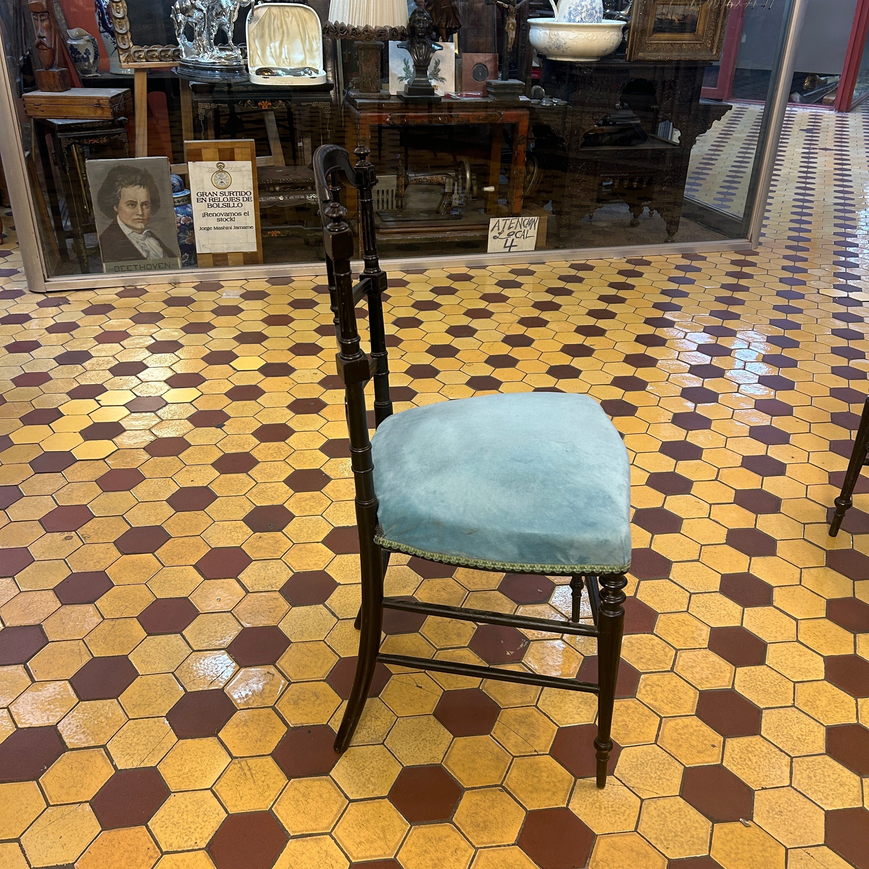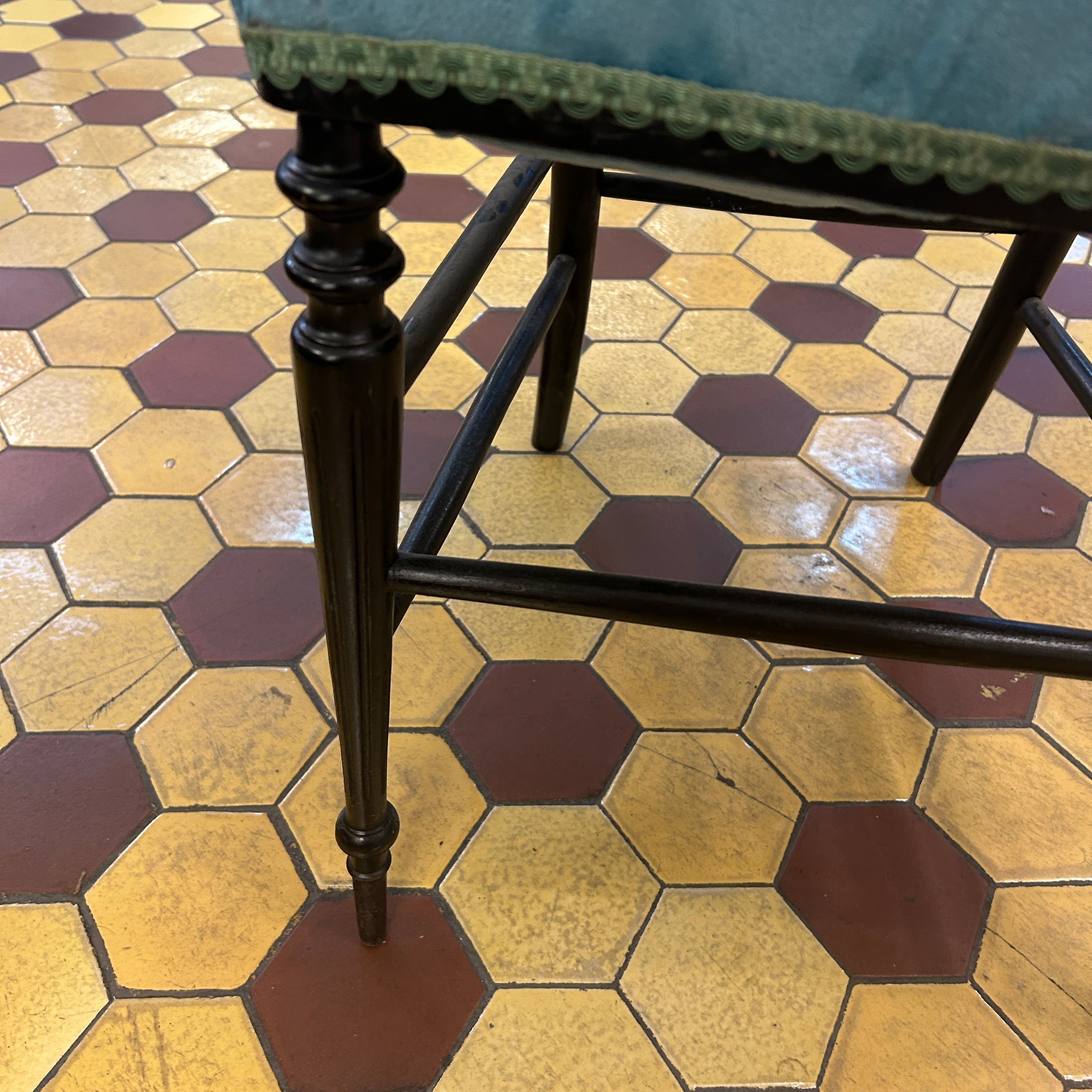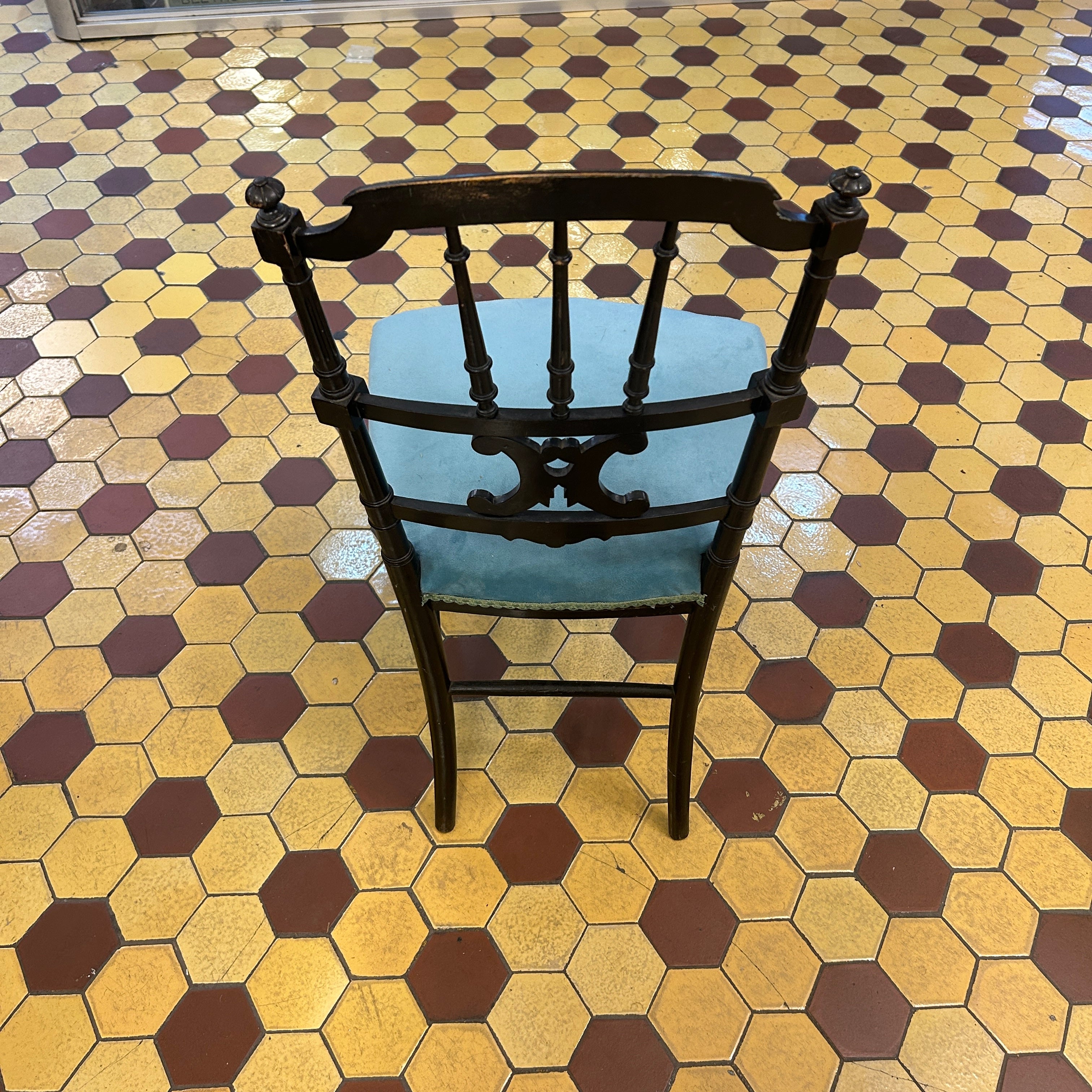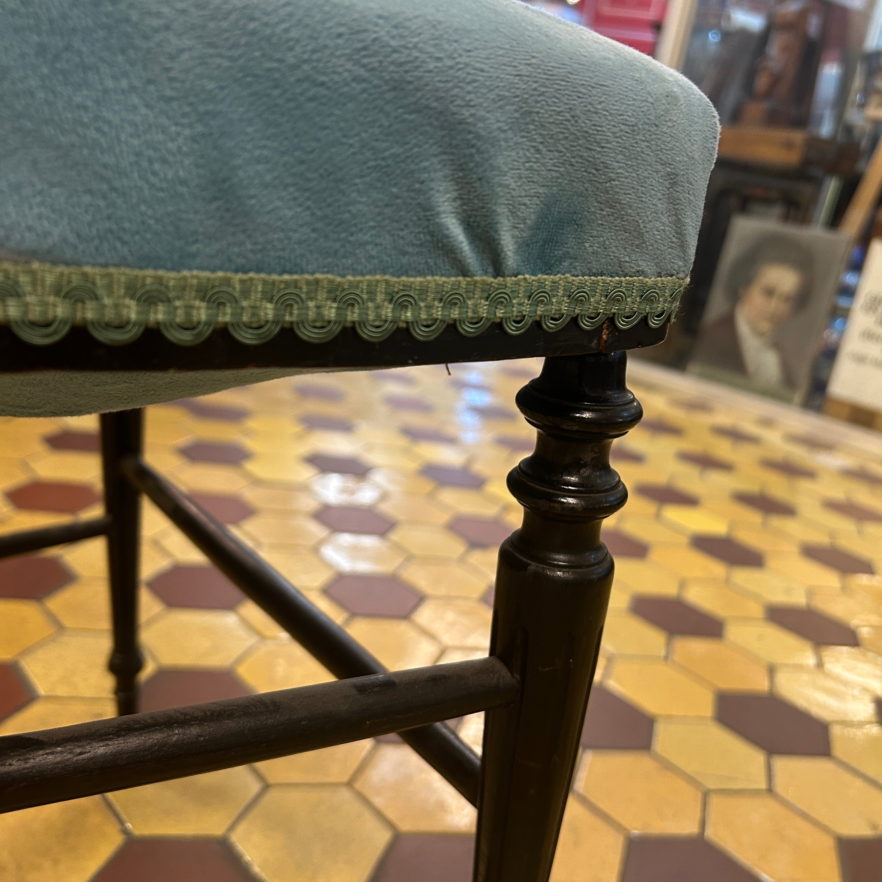 Pareja de sillas francesas Napoleon III lacadas tapiz terciopelo turquesa