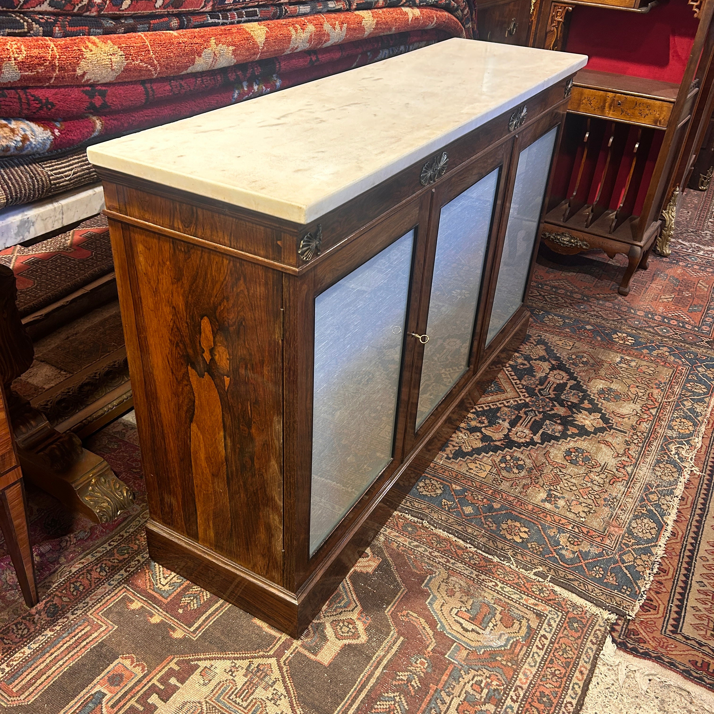 Biblioteca buffet francés estilo Imperio 1900 palisandro y cubierta de mármol blanca
