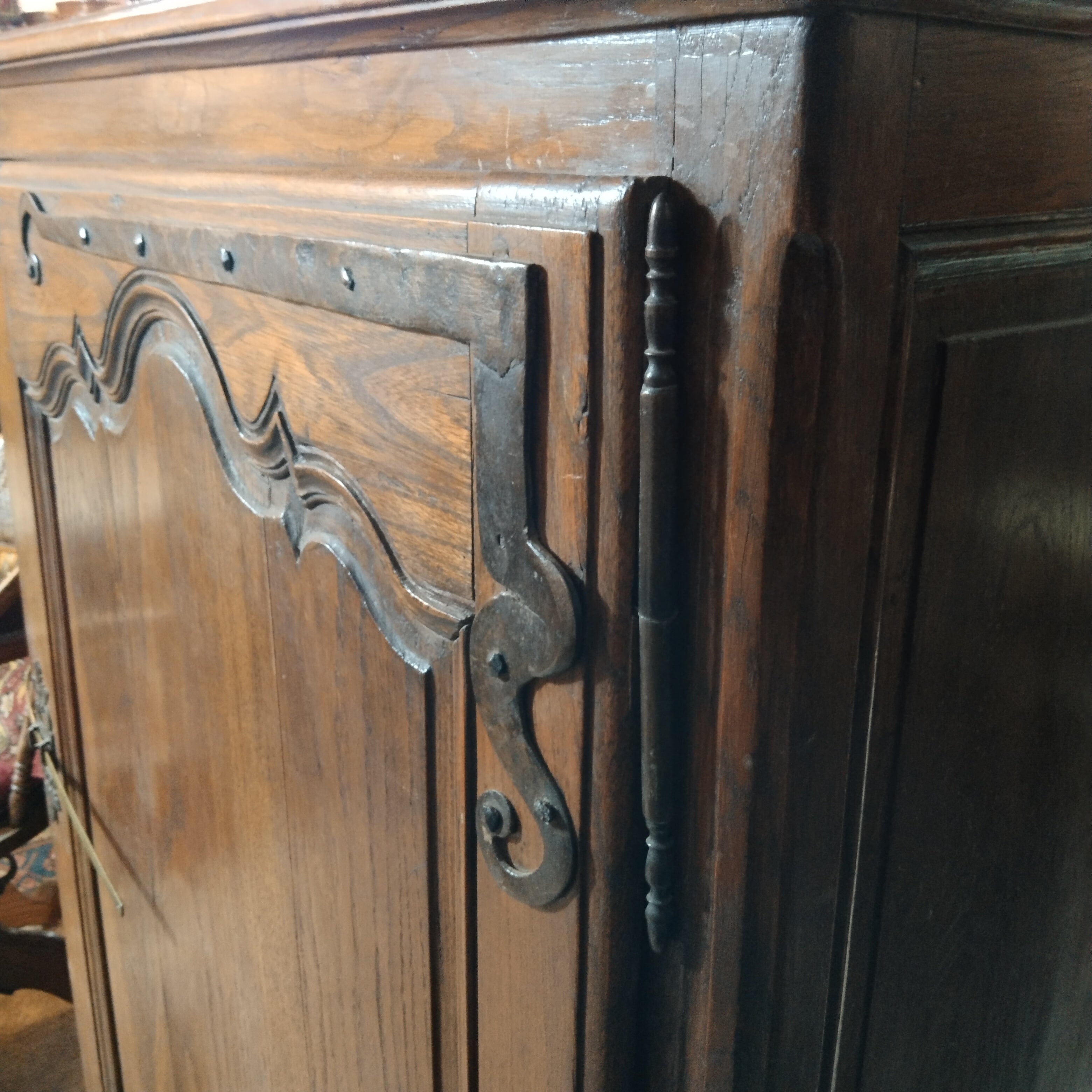 Gran alacena mermeladera francesa de roble, antigua. Cuenta con sus herrajes originales. Estilo campestre francés. Se entrega rebarnizada y con cubiertas interiores.