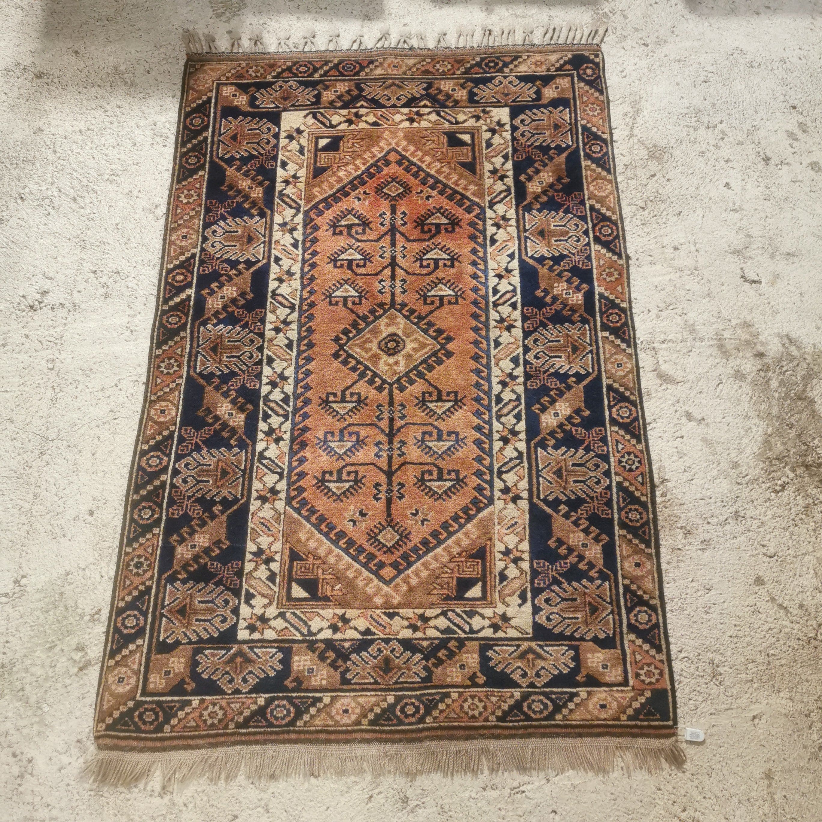 Preciosa Alfombra Turca Dosemealti hecha completamente de lana. Estas alfombras son conocidas por ser de lana anudadas a mano por las tribu seminómadas Yoruk. Se caracterizan por sus figuras geométricas y símbolos propios de estas tribus.