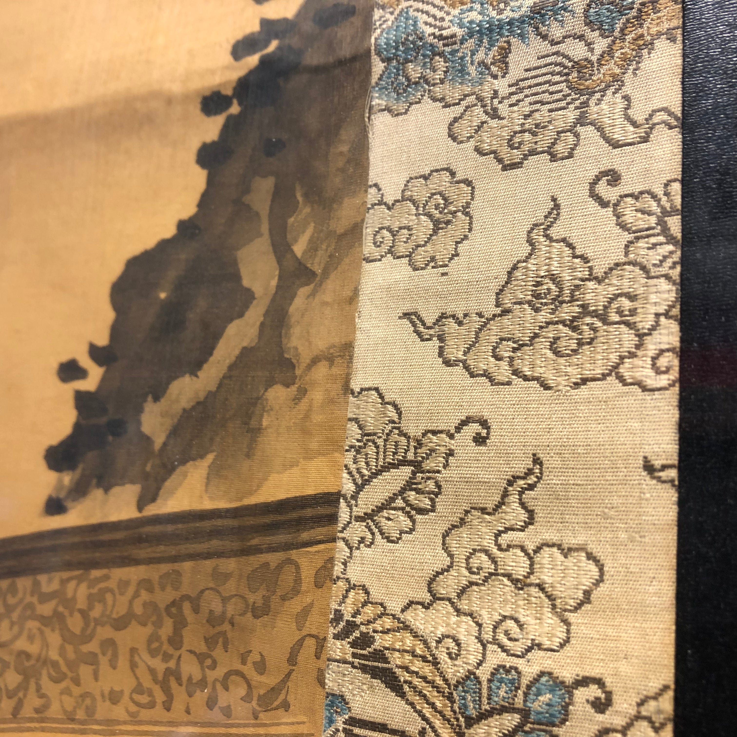 Pintura japonesa sobre papel de arroz. Paspartú de género de seda.