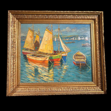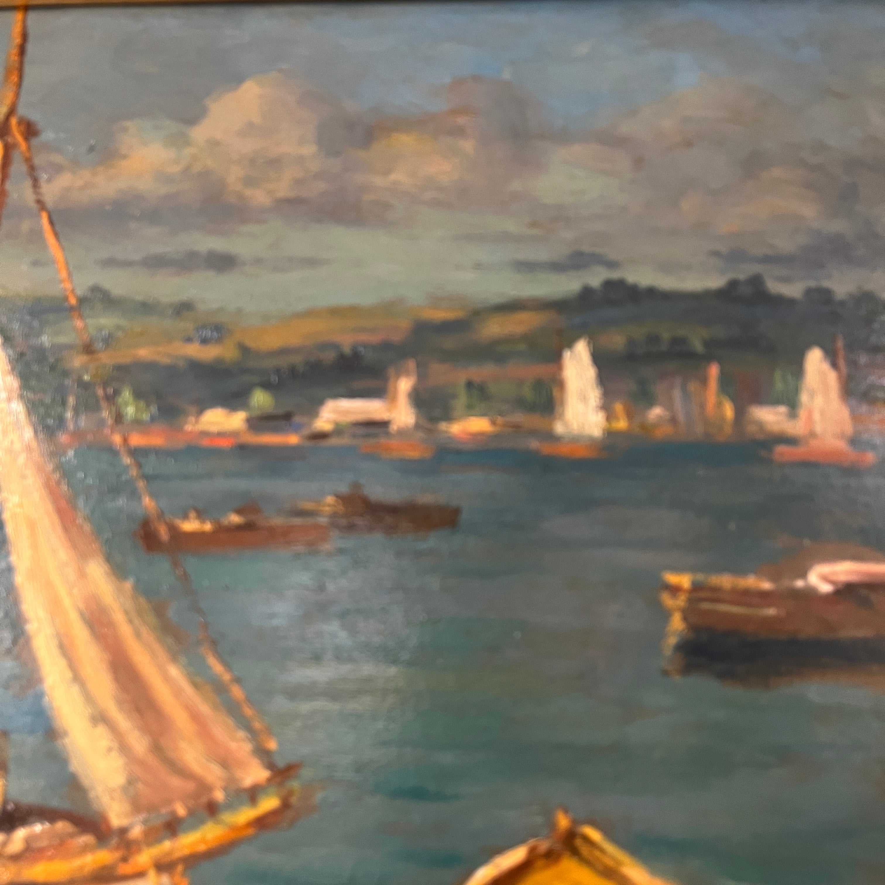 Arturo Pacheco Altamirano - Óleo sobre madera 'Veleros fondeados'
