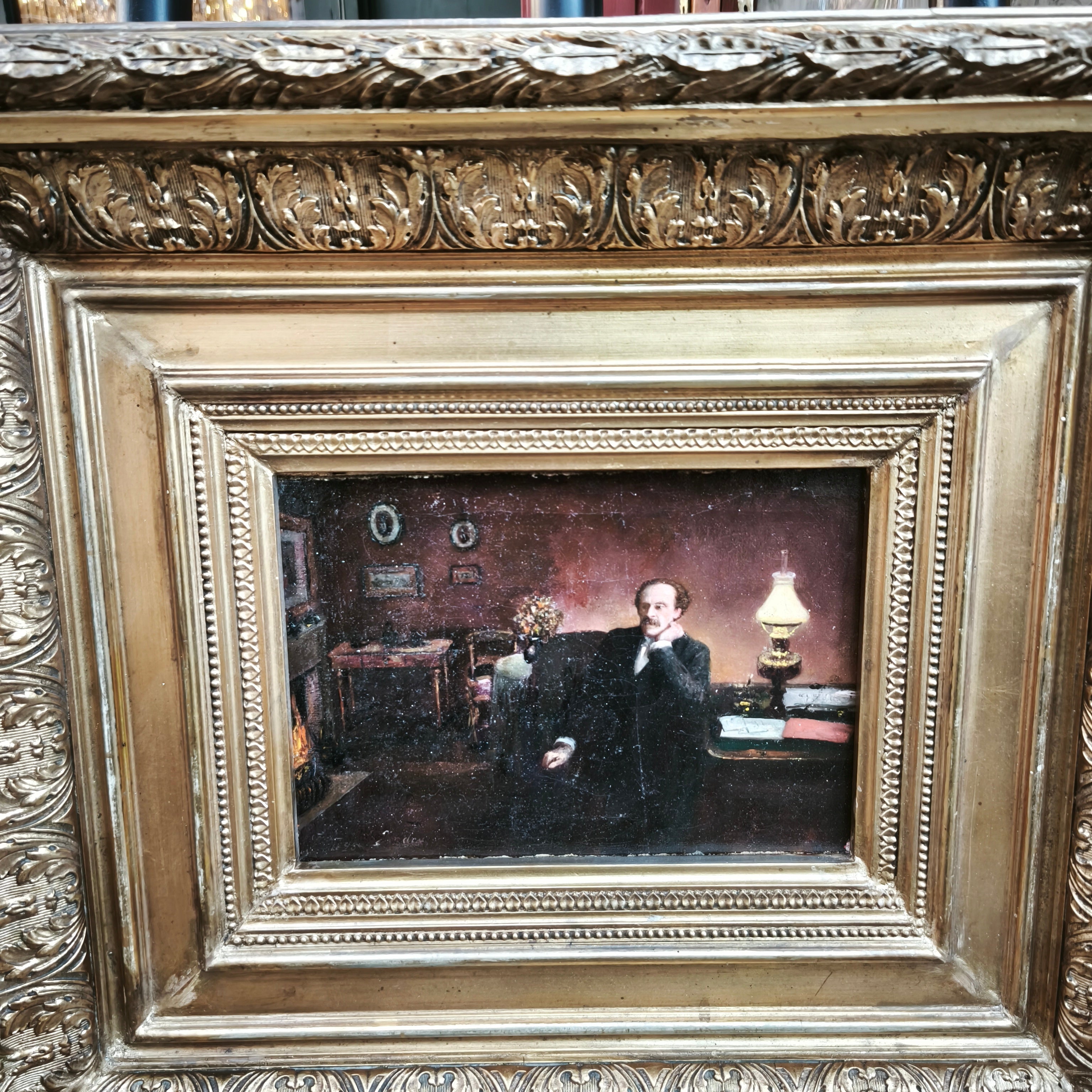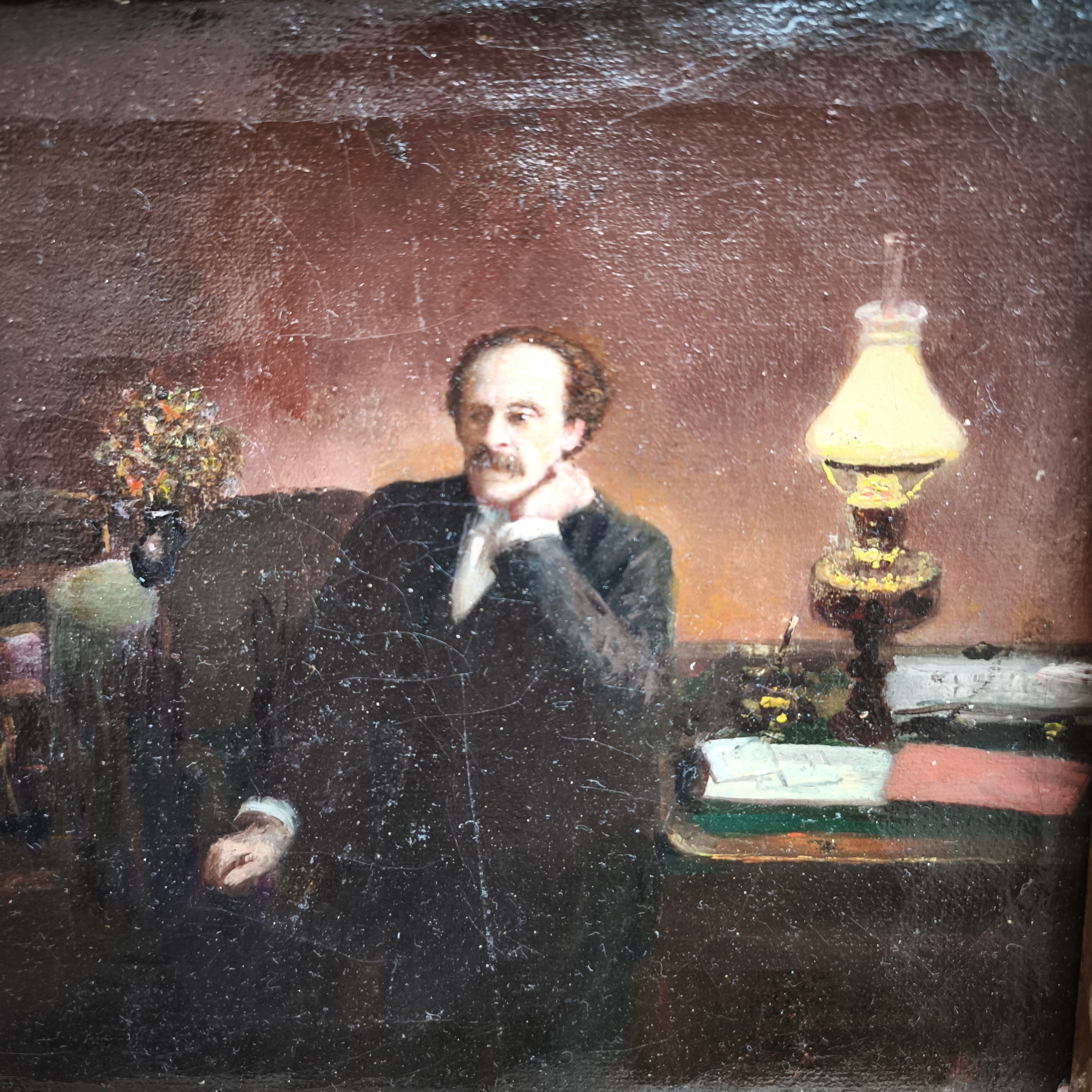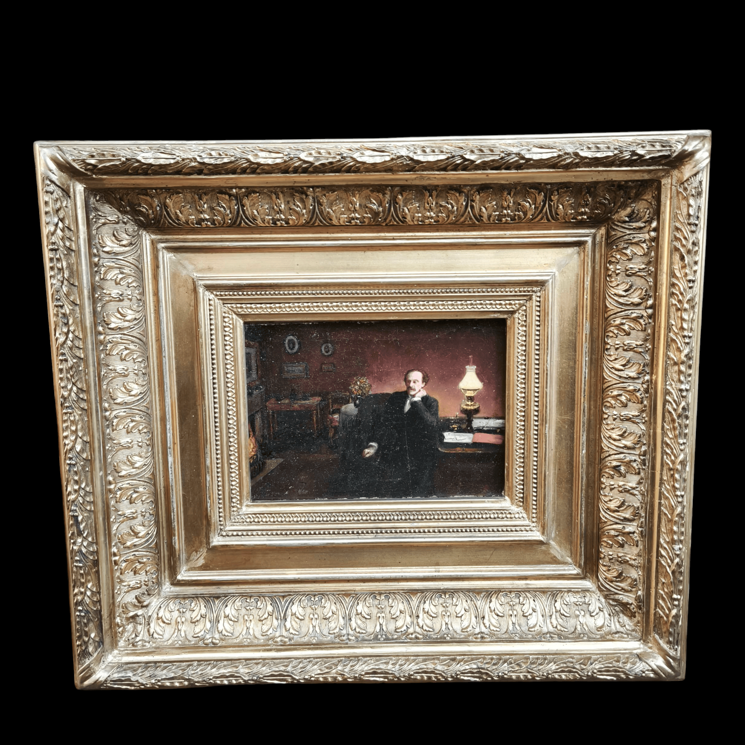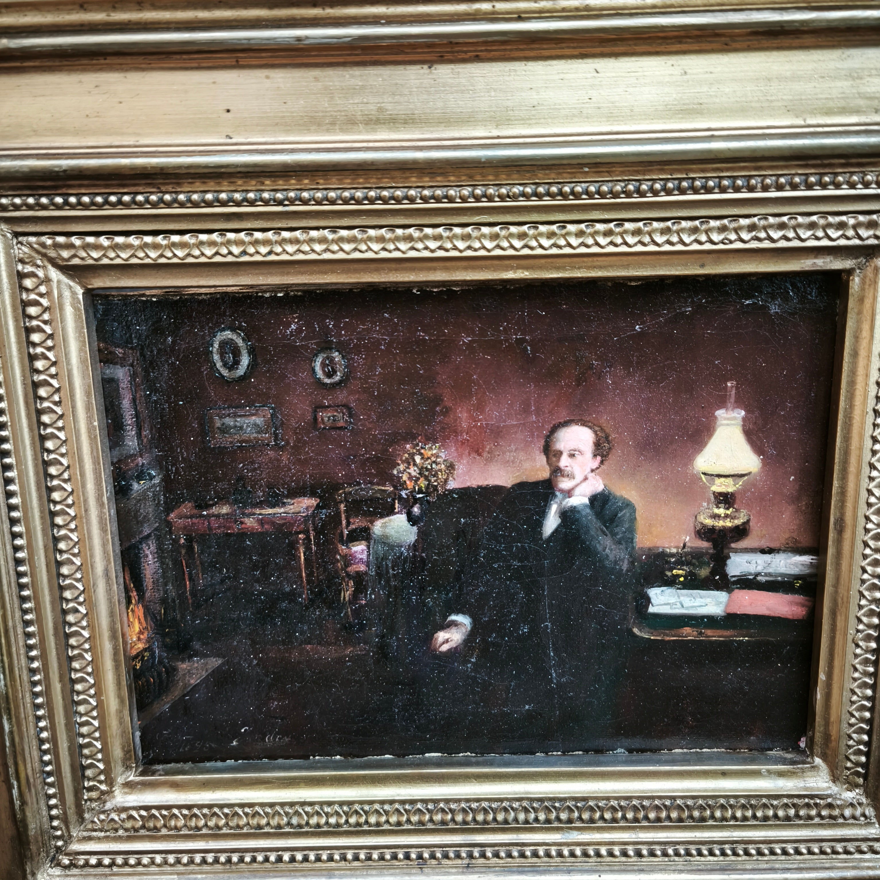 Óleo sobre tela del artista chileno Félix Jordán, representando al ex-presidente José Manuel Balmaceda sentado en su depacho, iluminado tenuemente por una lámpara situada en su escritorio y el fuego de una chimenea. Balmaceda es retratado en un gesto relajado e introspectivo, tal vez mostrando sus últimas horas en la Embajada Argentina en Santiago. La obra tiene un precioso marco de madera tallada en relieves y pintado de dorado, que le da a la obra, de pequeñas dimensiones, una magnitud y peso dentro del espacio en qué sea colgada.