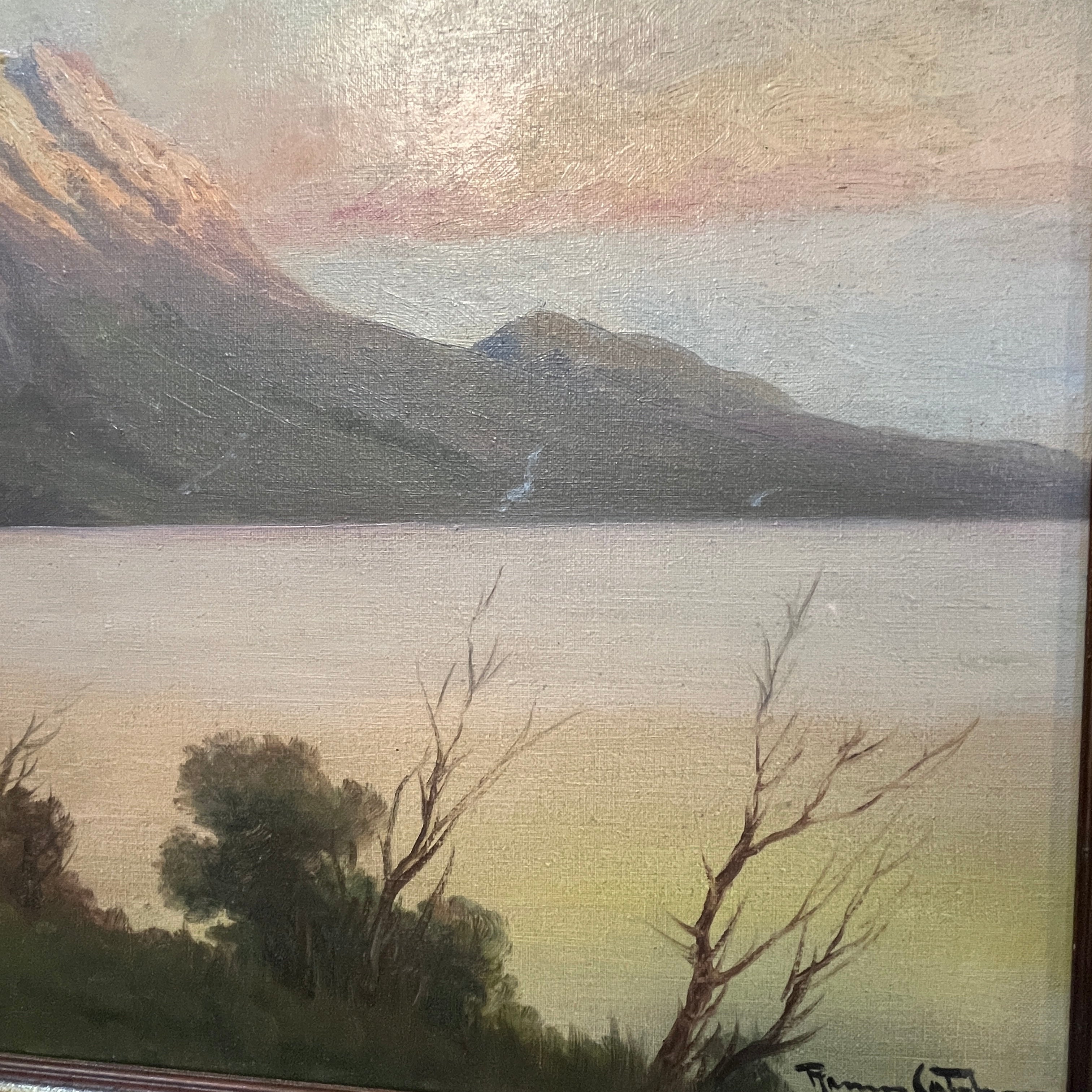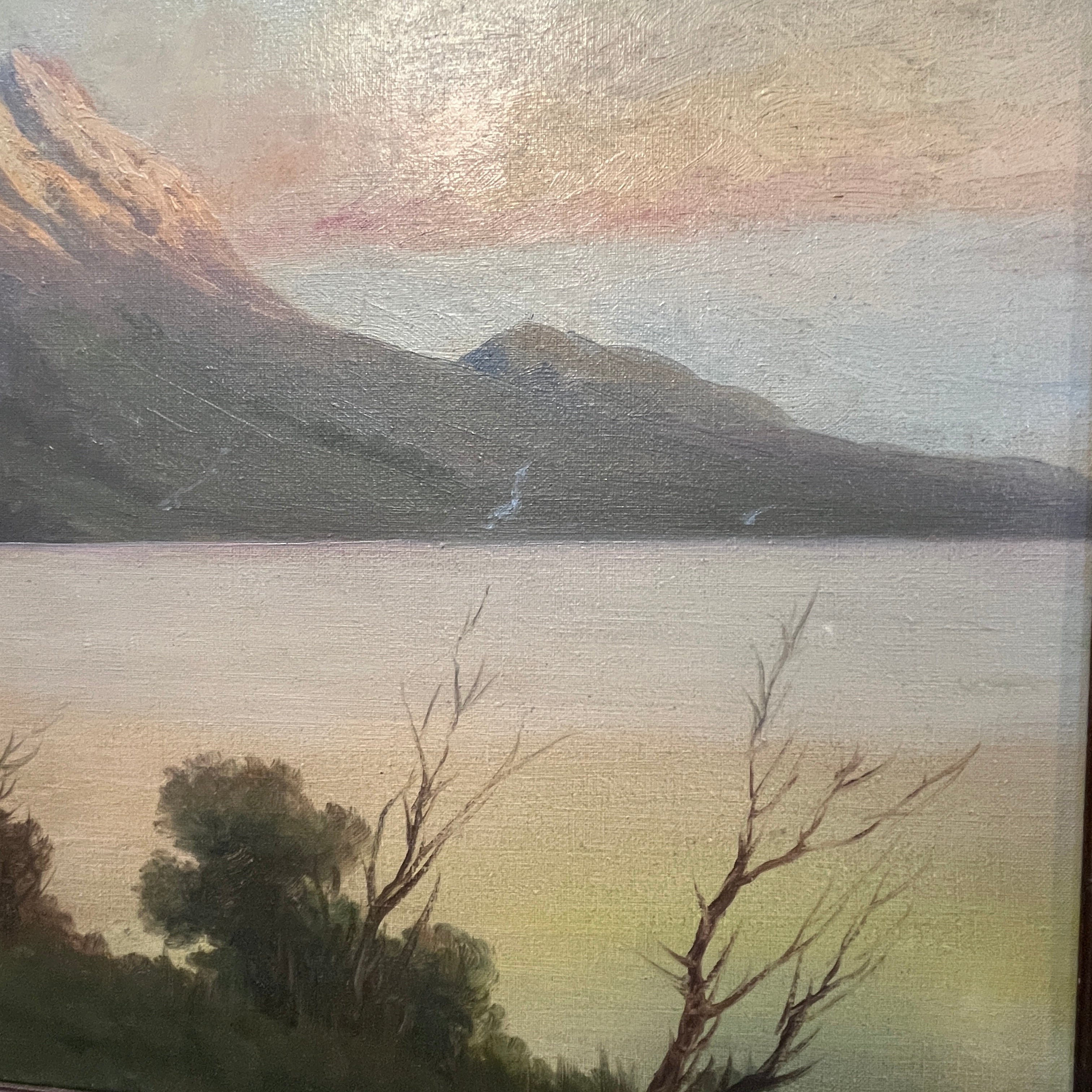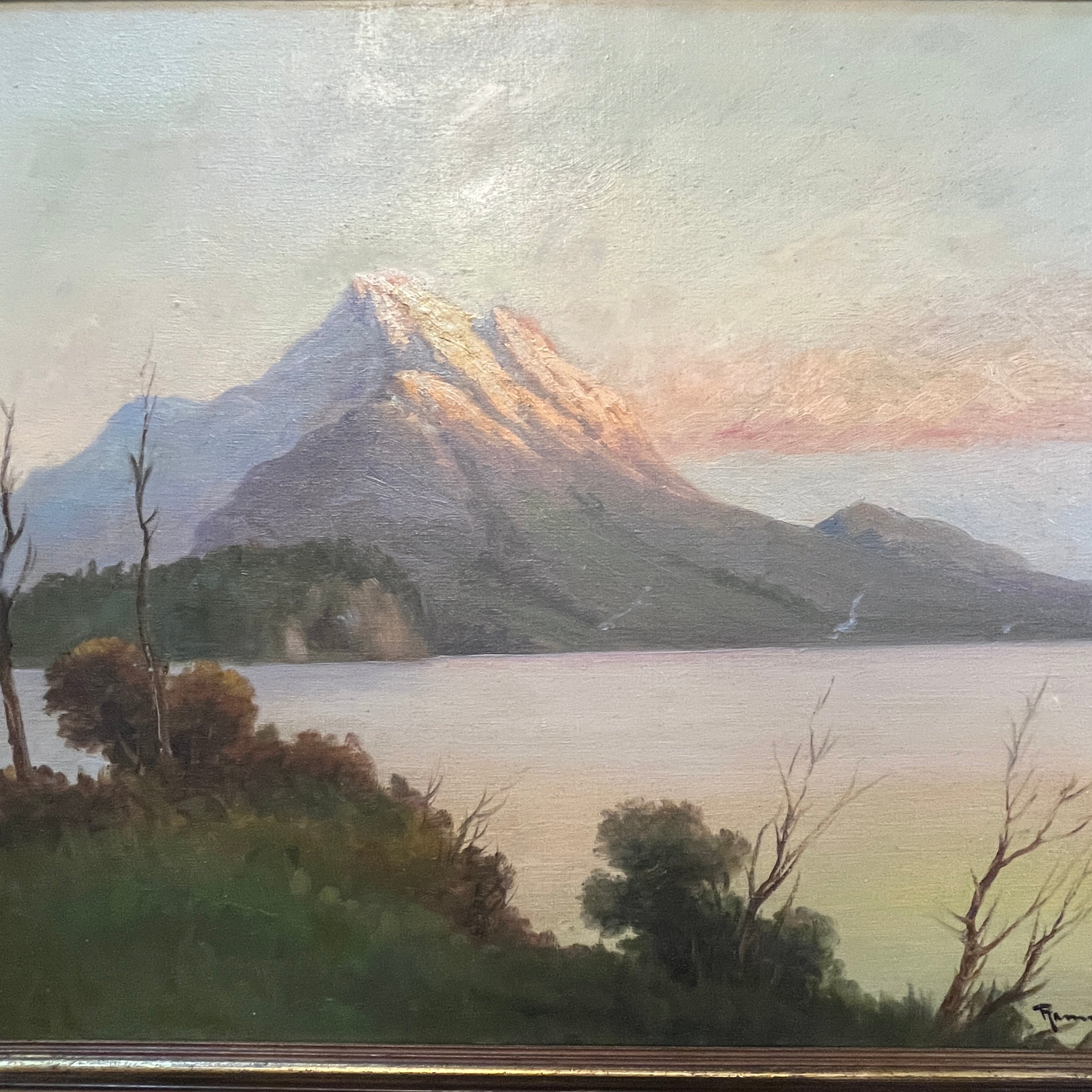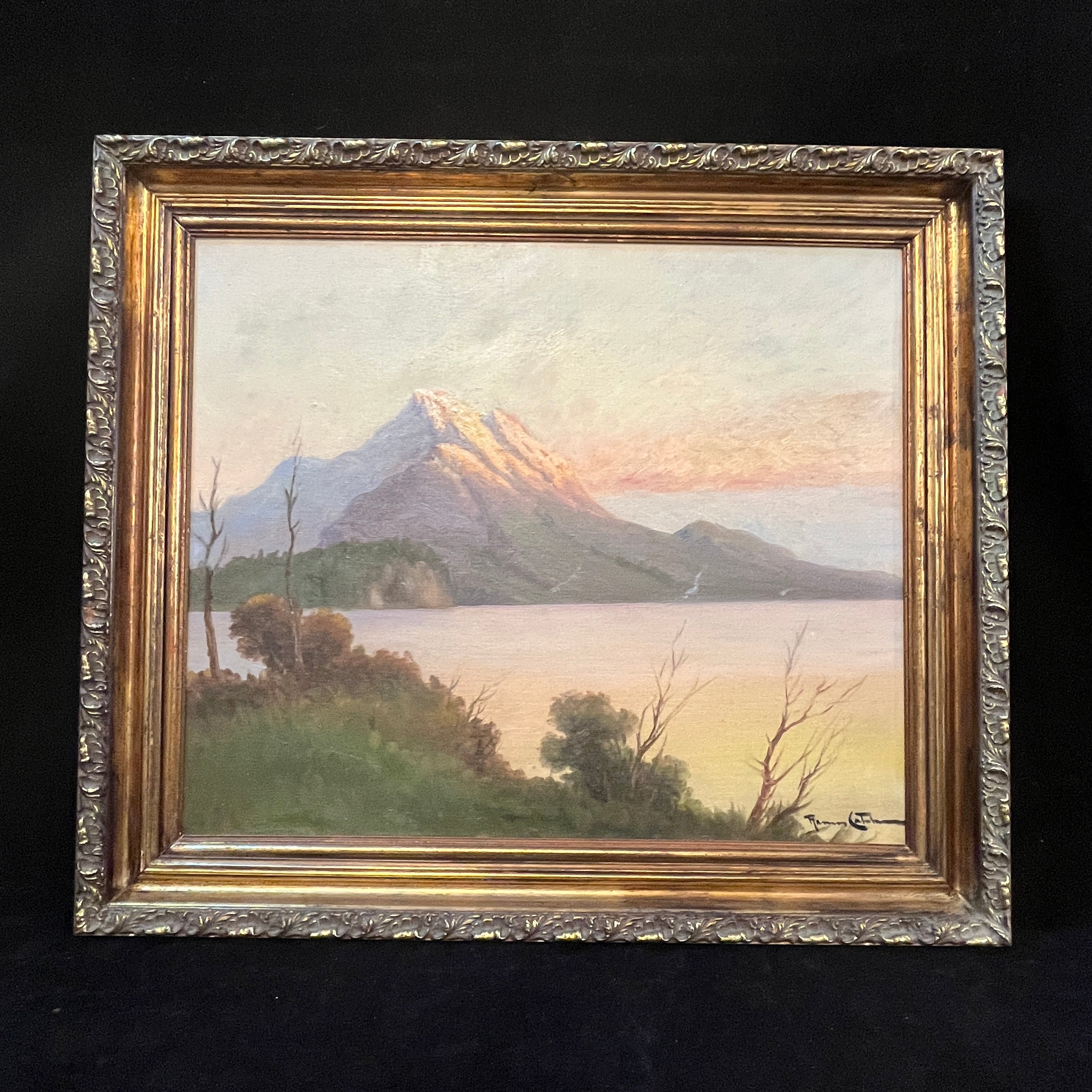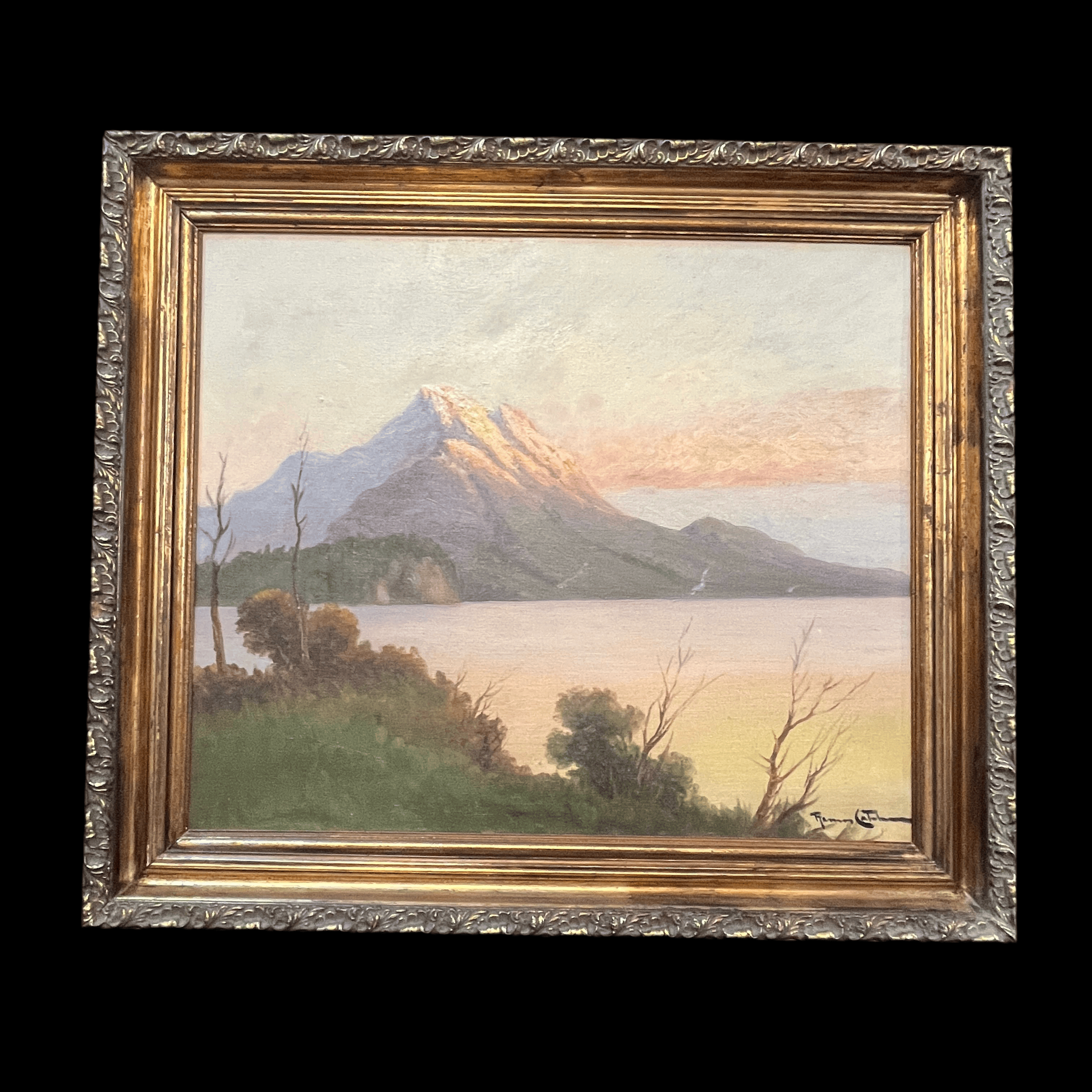 Benito Ramos Catalán - Óleo sobre tela 'Lago a los pies de la montaña'