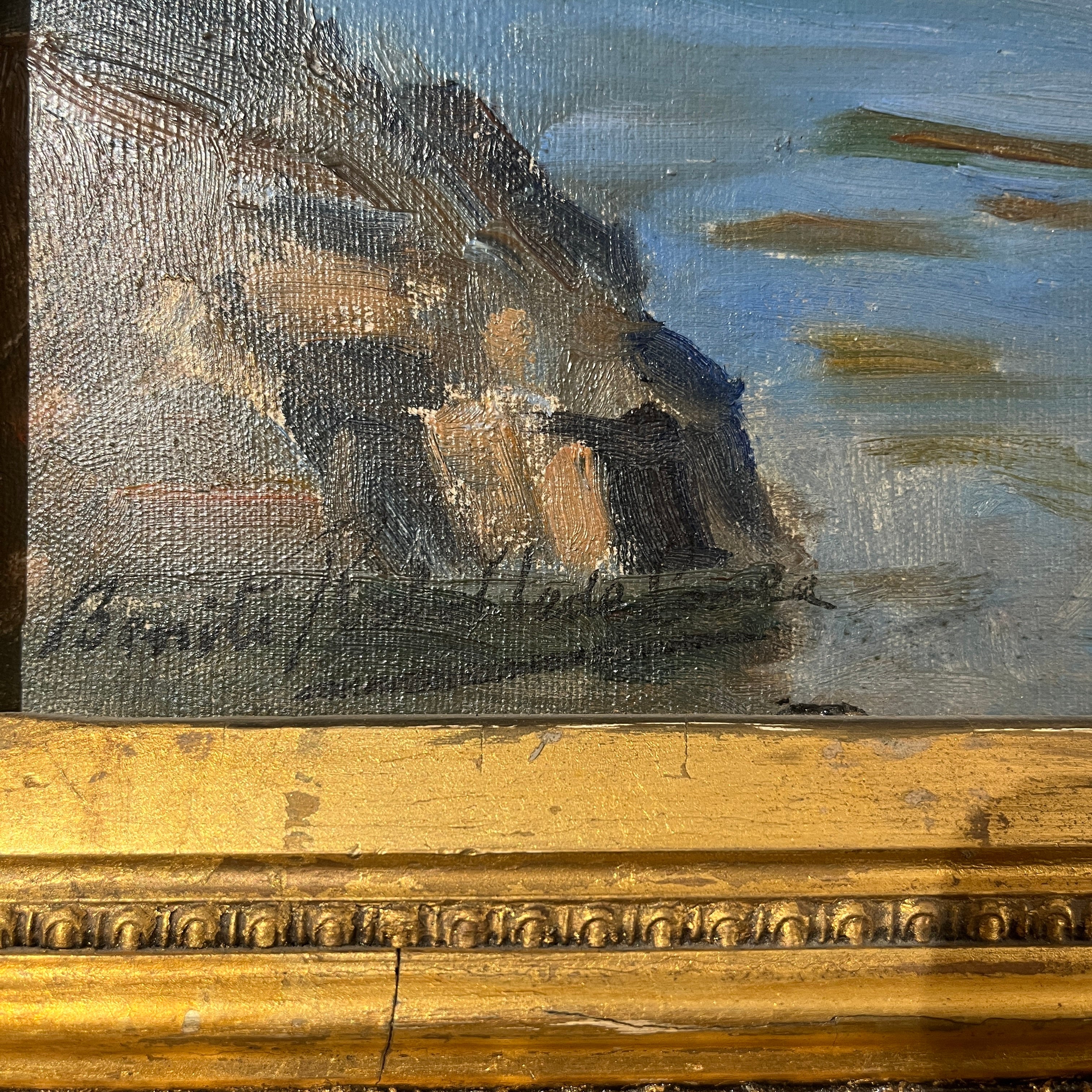 Benito Rebolledo - Óleo sobre tela 'Mujer bañando a sus hijos'