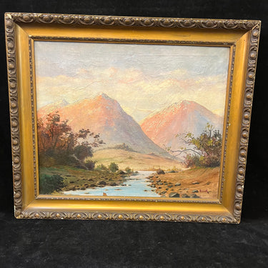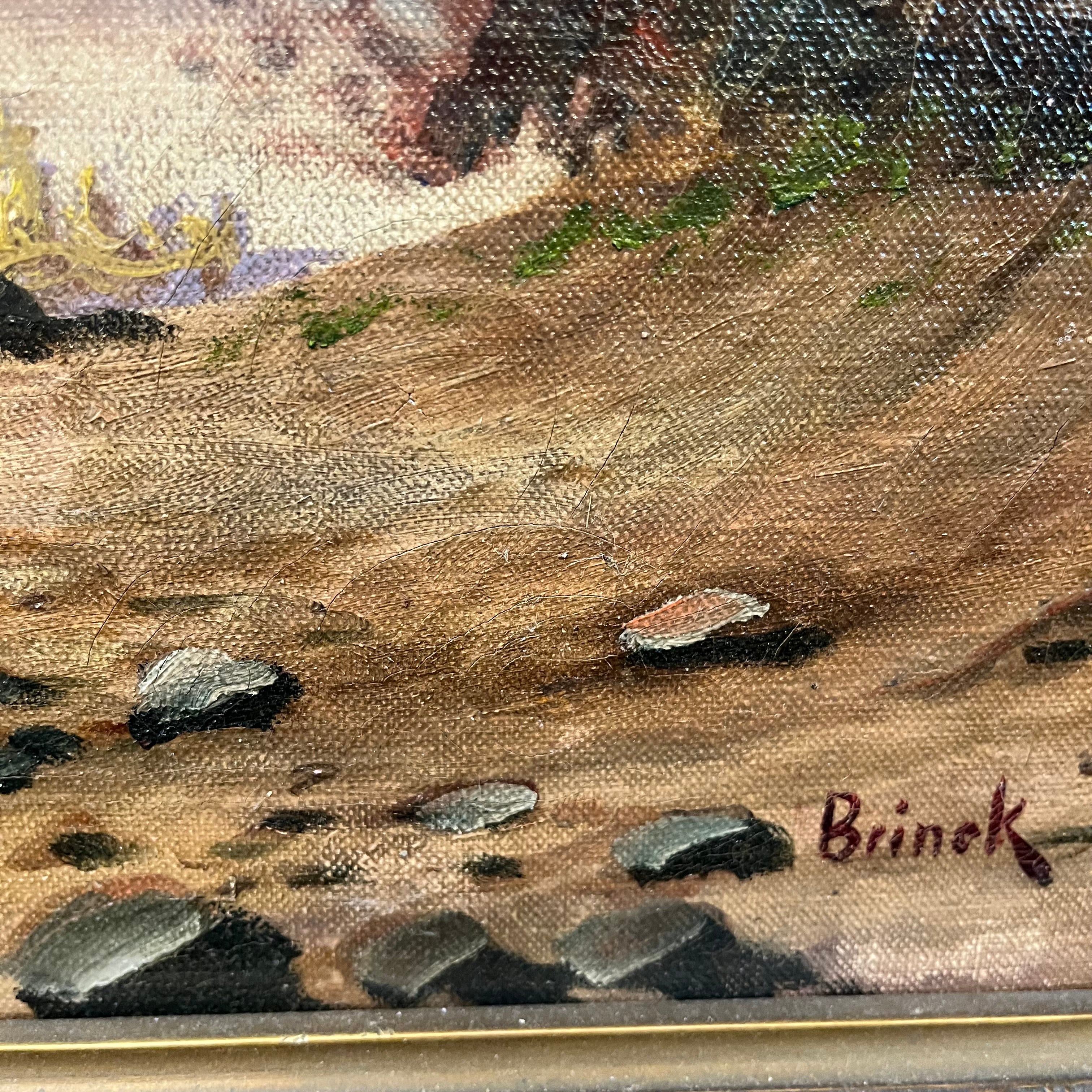 Hermosa pintura del artista sueco erradicado en Chile en la primera mitad del siglo XX. Con una destacable técnica, vemos un paisaje con preciosos detalles realistas como las piedras y vegetación si lo vemos con cierta distancia, podemos hasta pensar que es una fotografía.