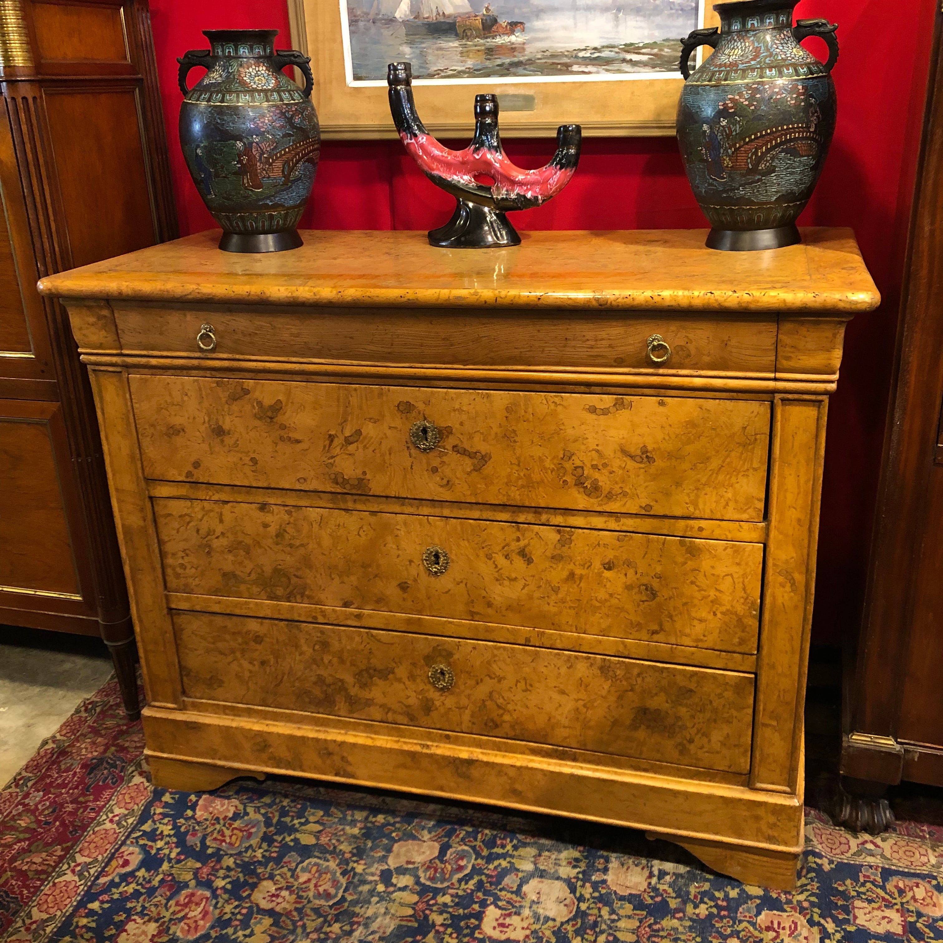 De estilo Charles X, cómoda francesa con 4 cajones en total.