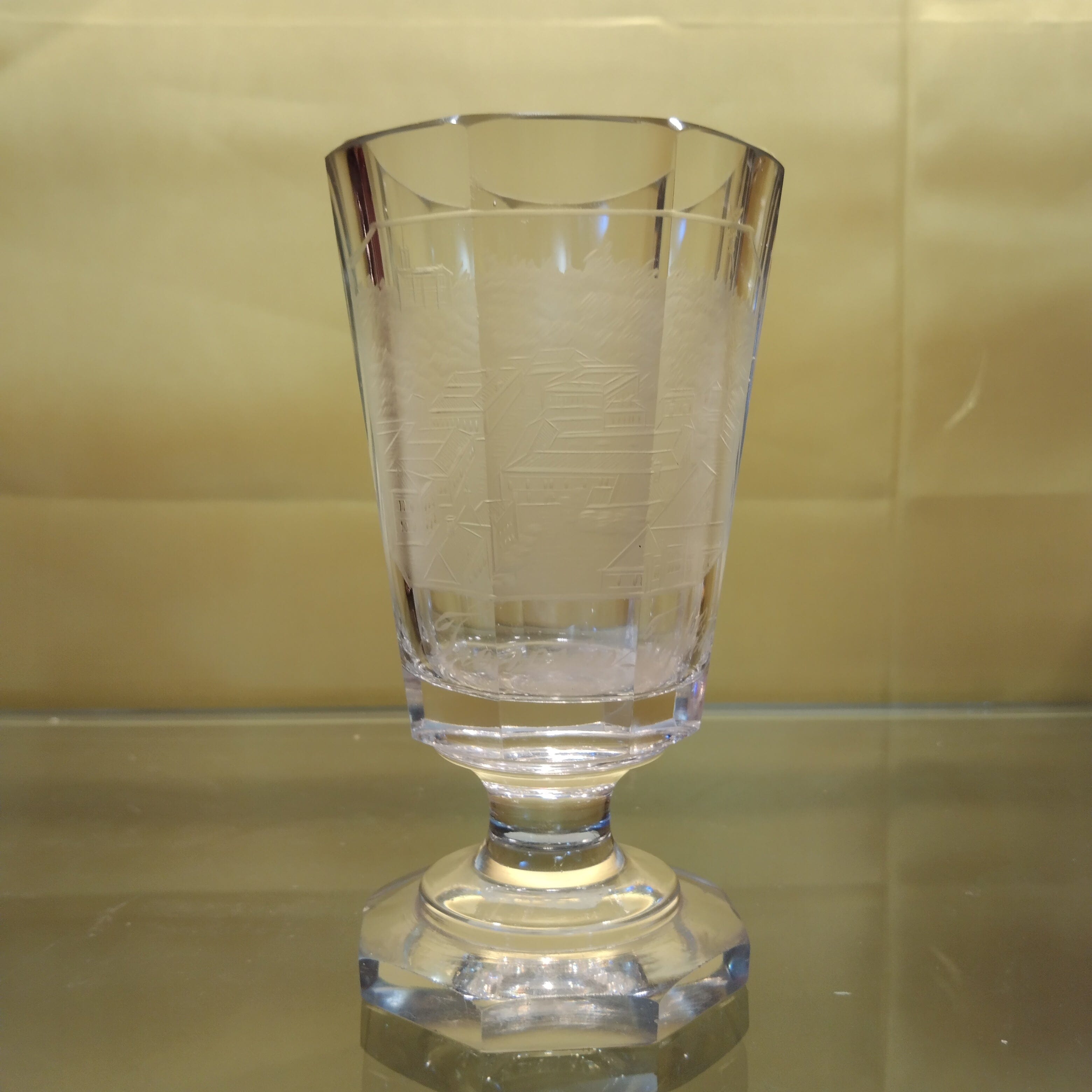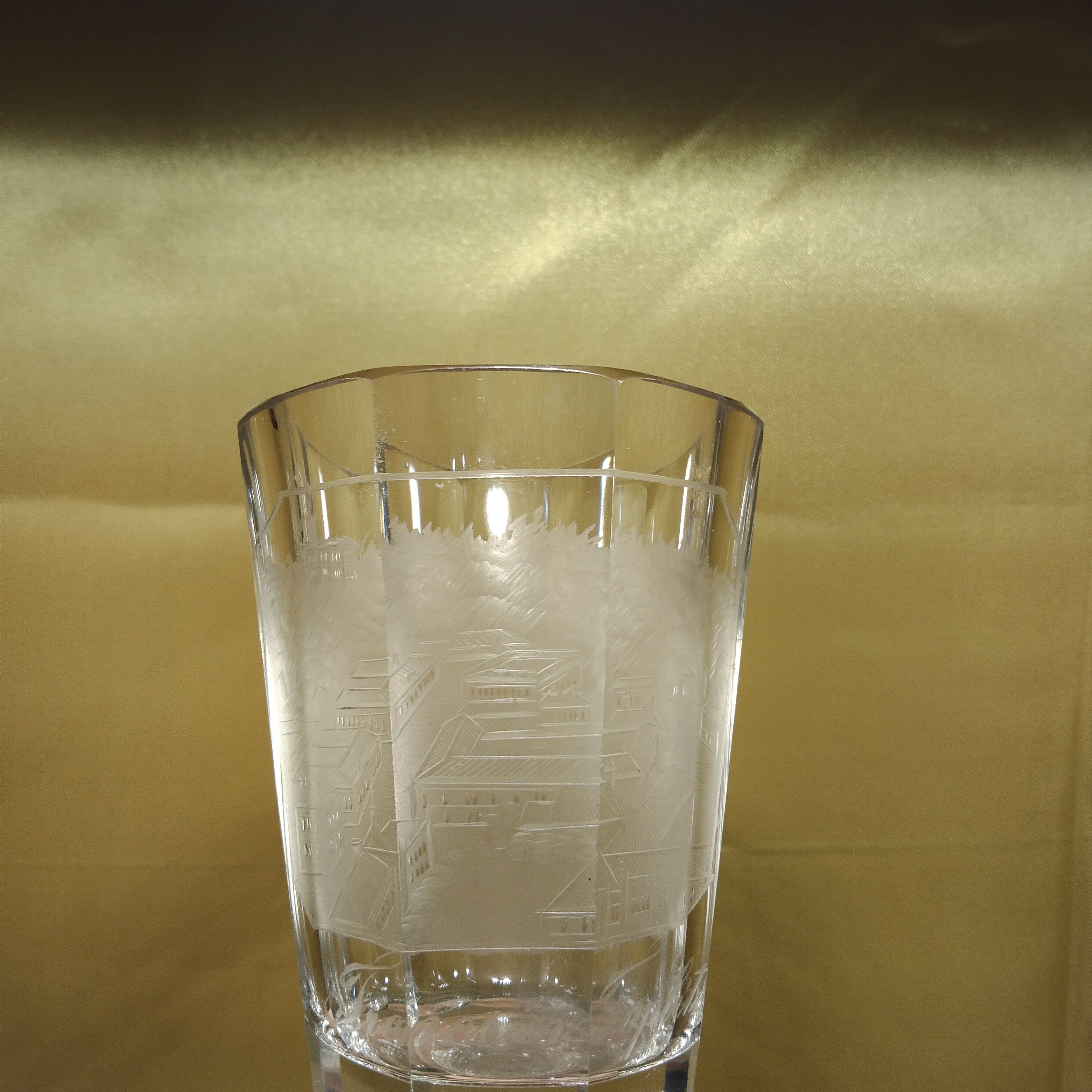 Copa de vidrio transparente 'Escena de pueblo' tallado