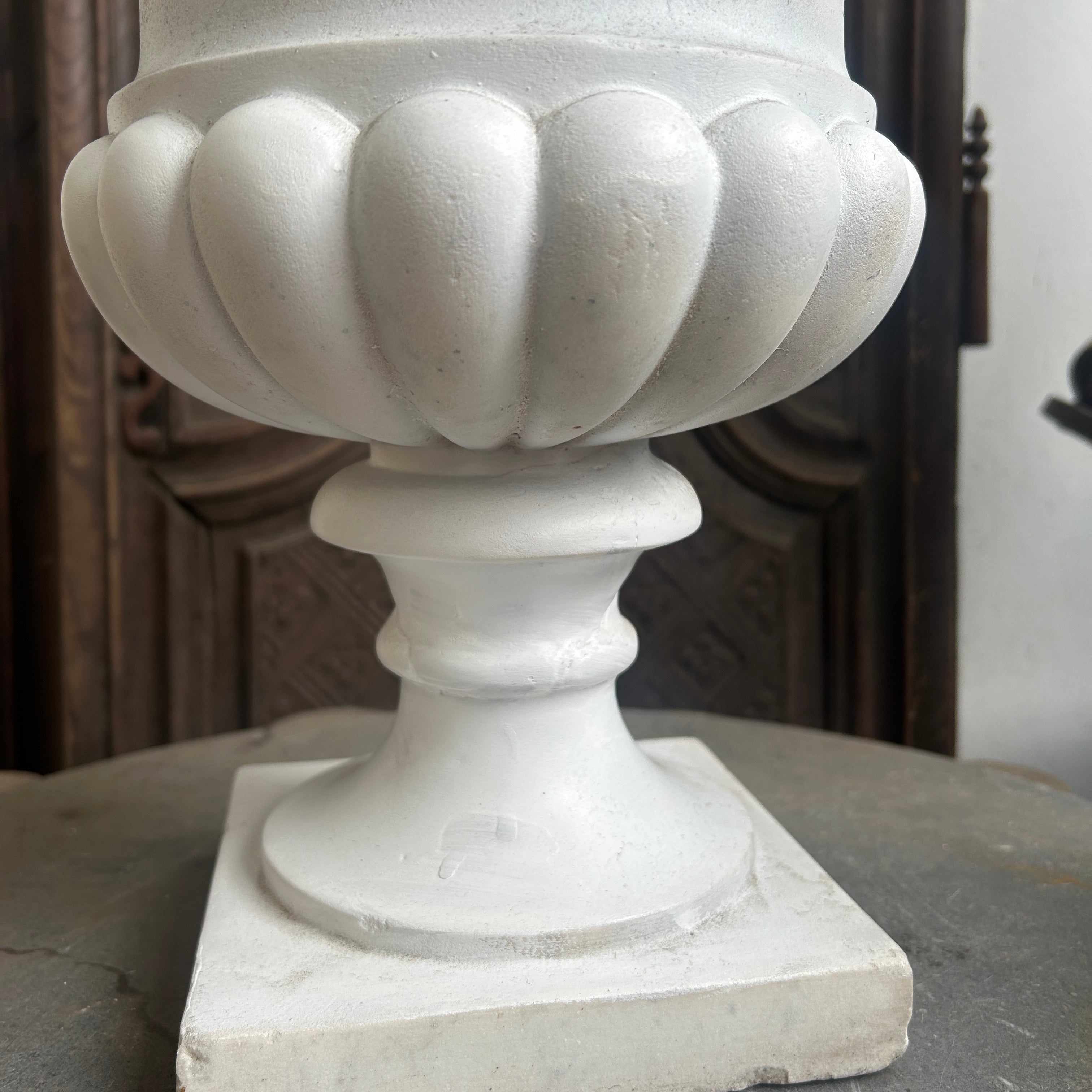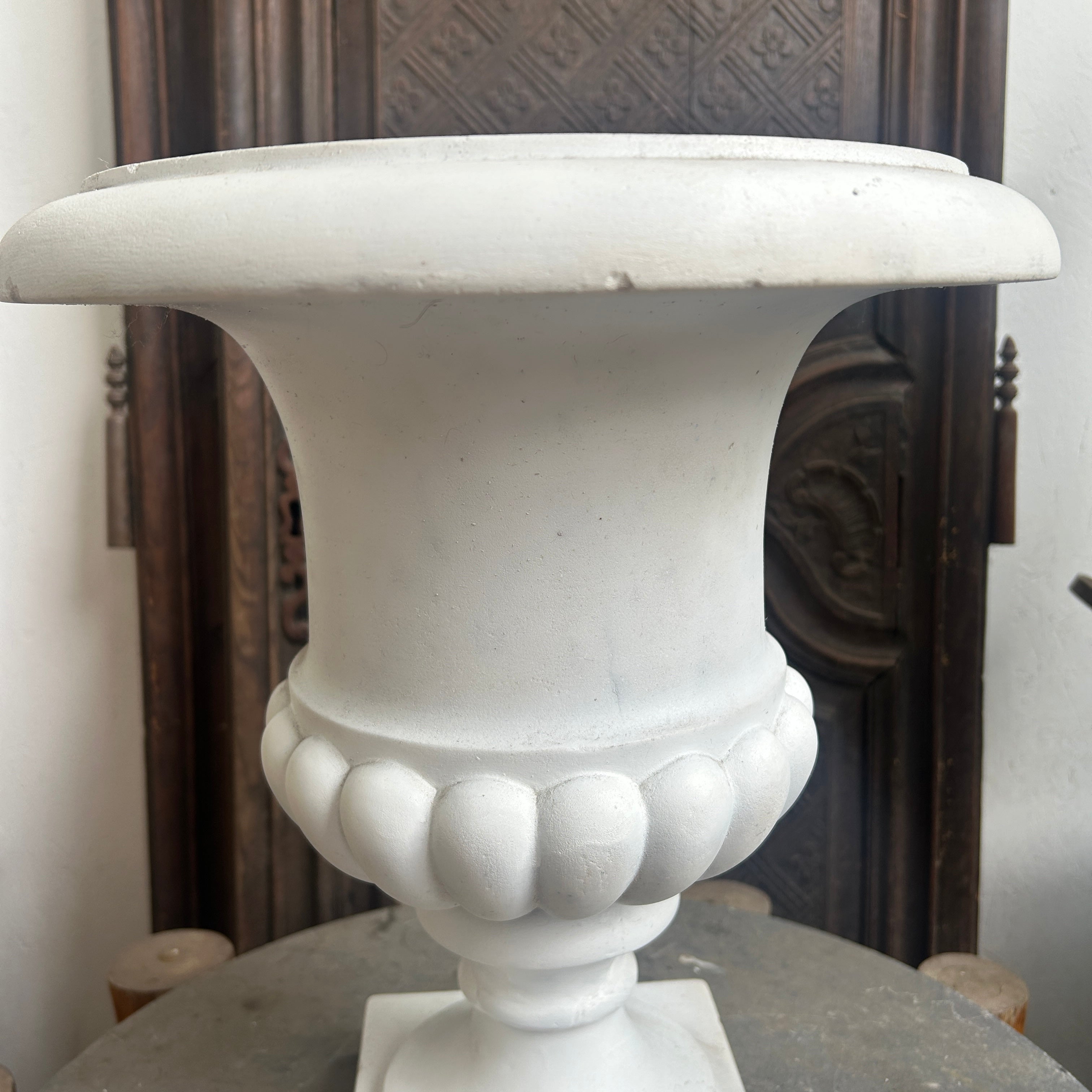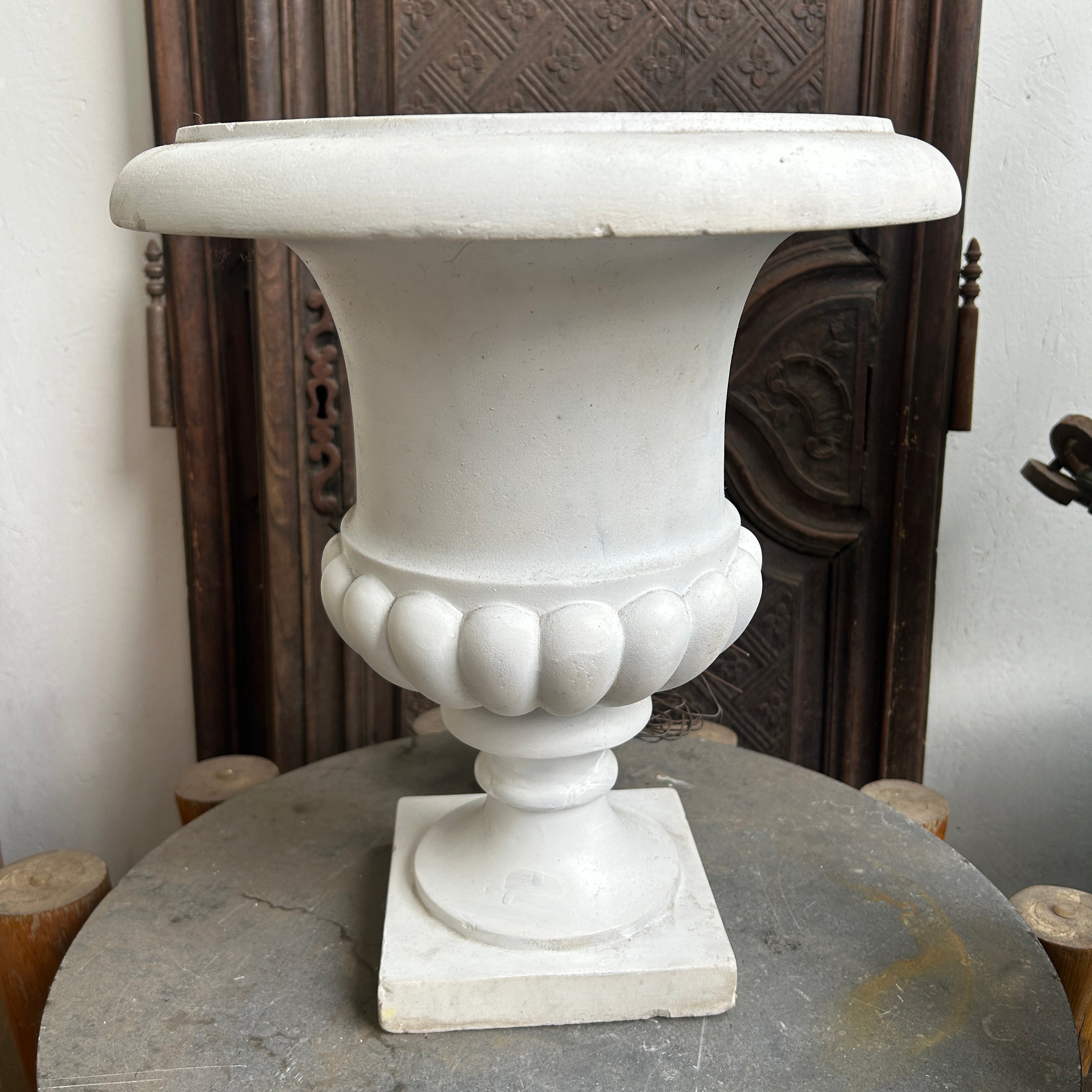 Pequeño y lindo copón blanco de mármol tallado. Puede ser utilizado como un macetero de exterior o interior como también como elemento decorativo. China, 2000s.
