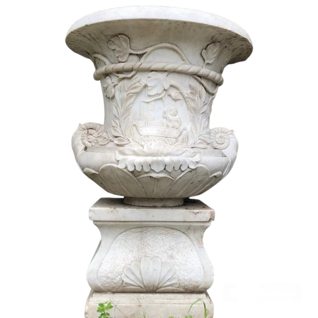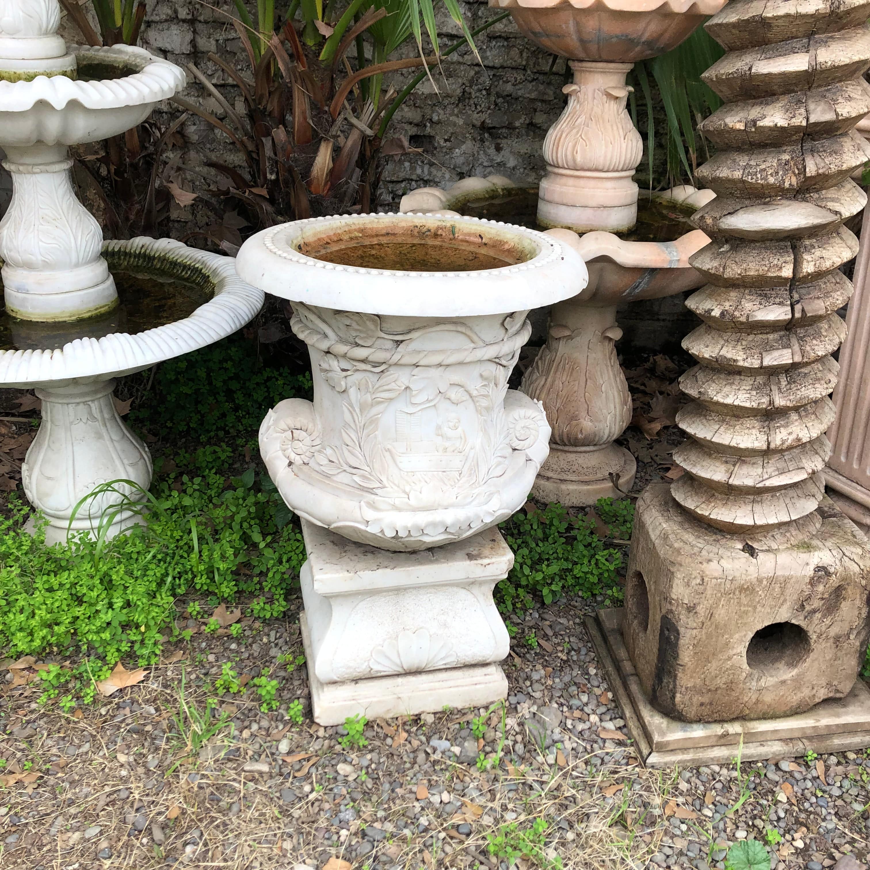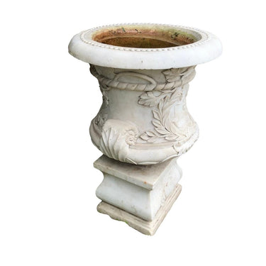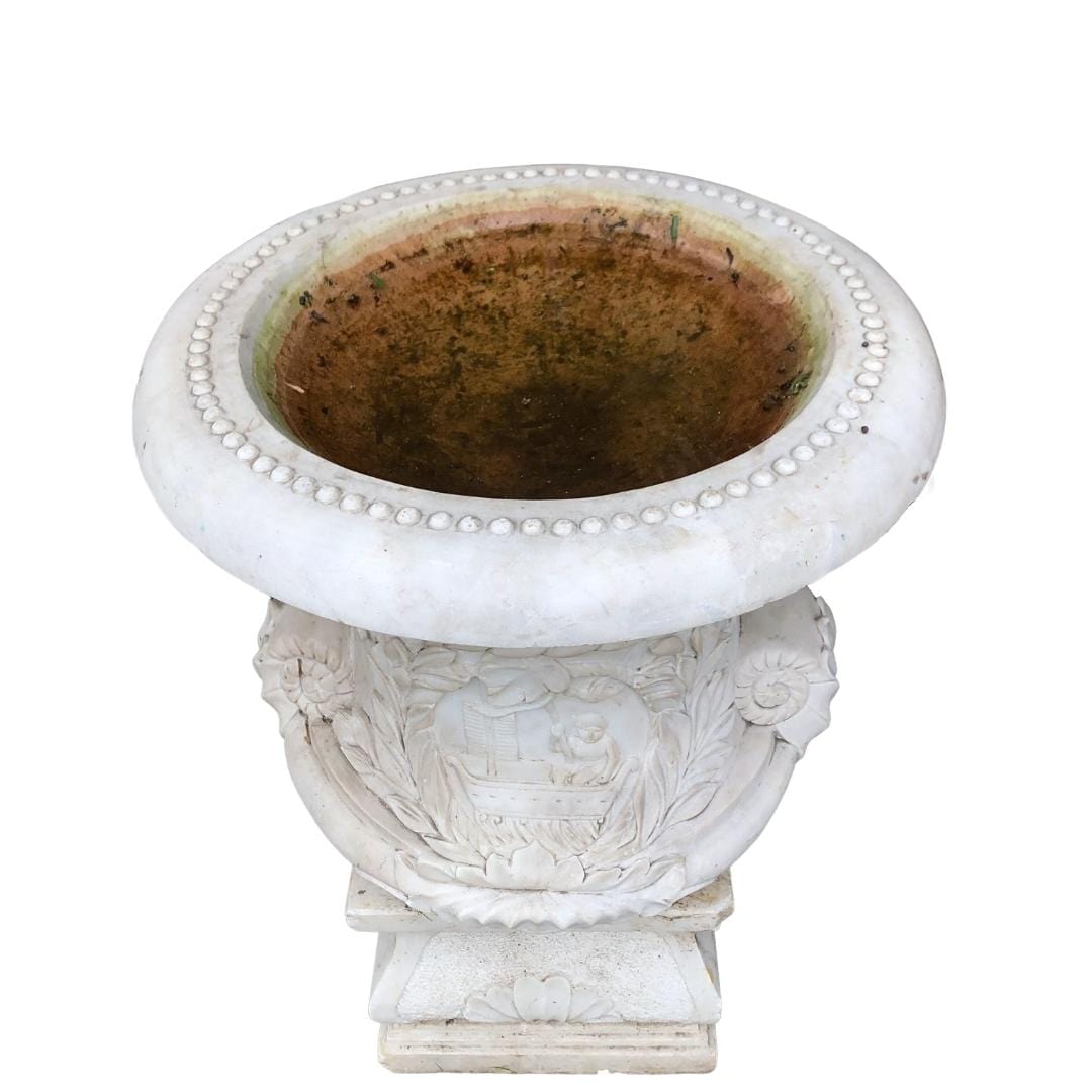 Cuenta con drenaje, puede ser utilizado como un macetero de gran formato en exterior o bien para decorar interiores. Consiste en la base y el copón.