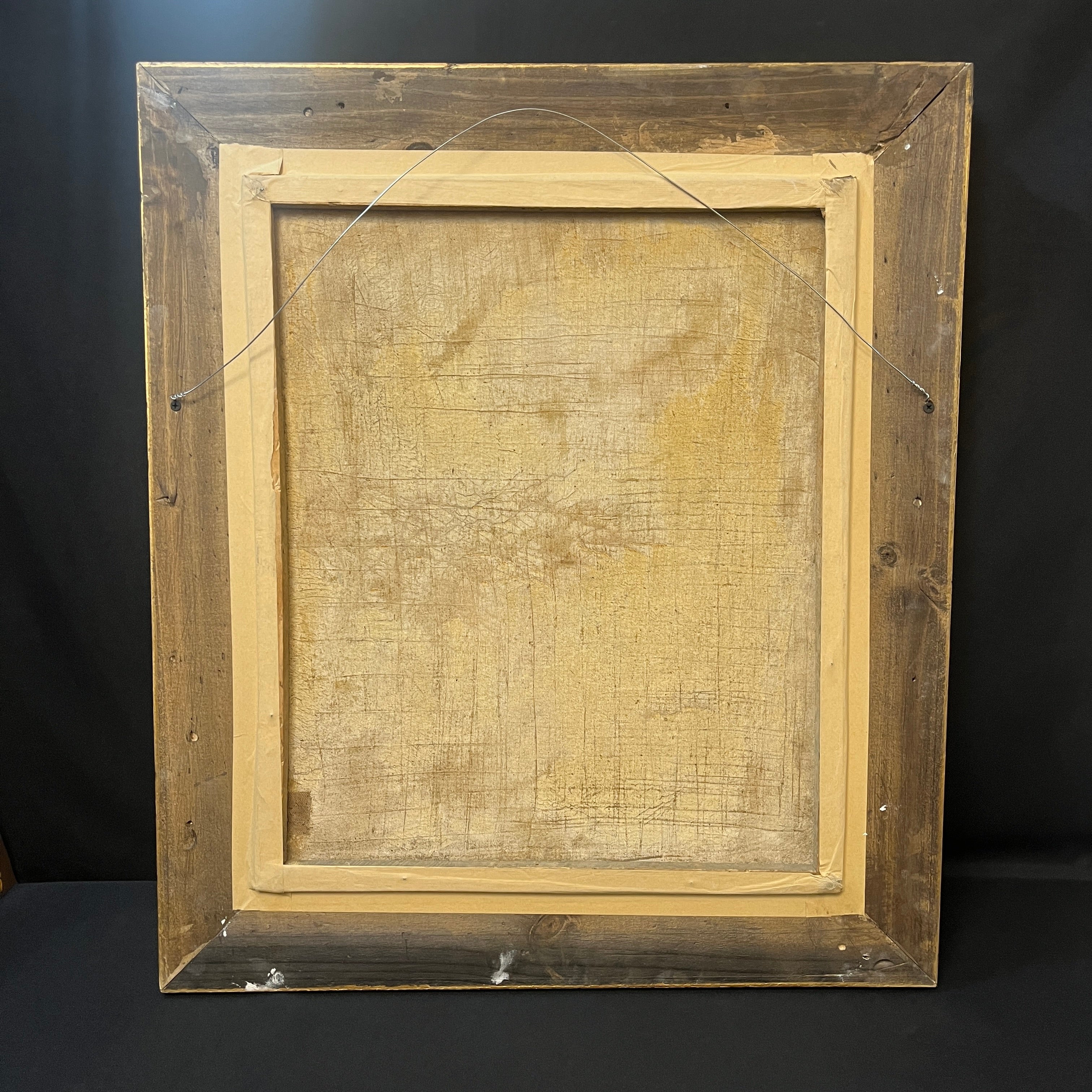 Dimensiones: Marco: Alto: 71 cm, ancho: 62 cm, profundidad: 7 cm. Obra: Alto: 53, ancho: 43 cm.