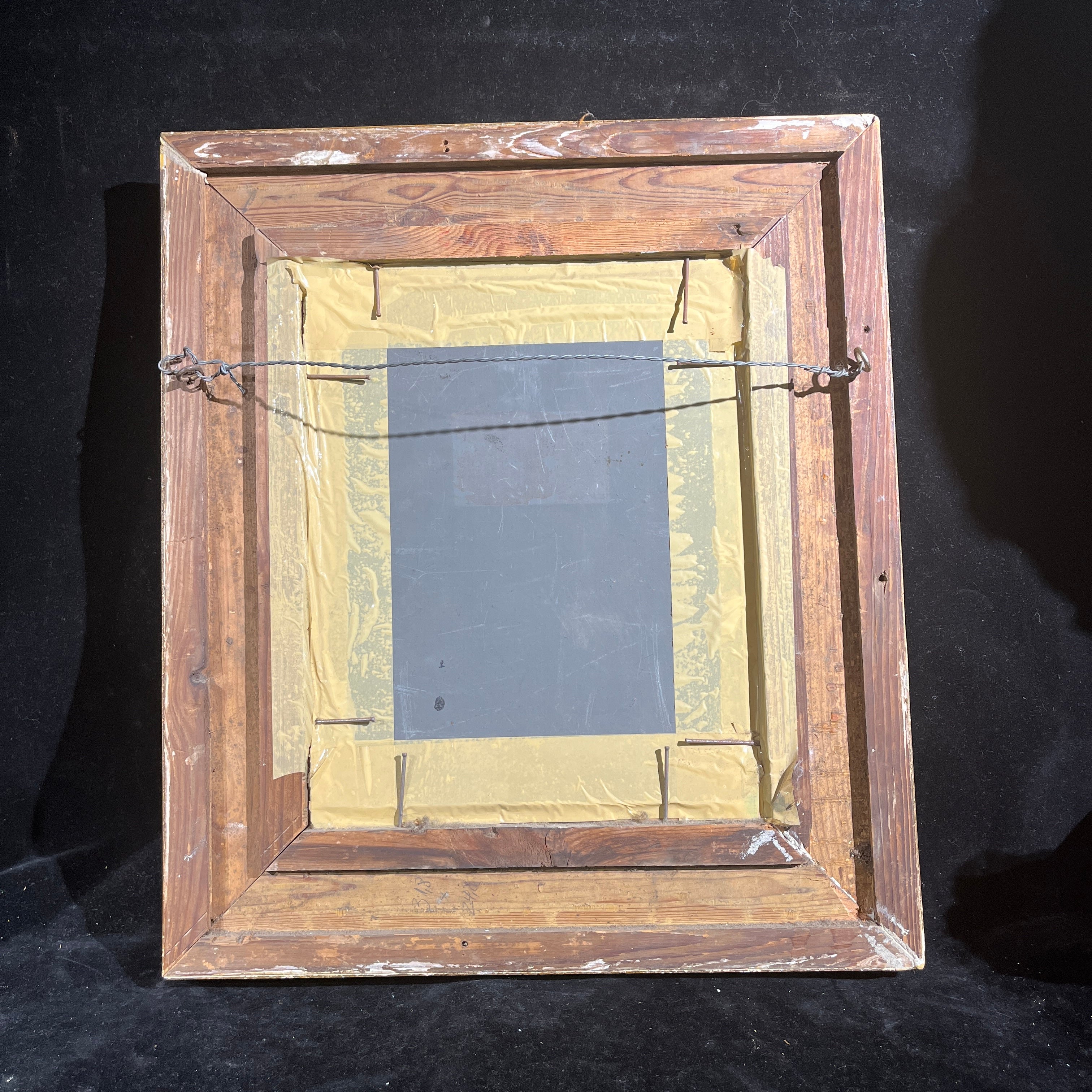 Dimensiones: Marco alto: 49 cm, ancho: 43 cm, profundidad: 7 cm. Obra alto: 30 cm, ancho: 40 cm.