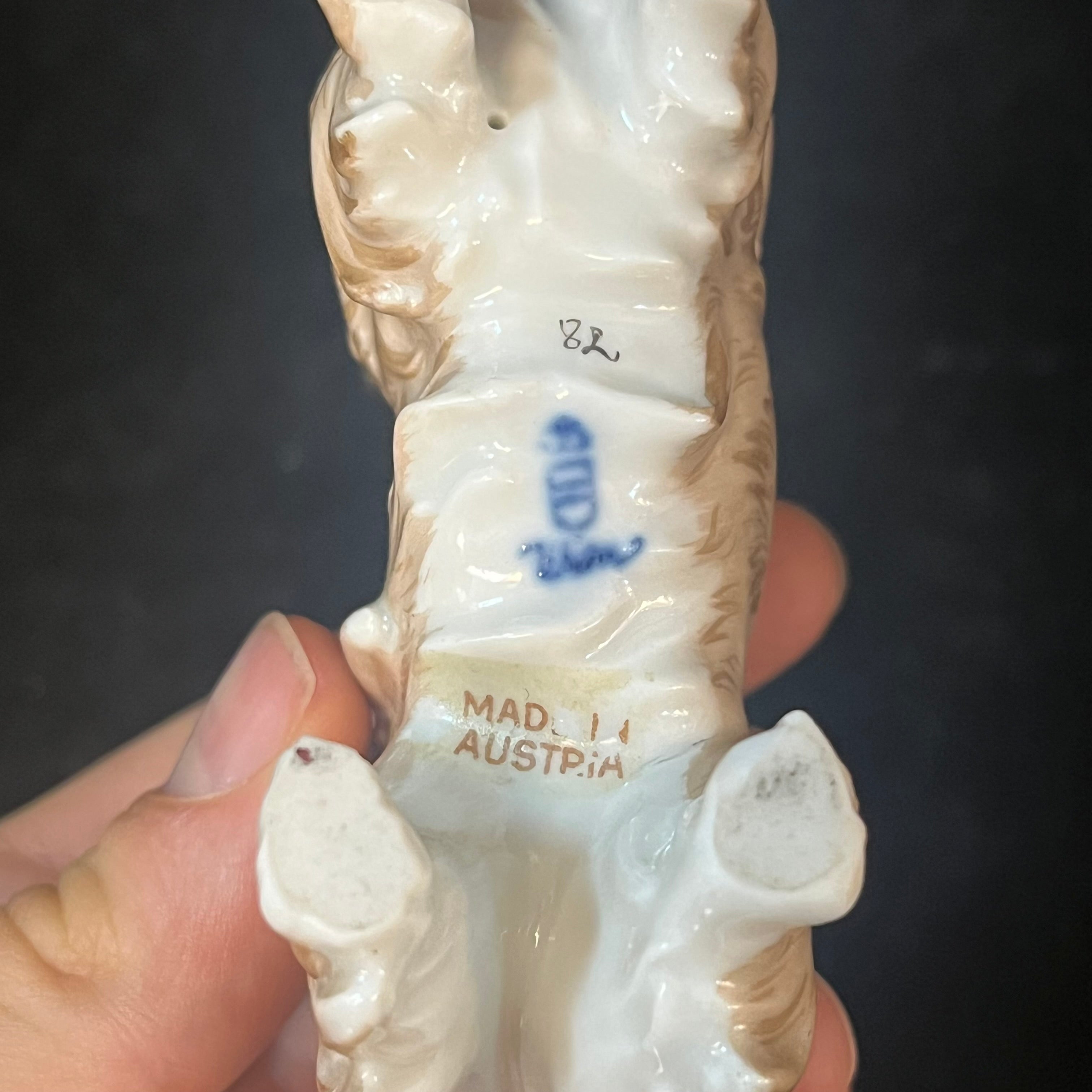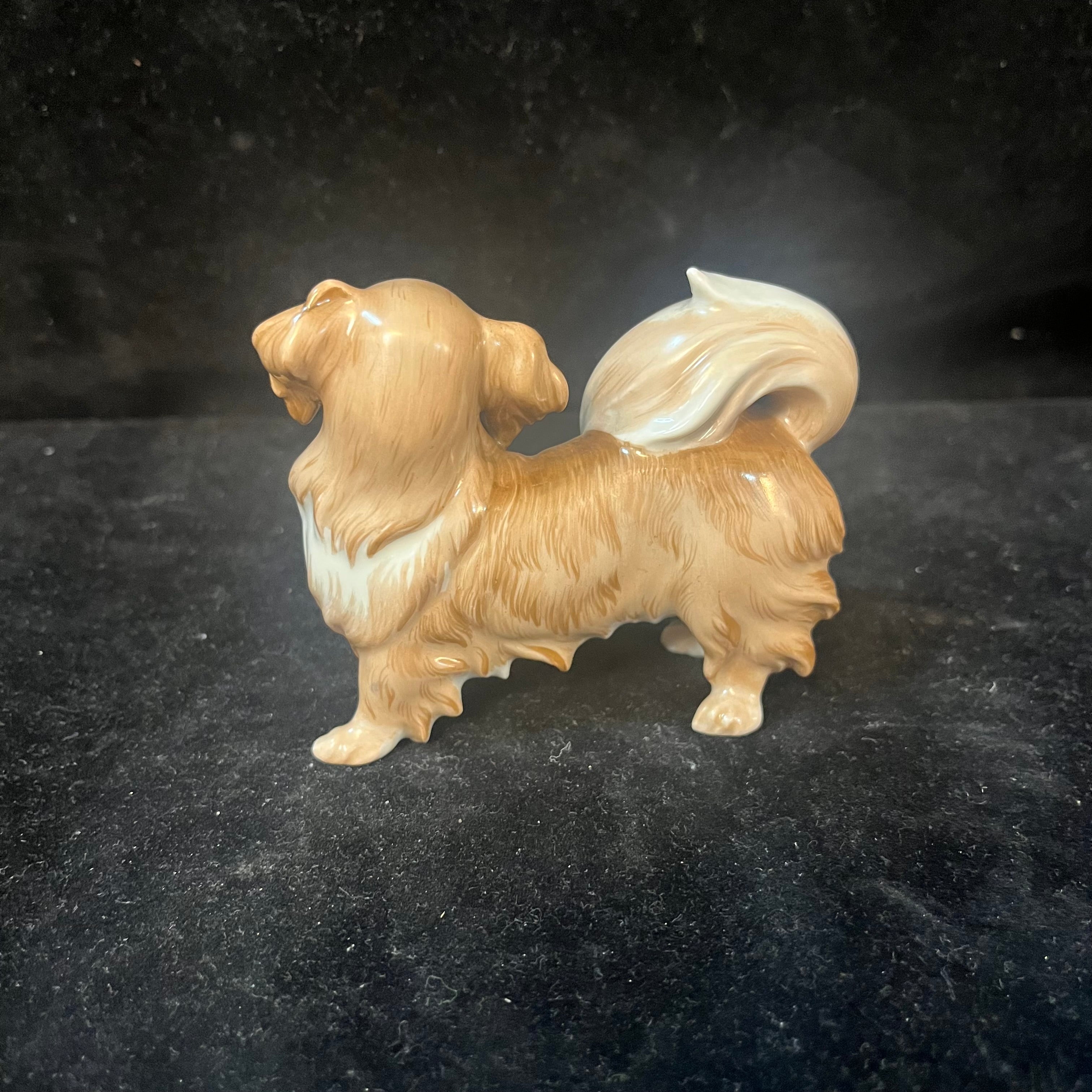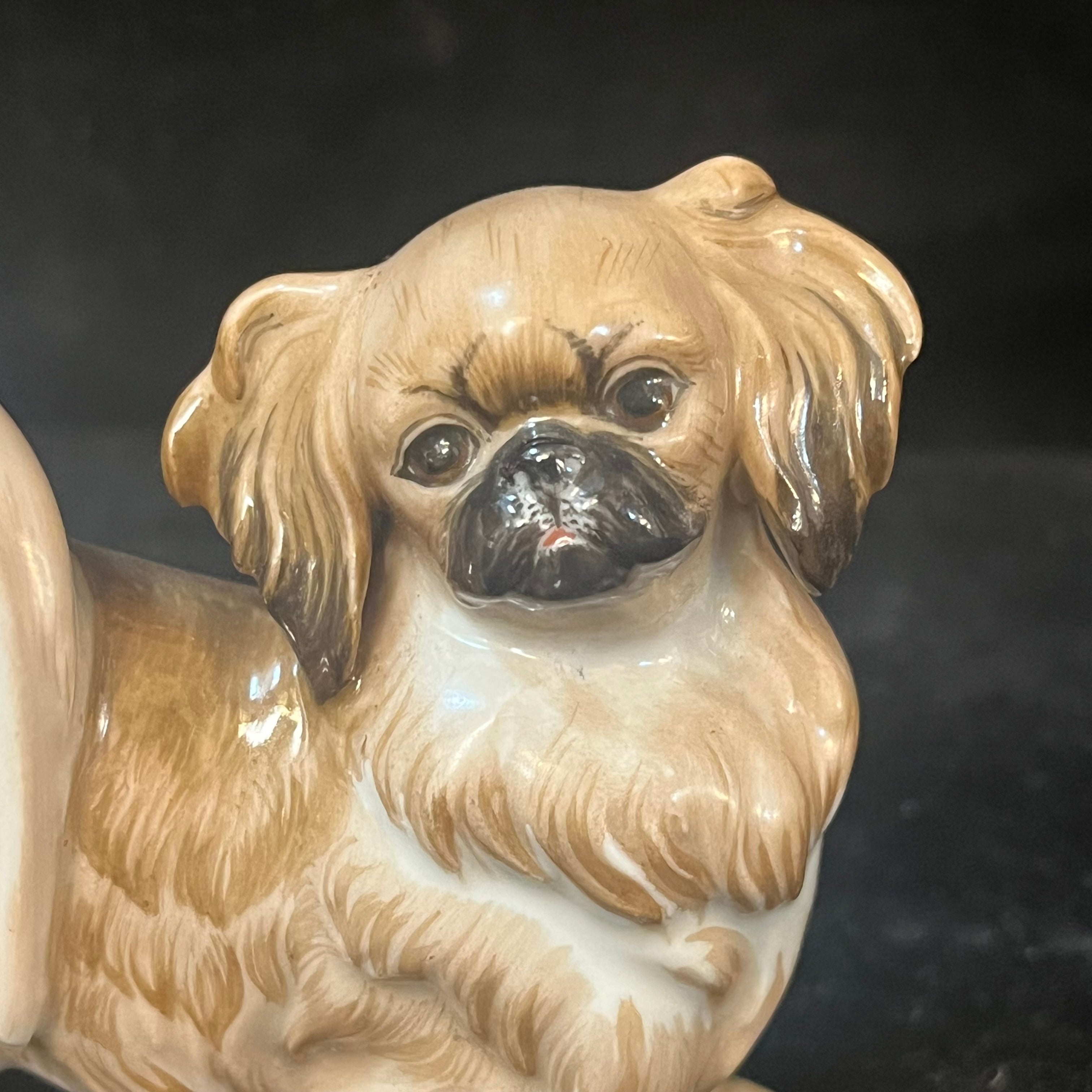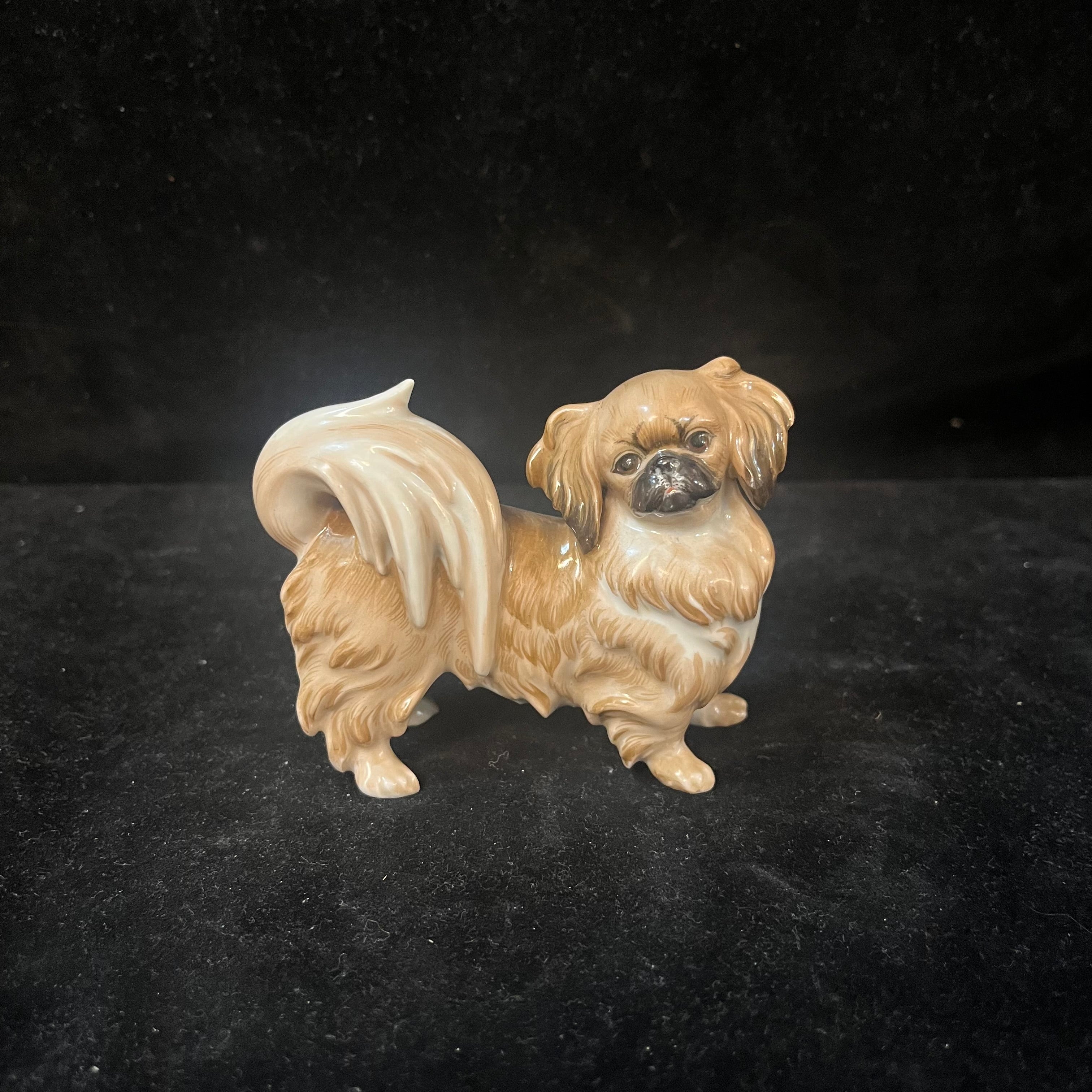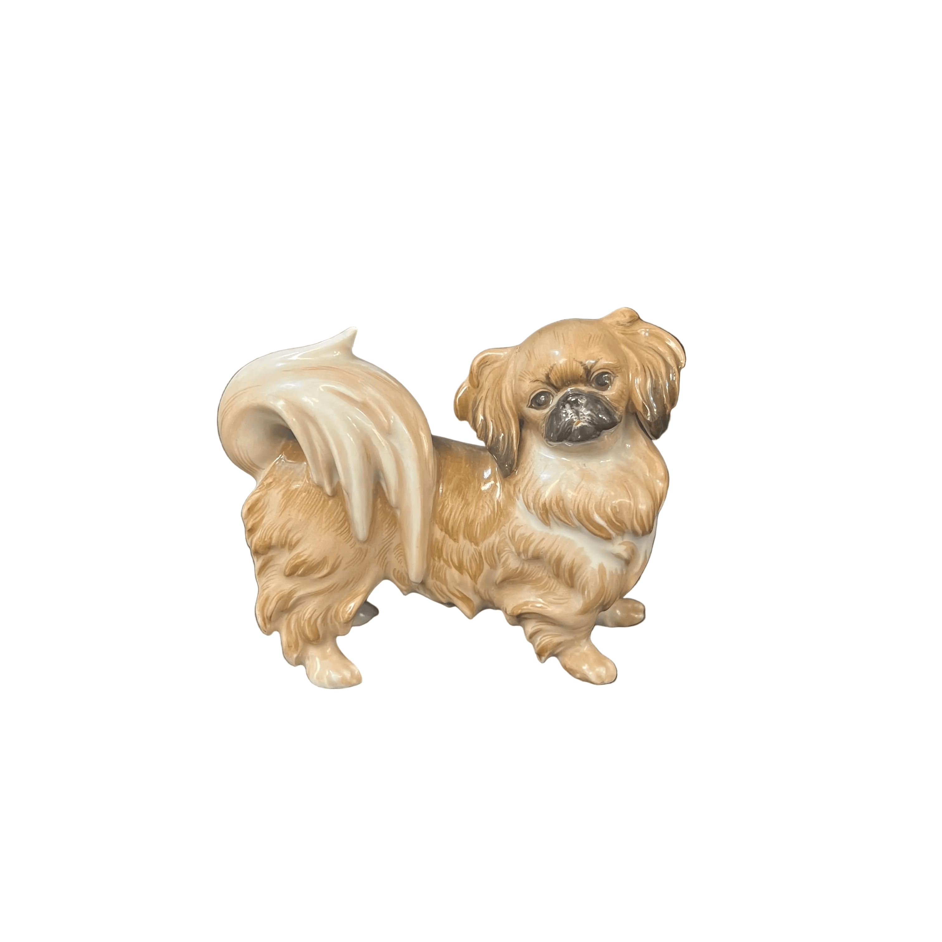Bella figurita de porcelana de origen austriaco circa 1960 de la marca Augarten, representando a un perrito Pekinés tibetano. La figura tiene los sellos de fabricación de la marca y su número de serie, junto con su sello de manufactura austriaca.