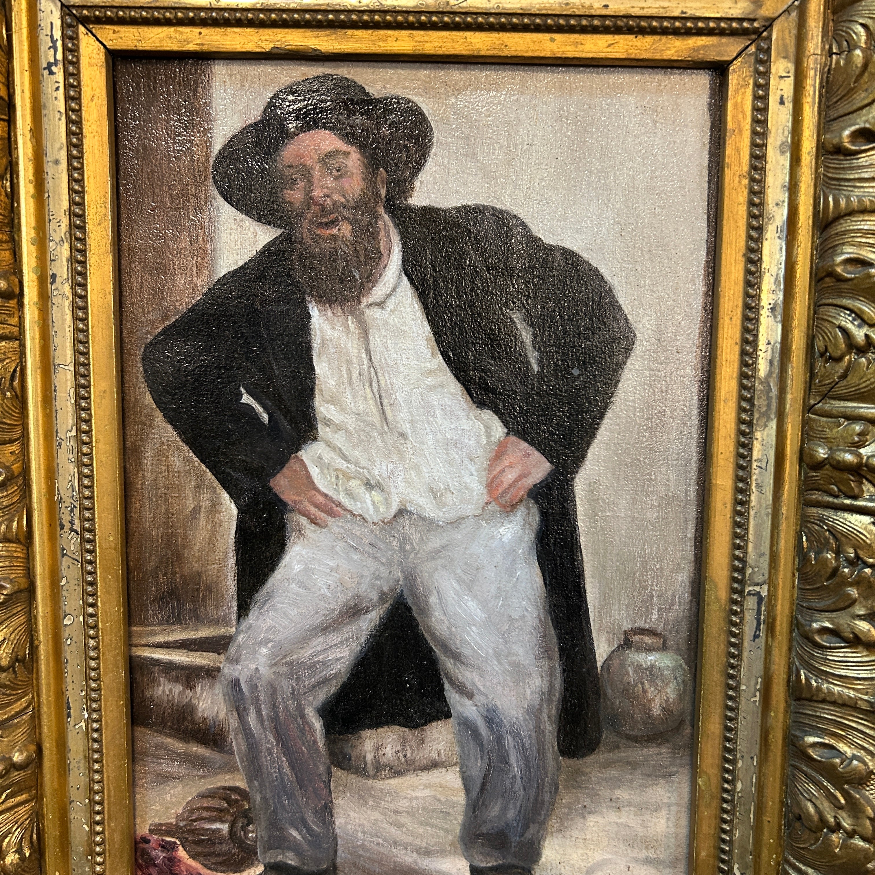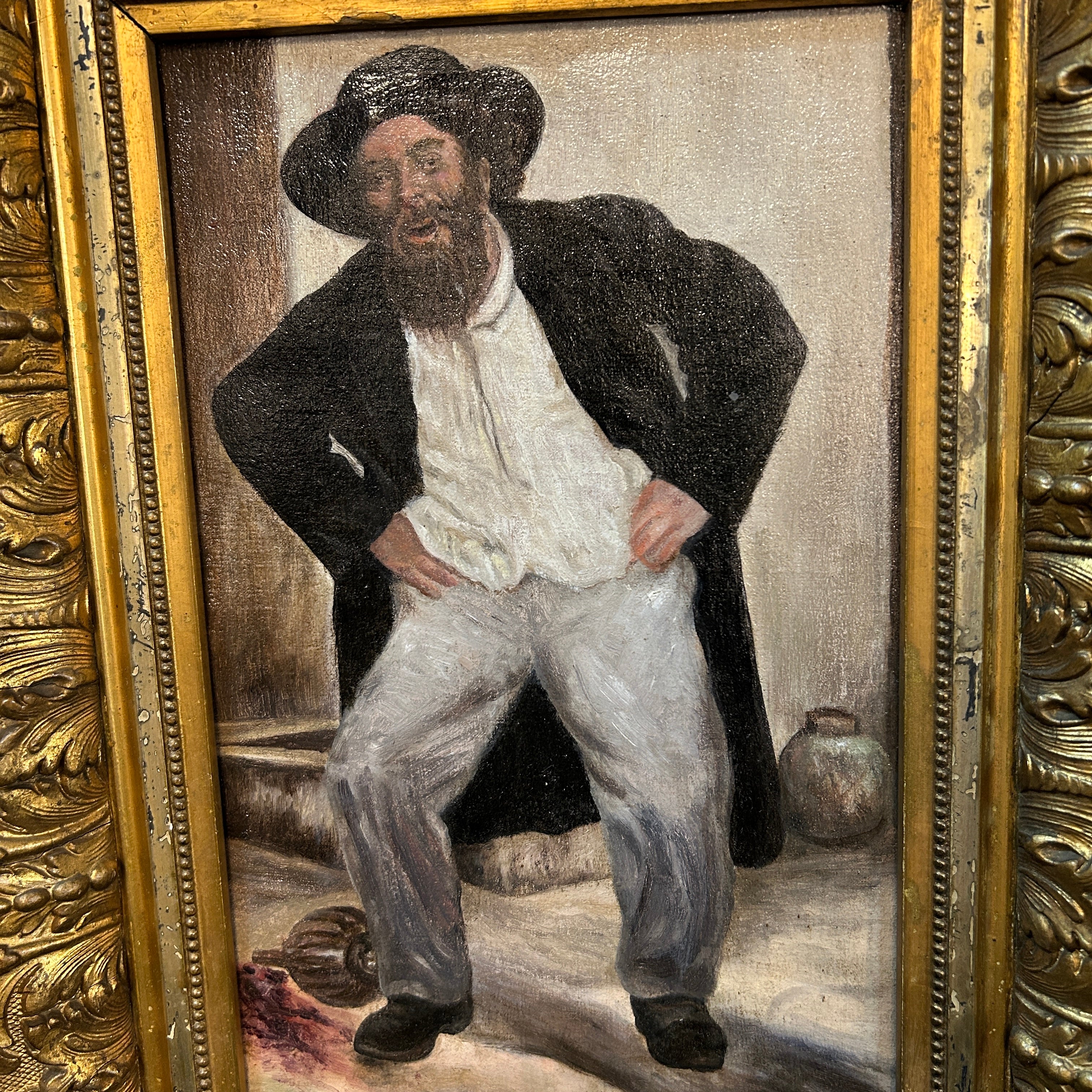 Firma Ilegible - Óleo sobre tela ‘Hombre fiestero’