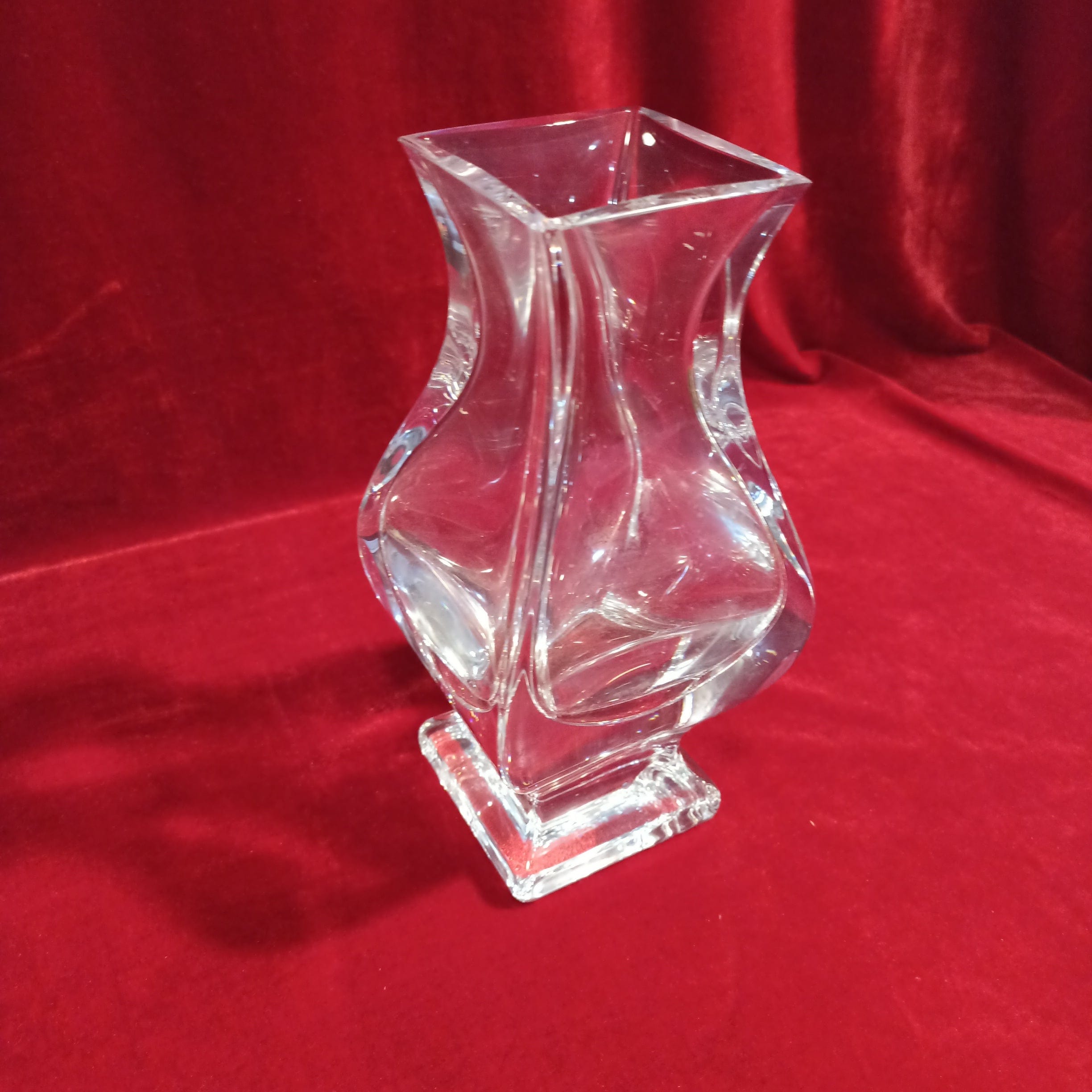 Hermoso florero de cristal de marca Sevres, con particular diseño clásico abombado.